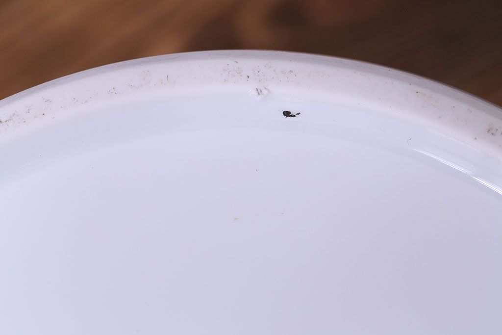 画像にありますように、側面や縁、高台に多少の汚れやありますが、ニュウ(ひび)、ホツ(欠け)等の大きなダメージはなく、状態良好です。