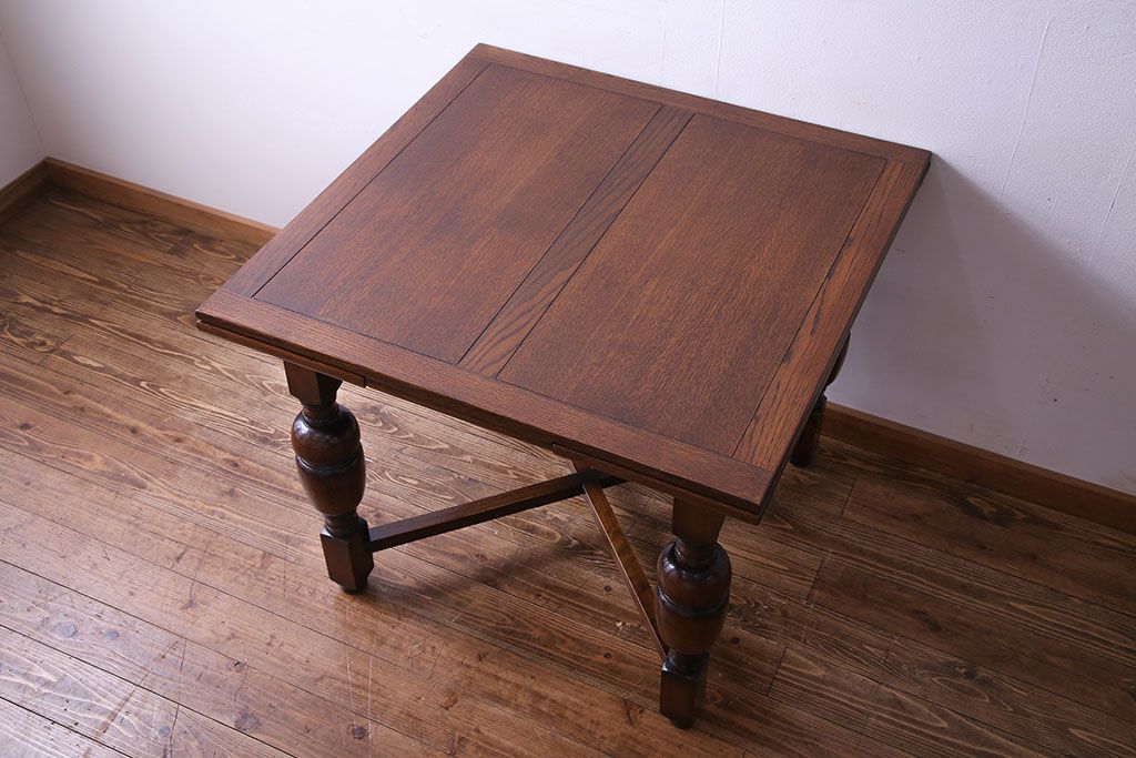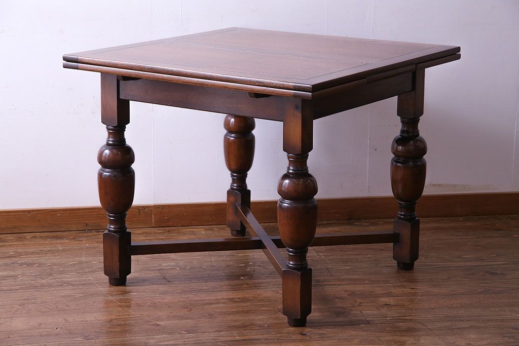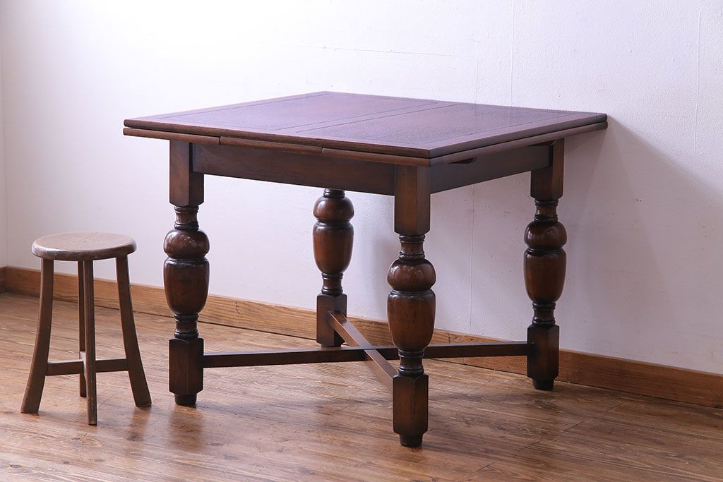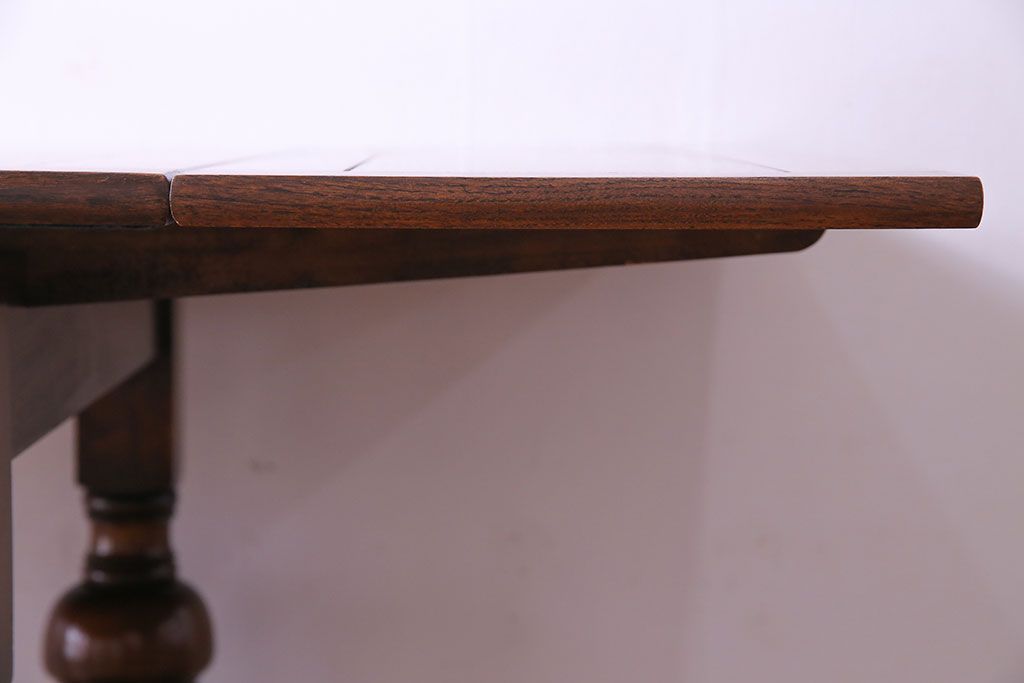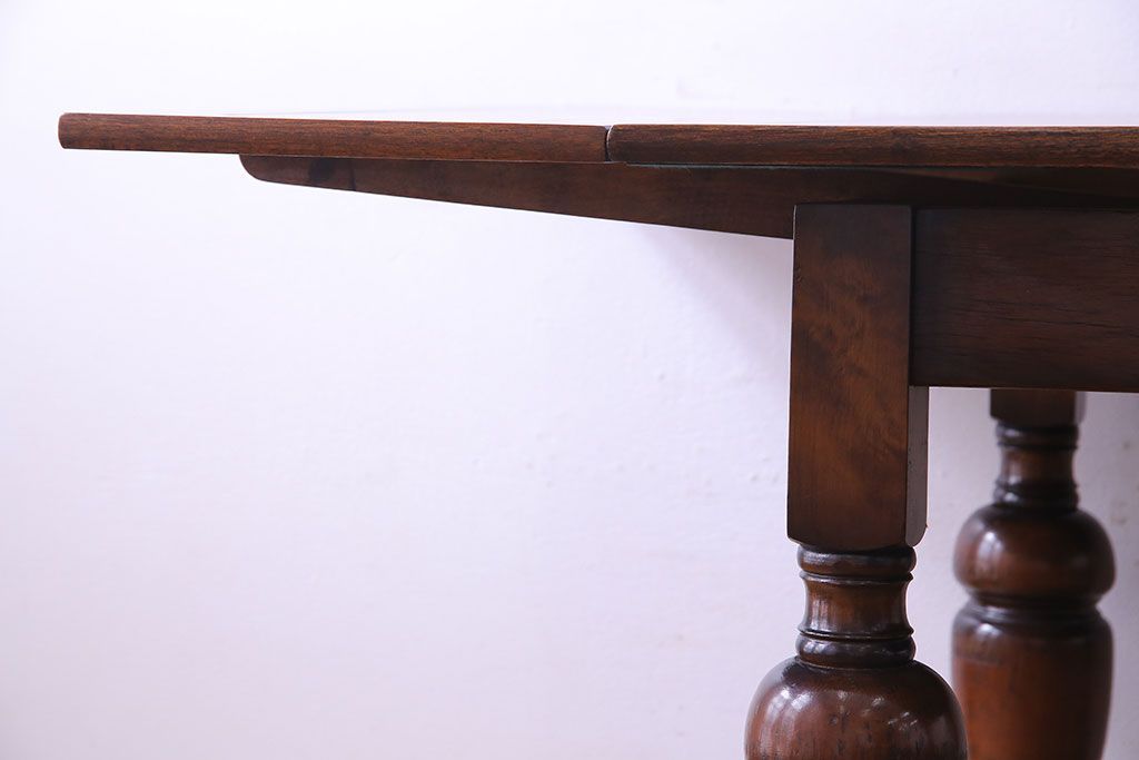 ラフジュ工房> テーブル> 2人用ダイニングテーブル > アンティーク家具 イギリスアンティーク 気品漂うデザインのドローリーフテーブル(エクステンションテーブル、ダイニングテーブル)