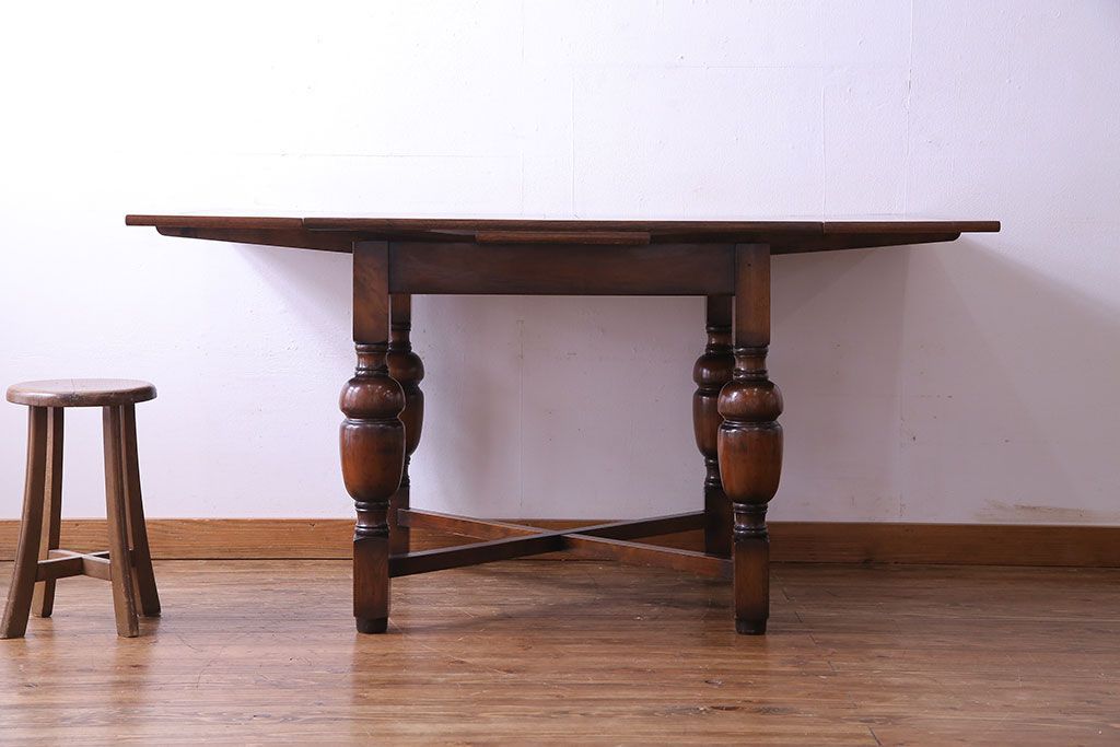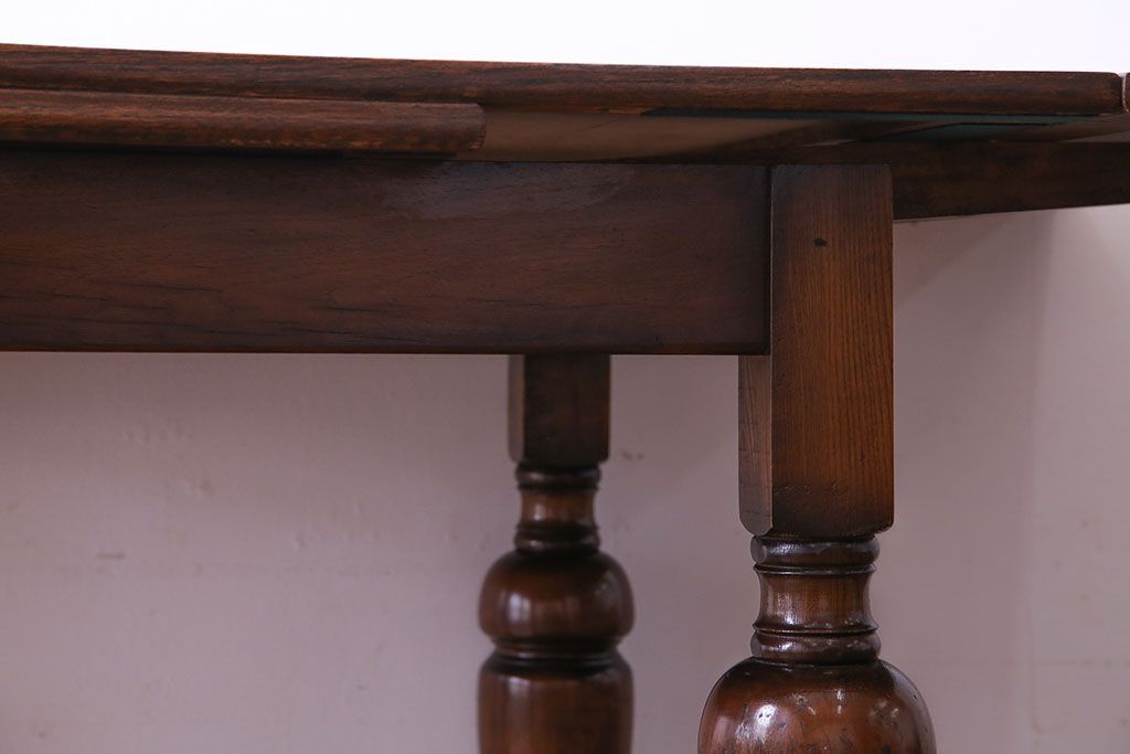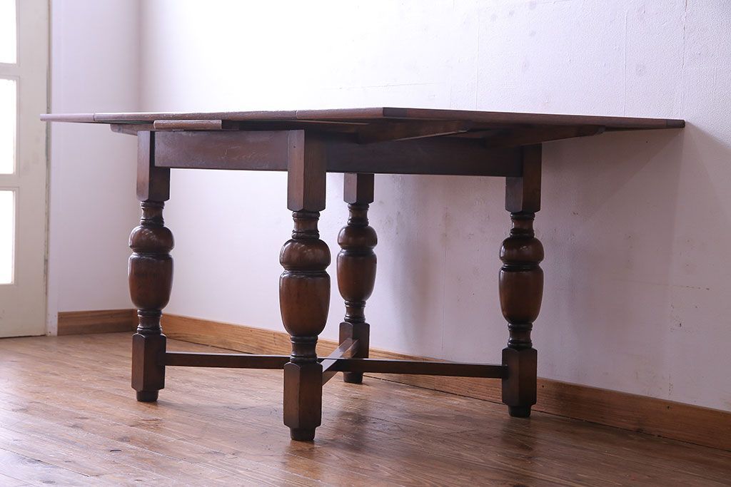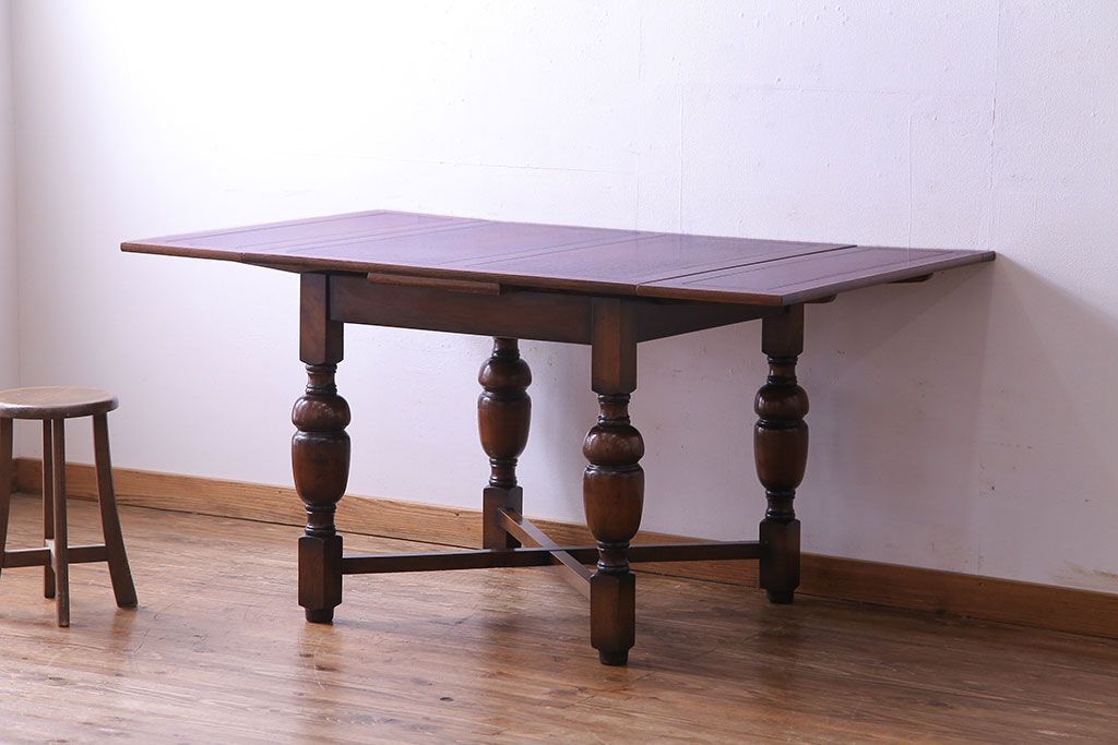 ラフジュ工房> テーブル> 4人用ダイニングテーブル > アンティーク家具 イギリスアンティーク 気品漂うデザインのドローリーフテーブル(エクステンションテーブル、ダイニングテーブル)