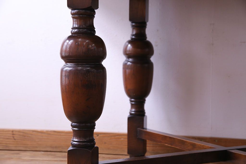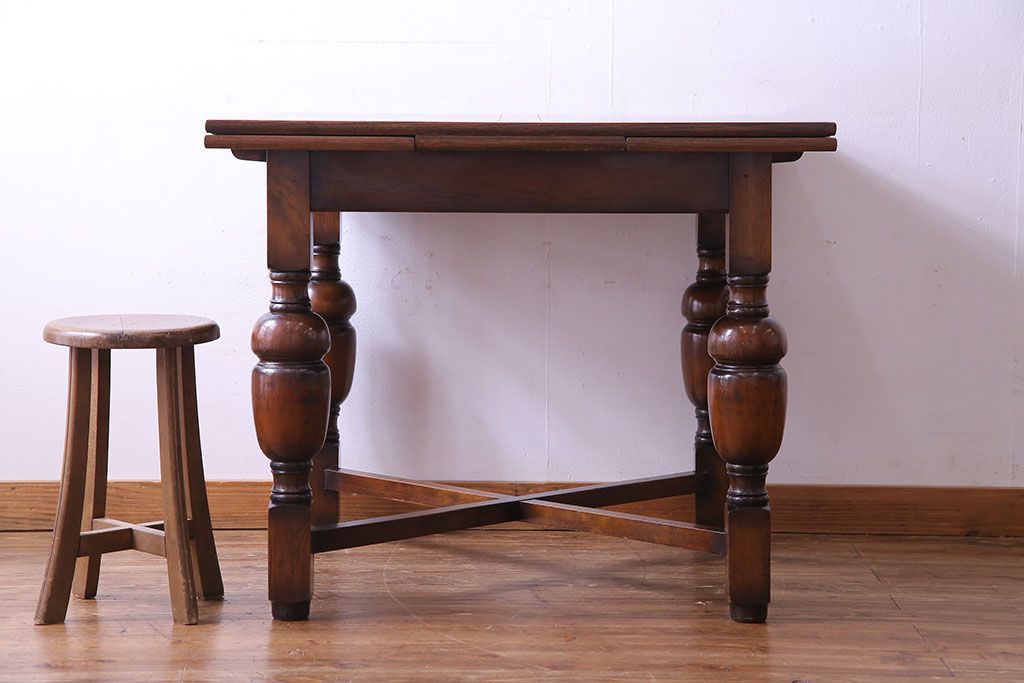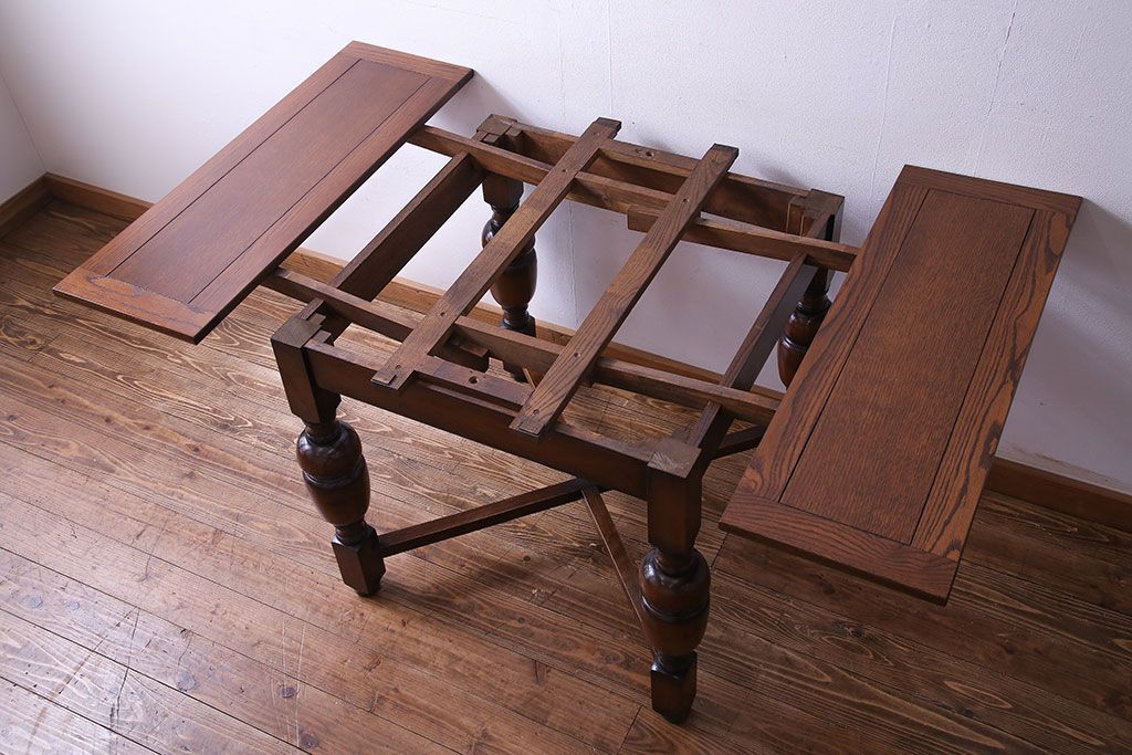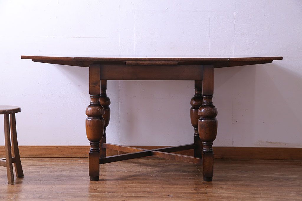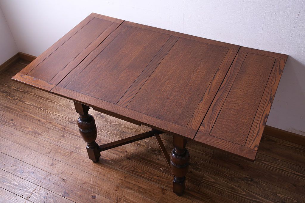 ラフジュ工房> テーブル> 4人用ダイニングテーブル > アンティーク家具 イギリスアンティーク 気品漂うデザインのドローリーフテーブル(エクステンションテーブル、ダイニングテーブル)