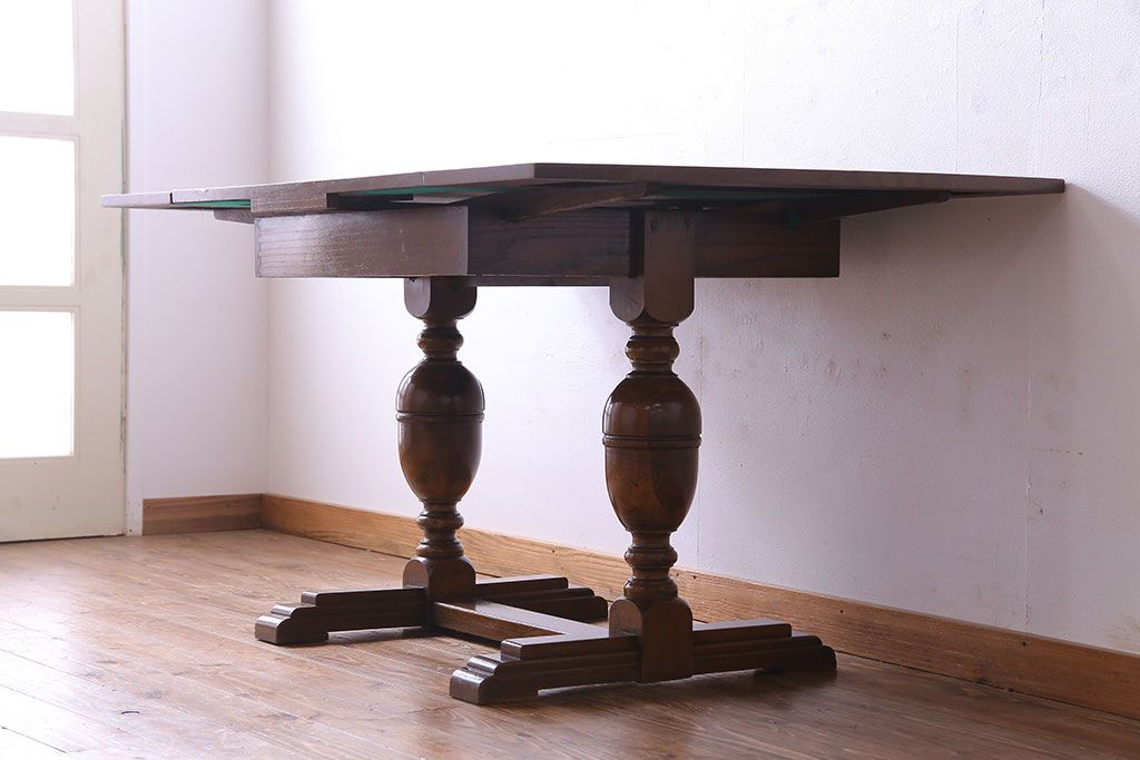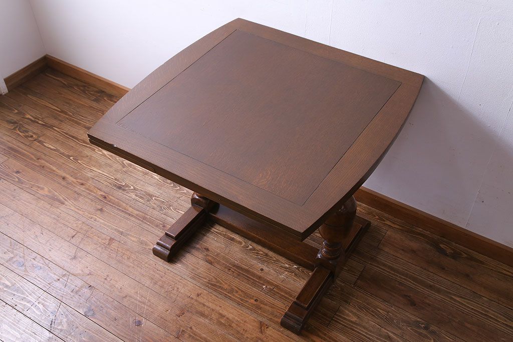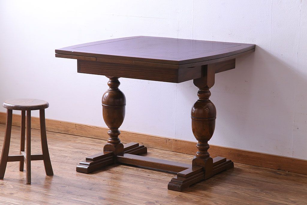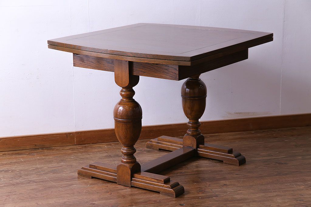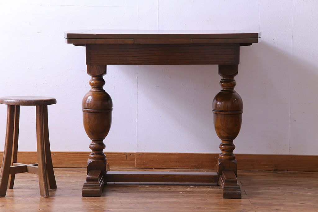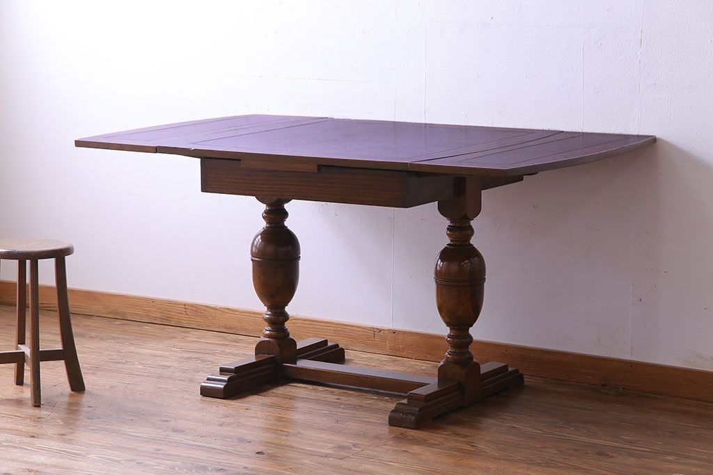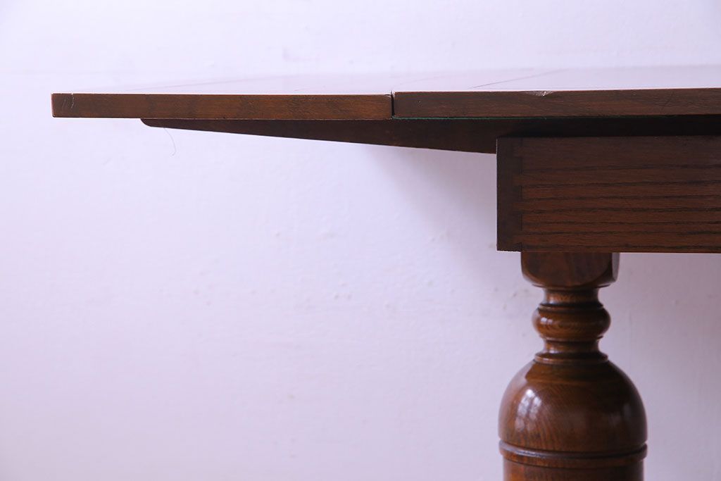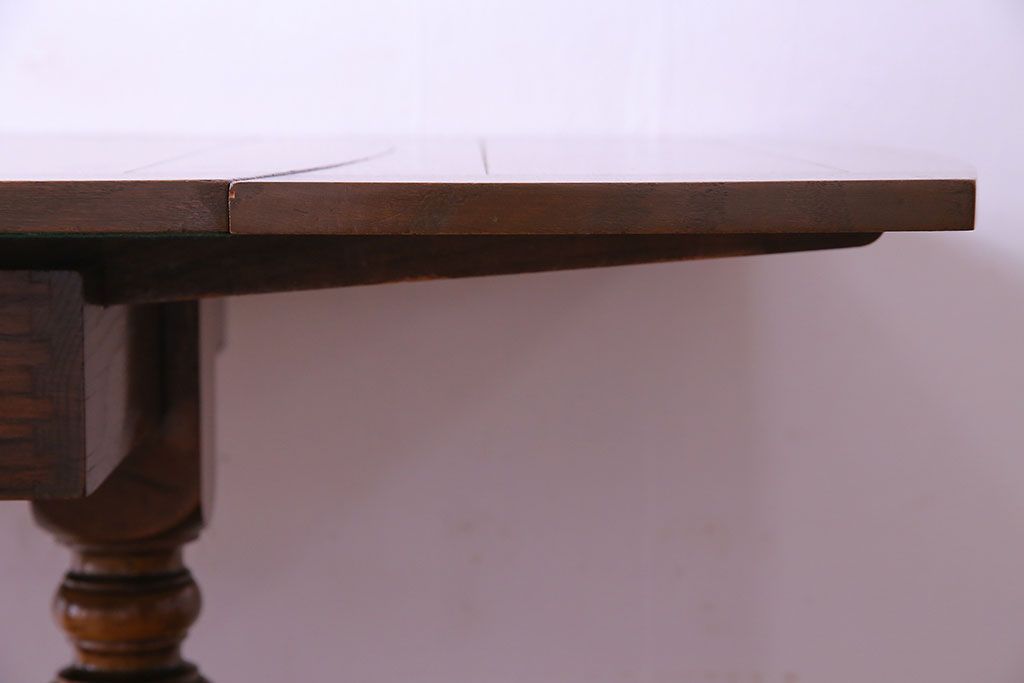 ラフジュ工房> テーブル> 2人用ダイニングテーブル > アンティーク家具 イギリスアンティーク オーク材 リッチな印象のドローリーフテーブル(エクステンションテーブル、ダイニングテーブル)