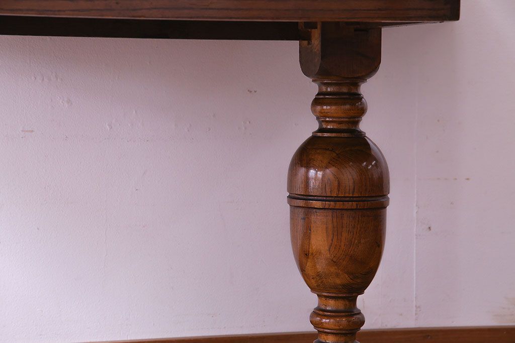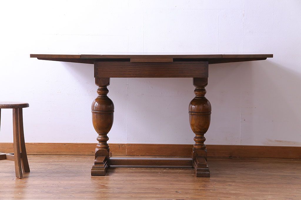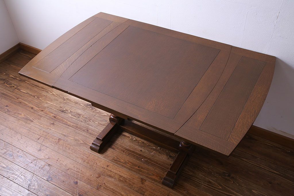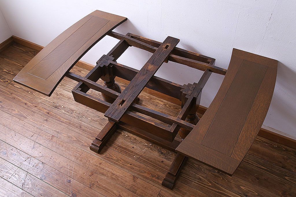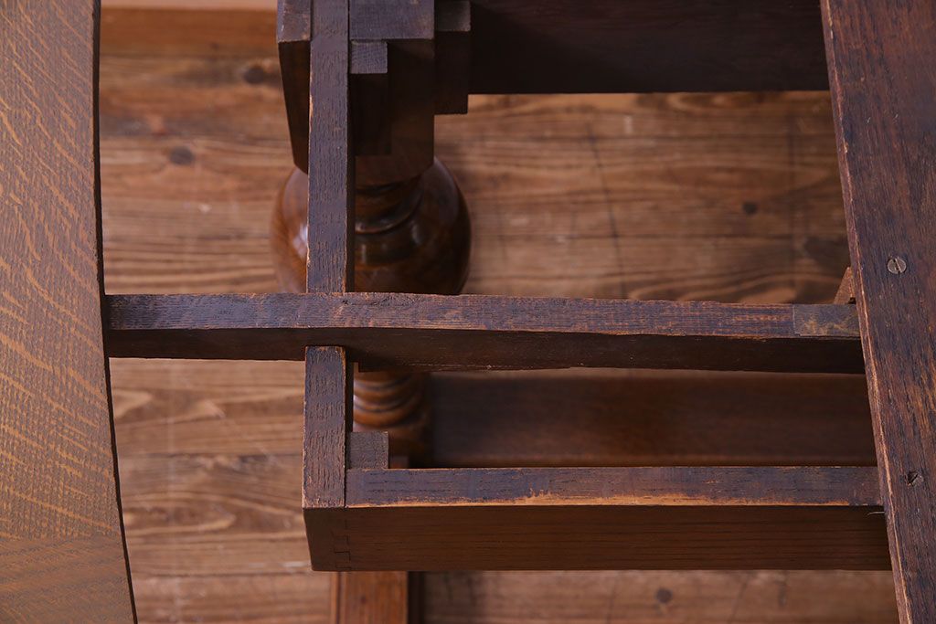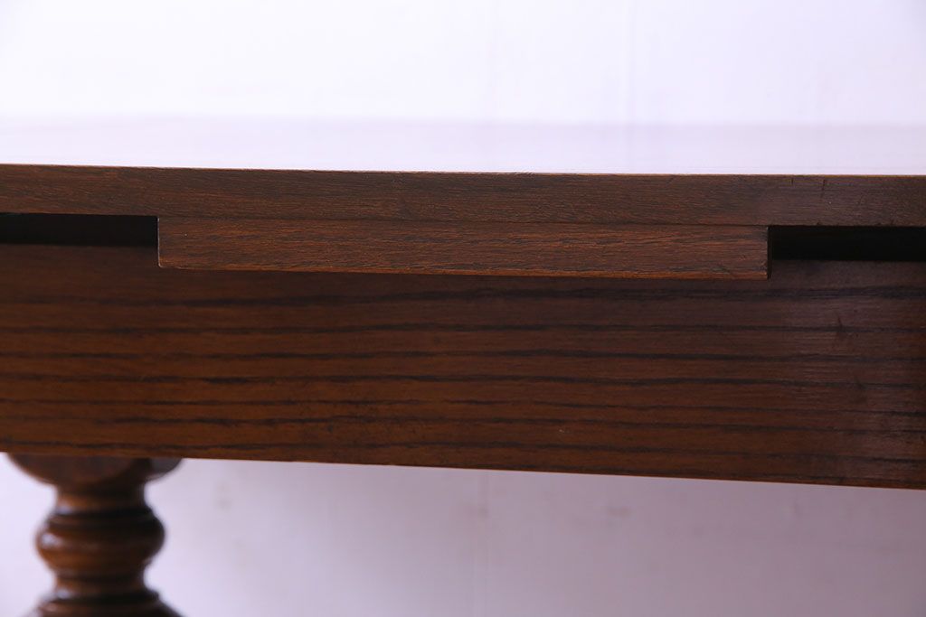 アンティーク家具 イギリスアンティーク オーク材 リッチな印象のドローリーフテーブル(エクステンションテーブル、ダイニングテーブル)