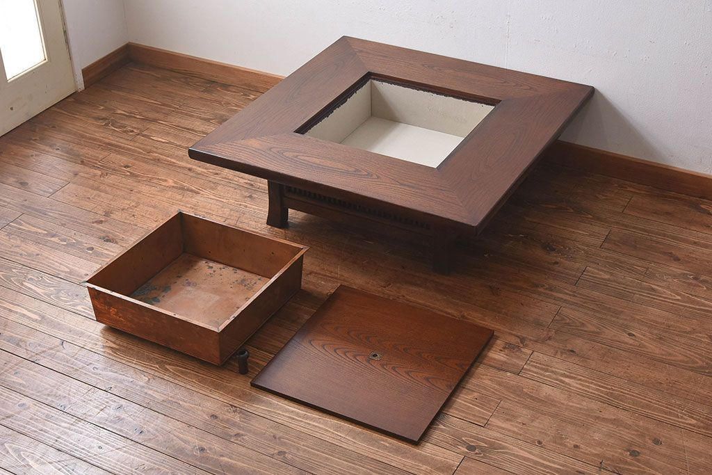 中古 九州民芸家具 小ぶりで使いやすい囲炉裏テーブル(火鉢、ローテーブル、座卓)です。