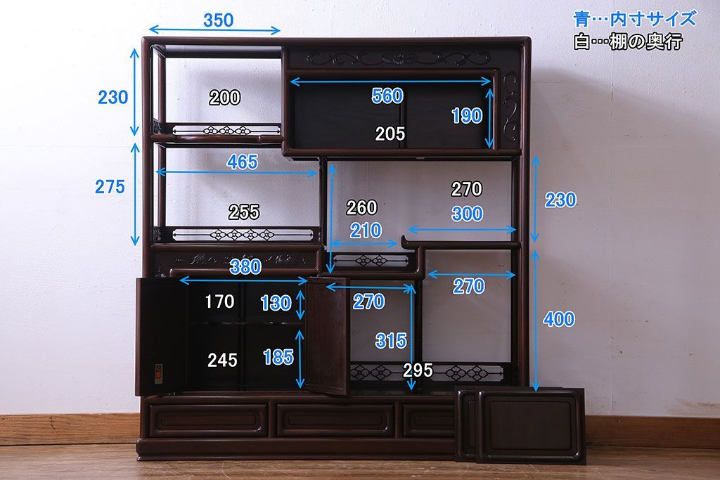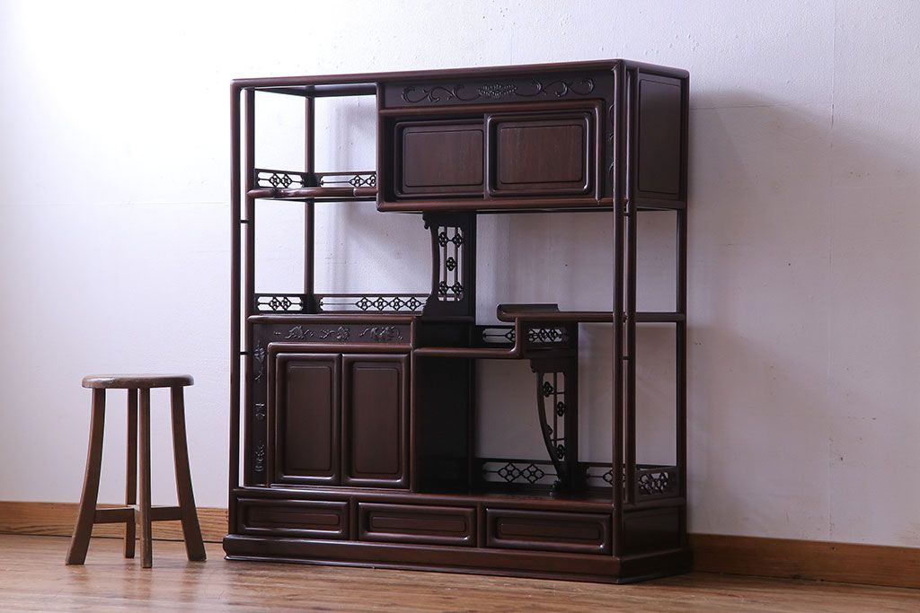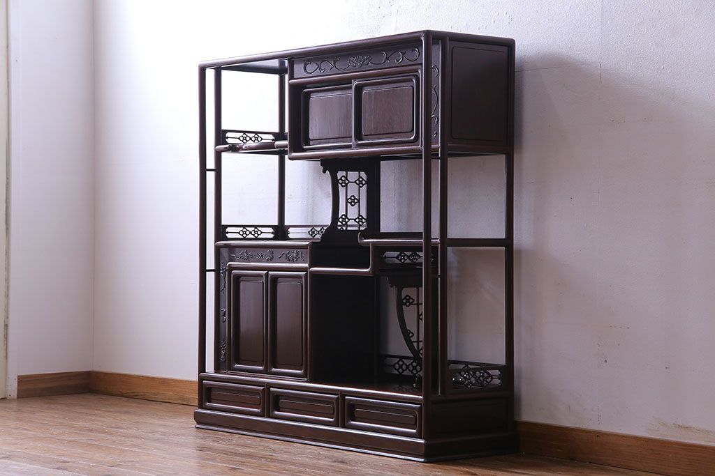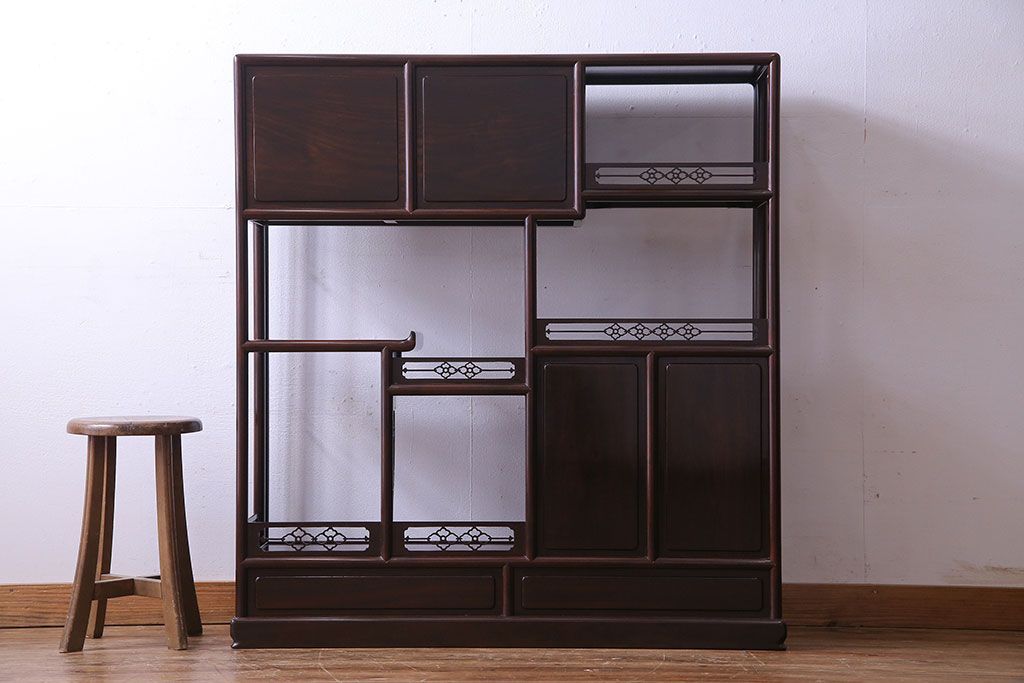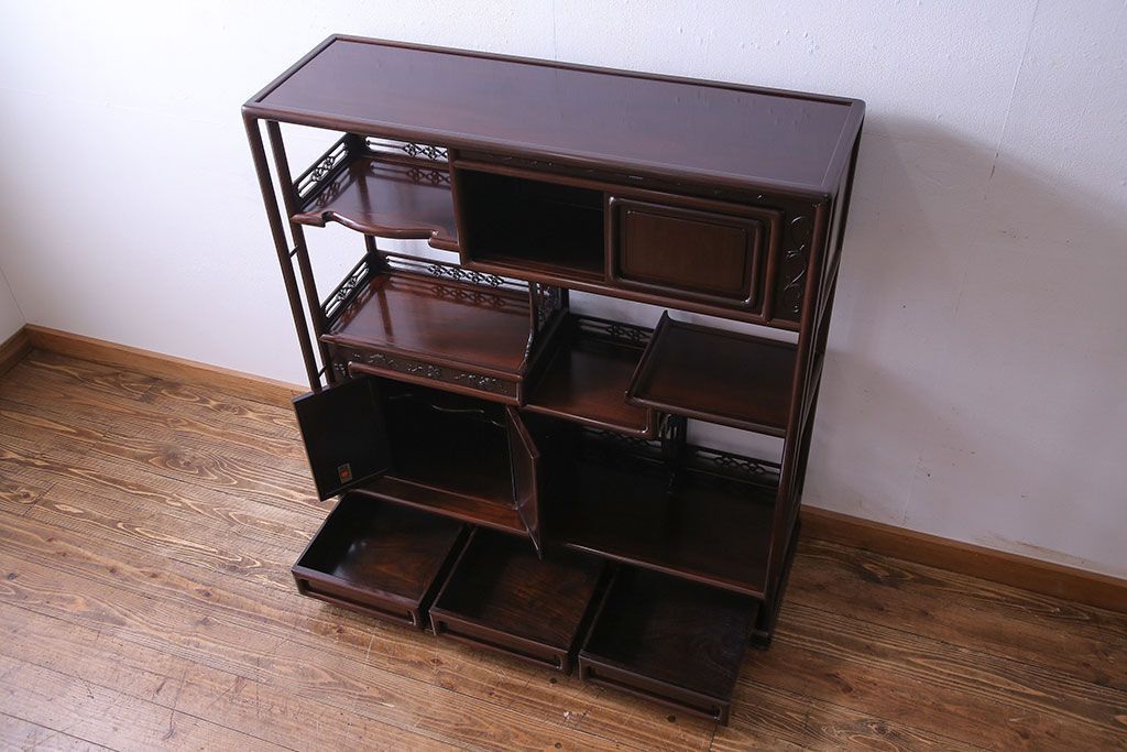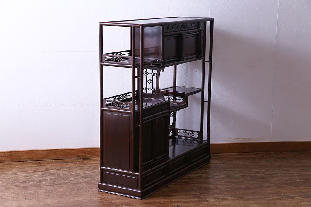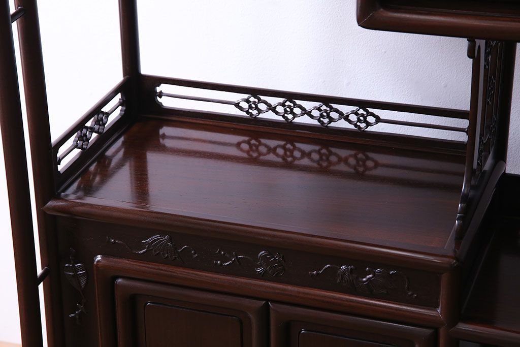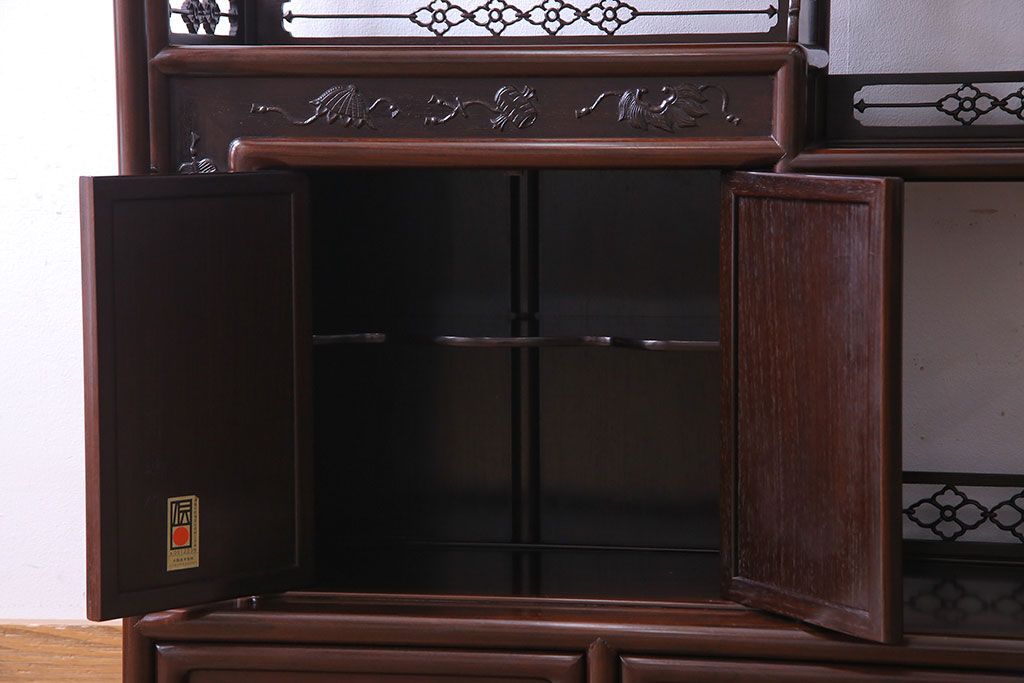 中古 経済産業大臣指定伝統的工芸品 大阪唐木指物 繊細なデザインが美しい飾り棚(茶棚)(定価約220万円)