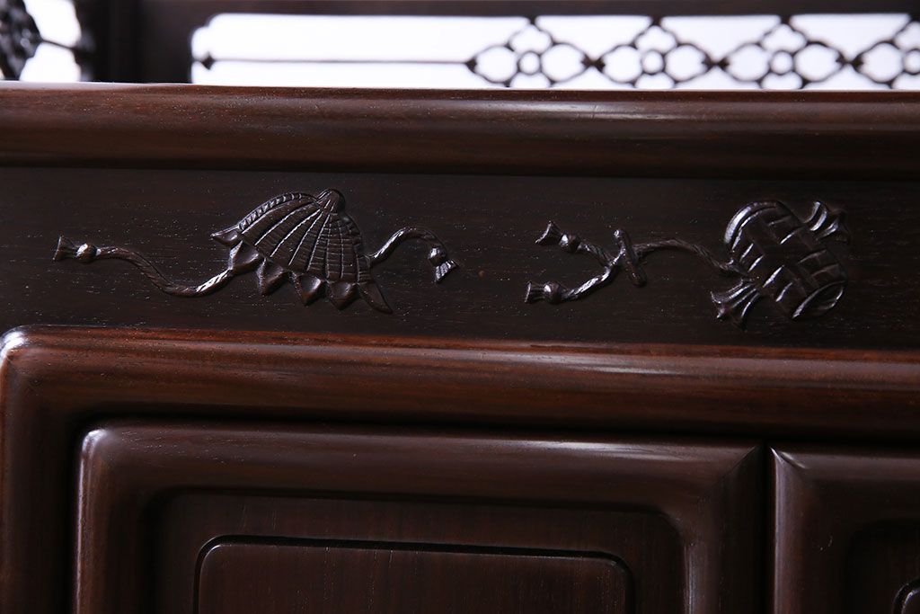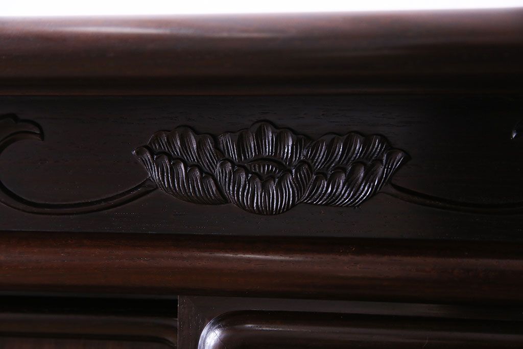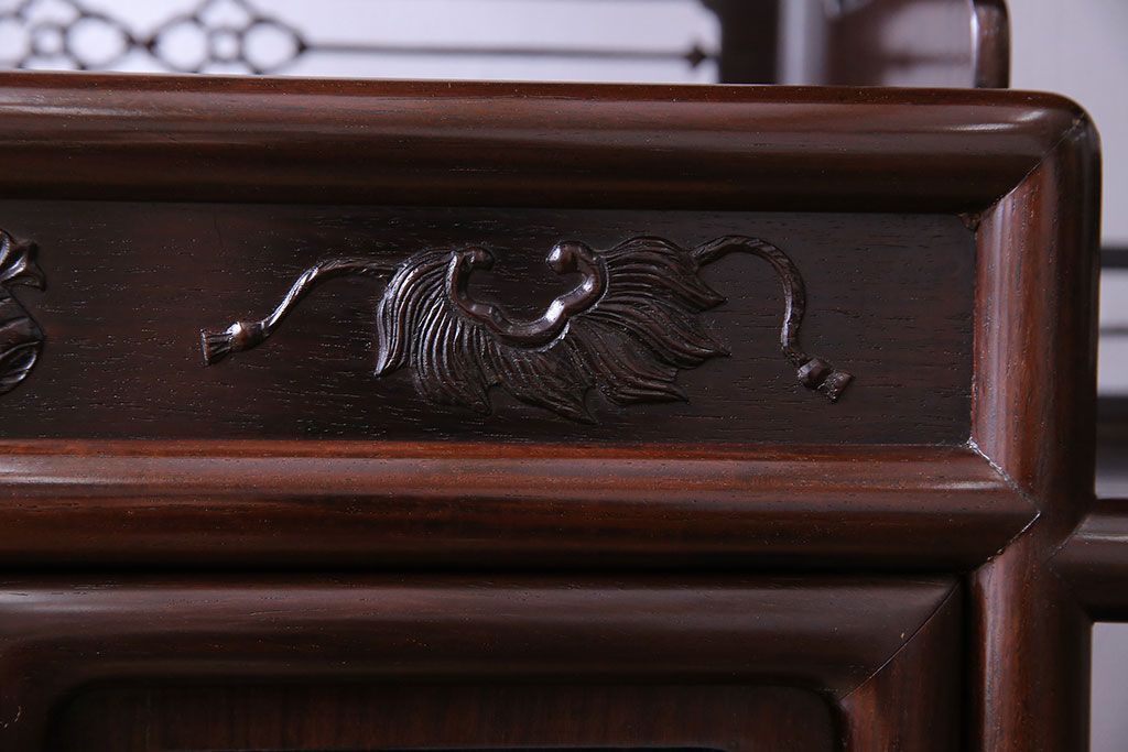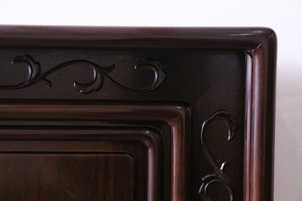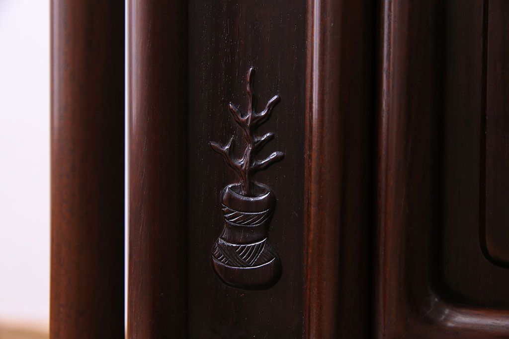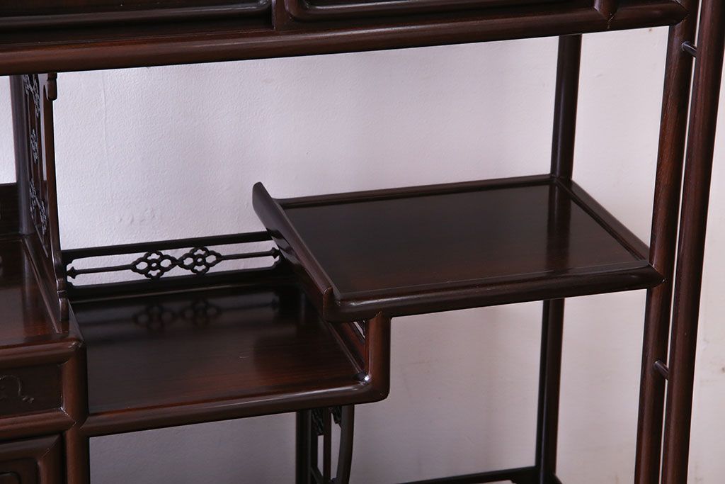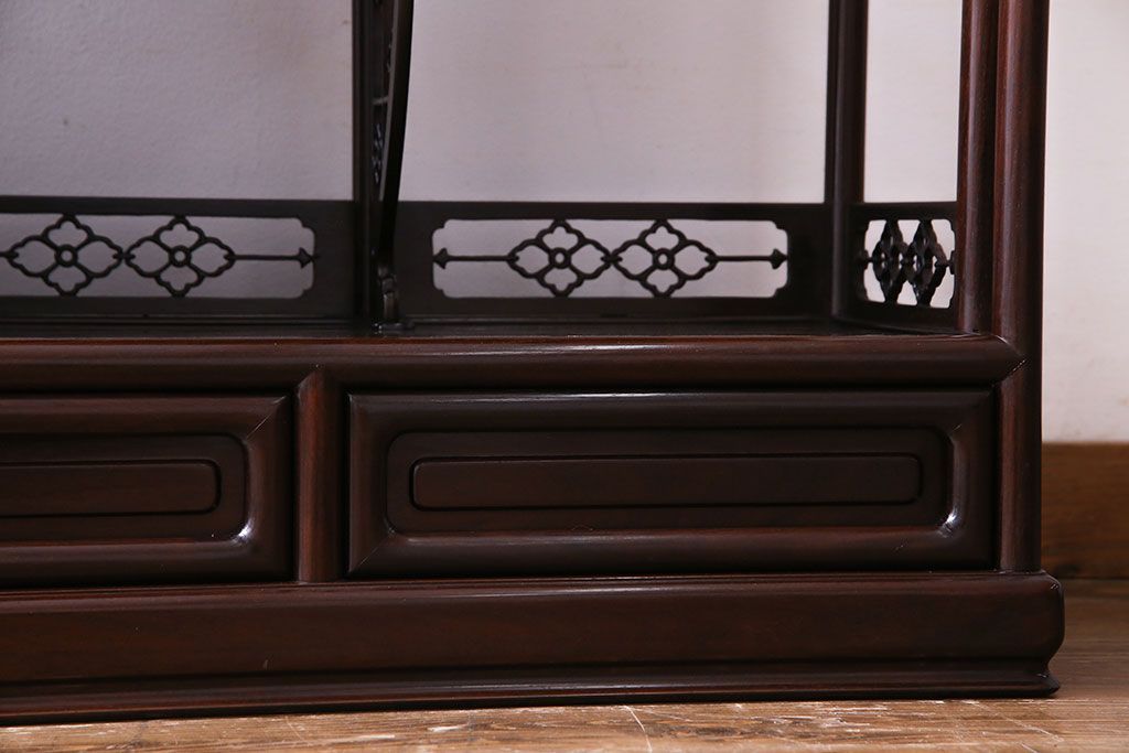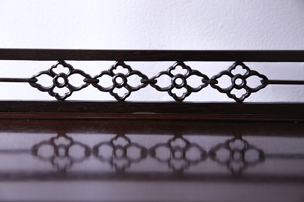大阪唐木指物の繊細なデザインが美しい飾り棚です。