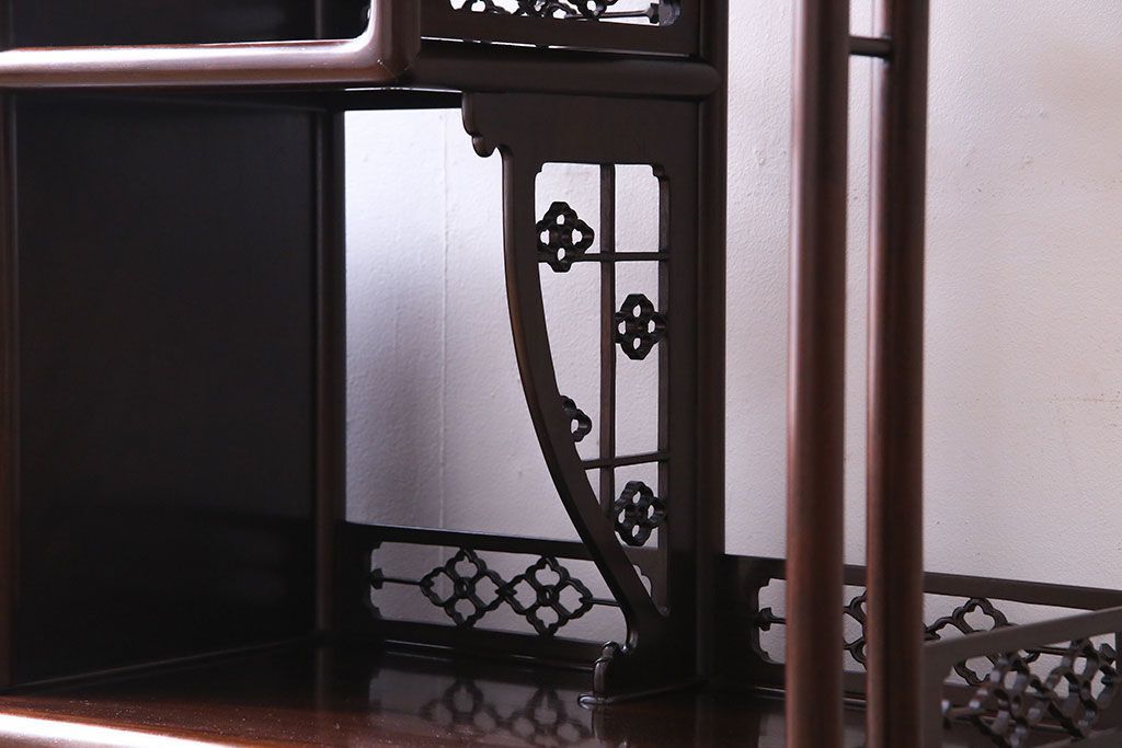中古 経済産業大臣指定伝統的工芸品 大阪唐木指物 繊細なデザインが美しい飾り棚(茶棚)(定価約220万円)です。
