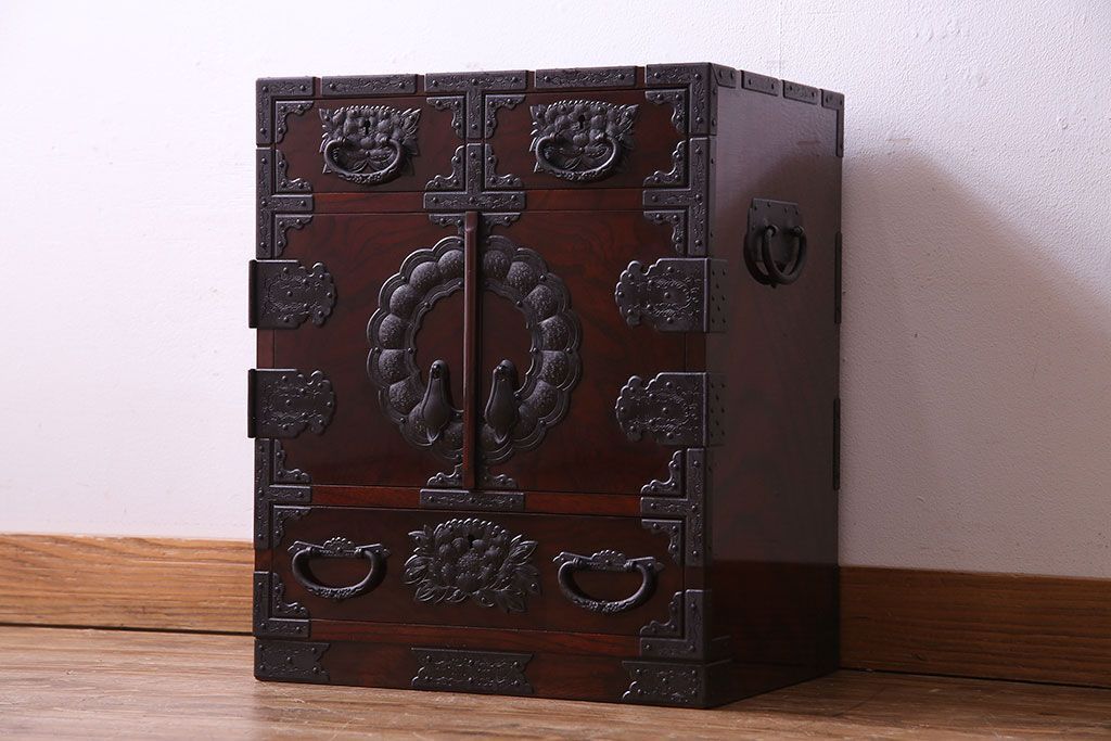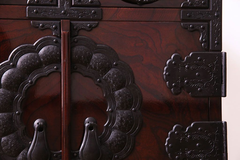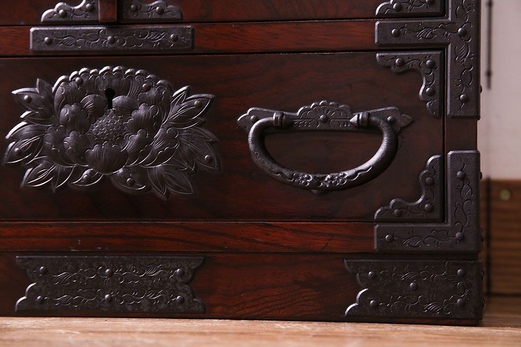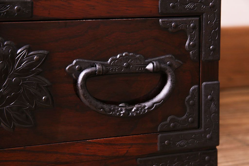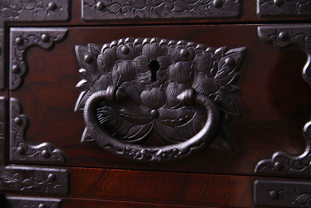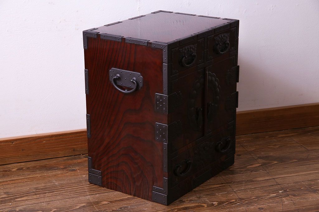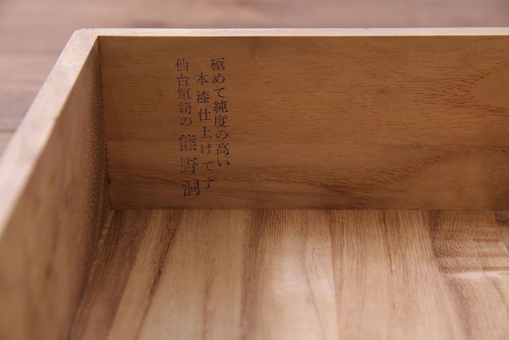 中古 熊野洞 手打ち金具の意匠が目を引く仙台箪笥(小箪笥)(定価約38万円)