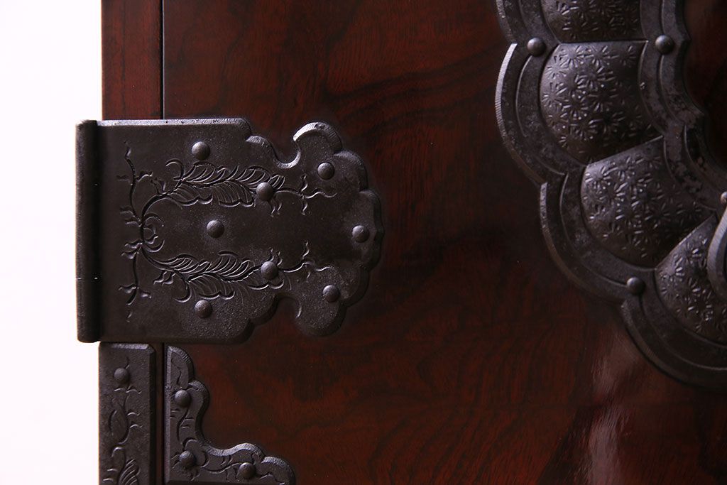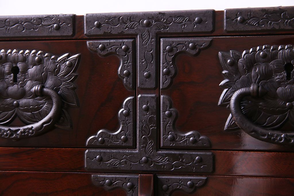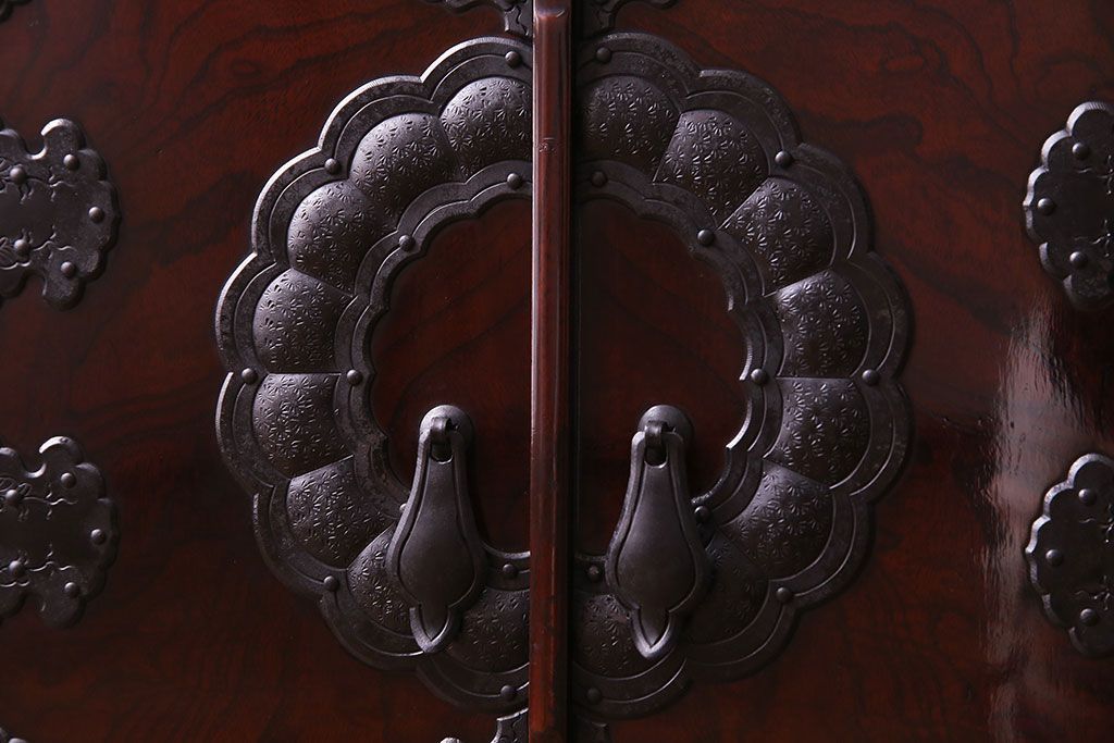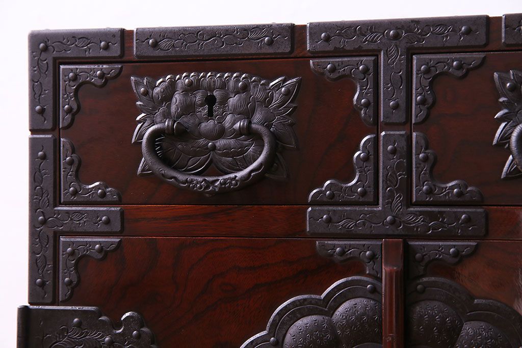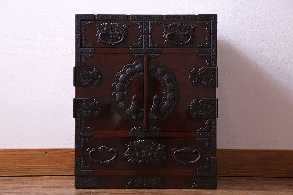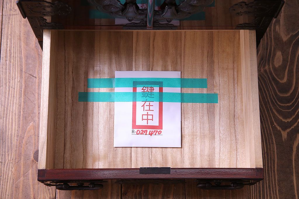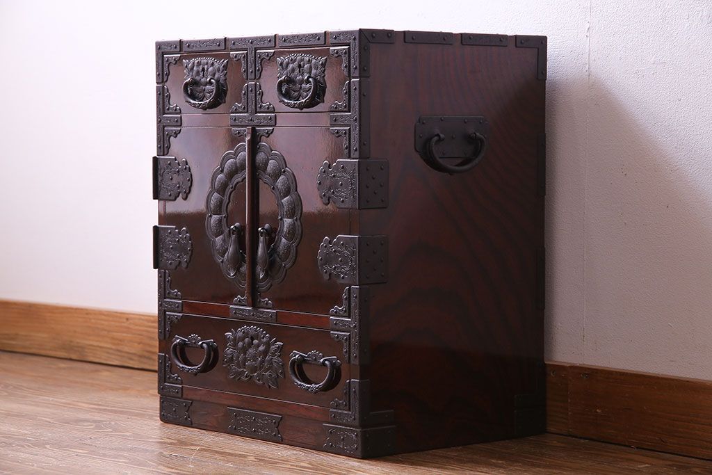 中古 熊野洞 手打ち金具の意匠が目を引く仙台箪笥(小箪笥)(定価約38万円)