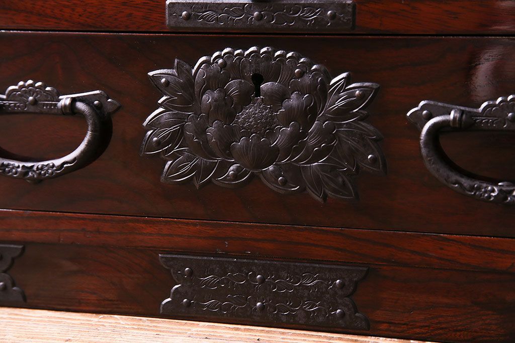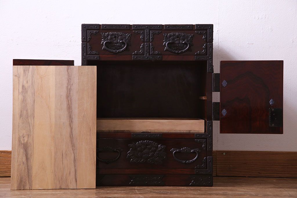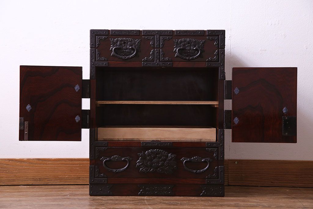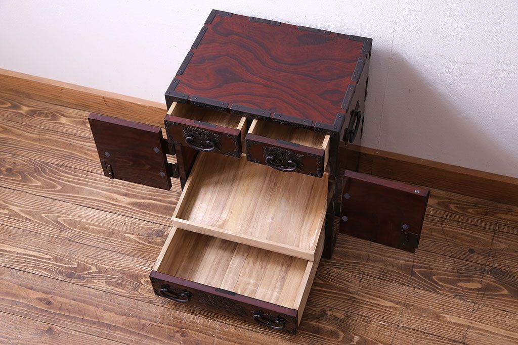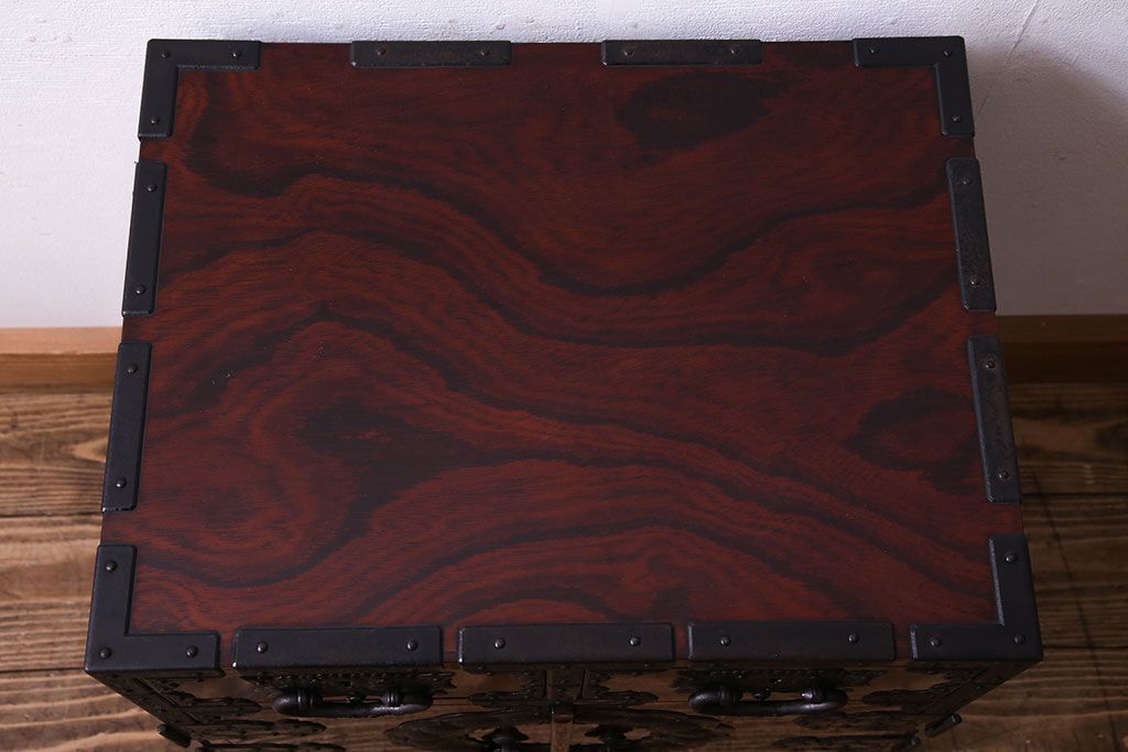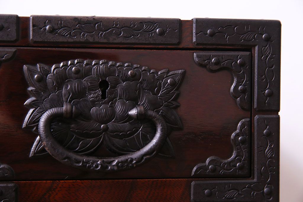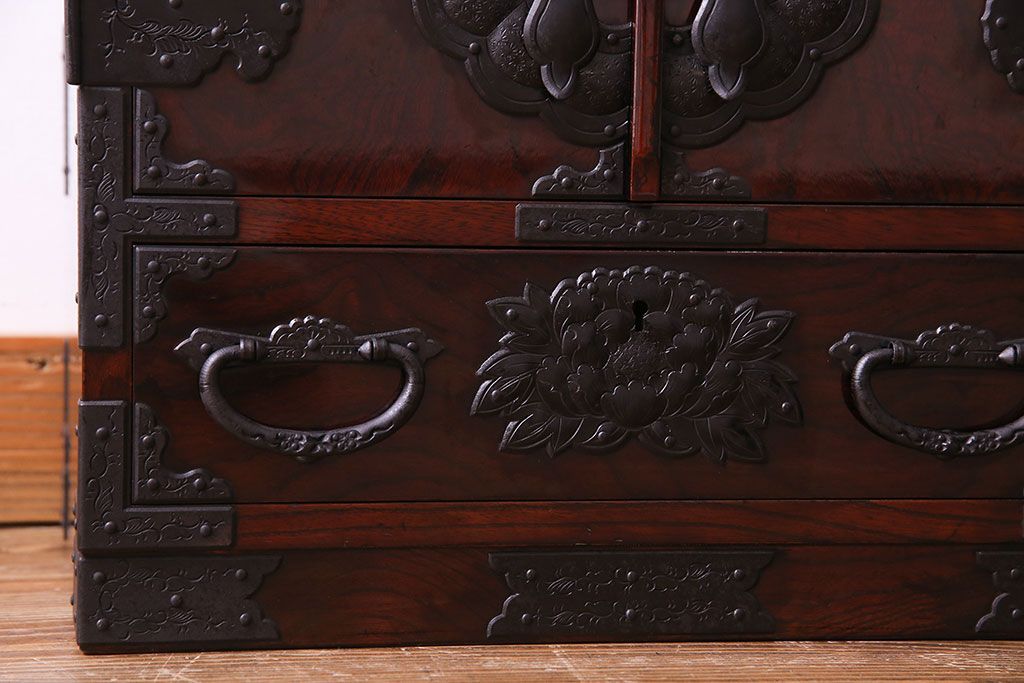 中古 熊野洞 手打ち金具の意匠が目を引く仙台箪笥(小箪笥)(定価約38万円)