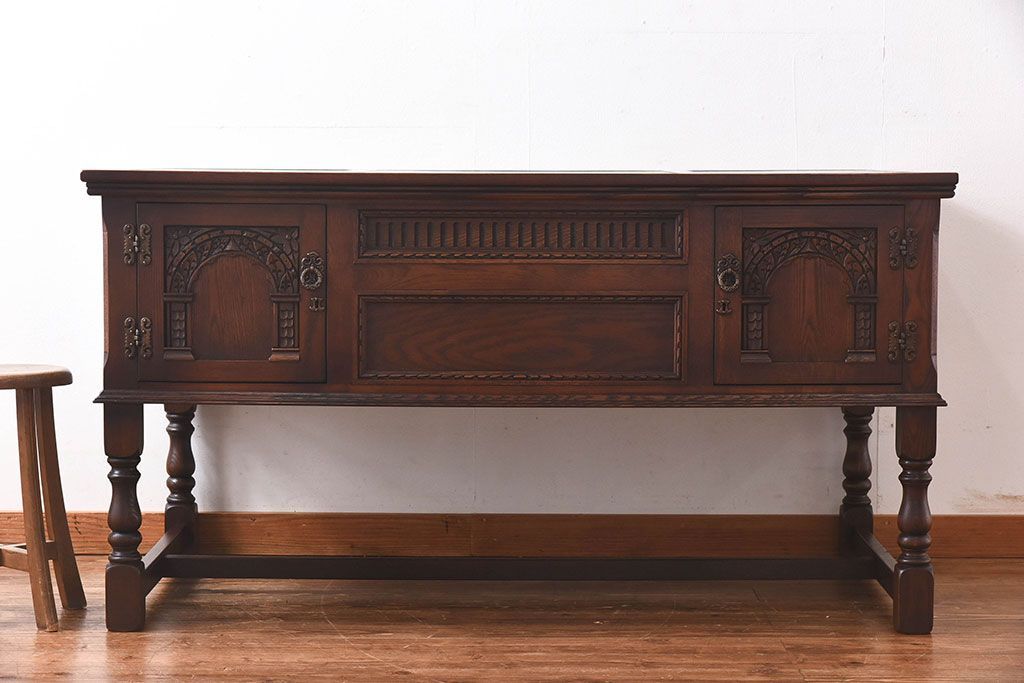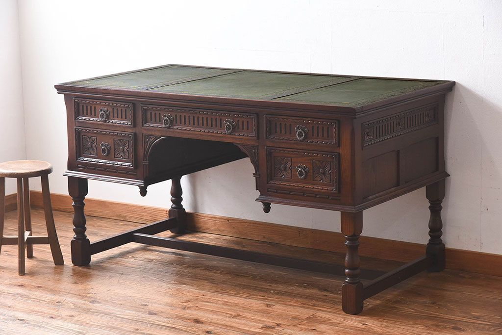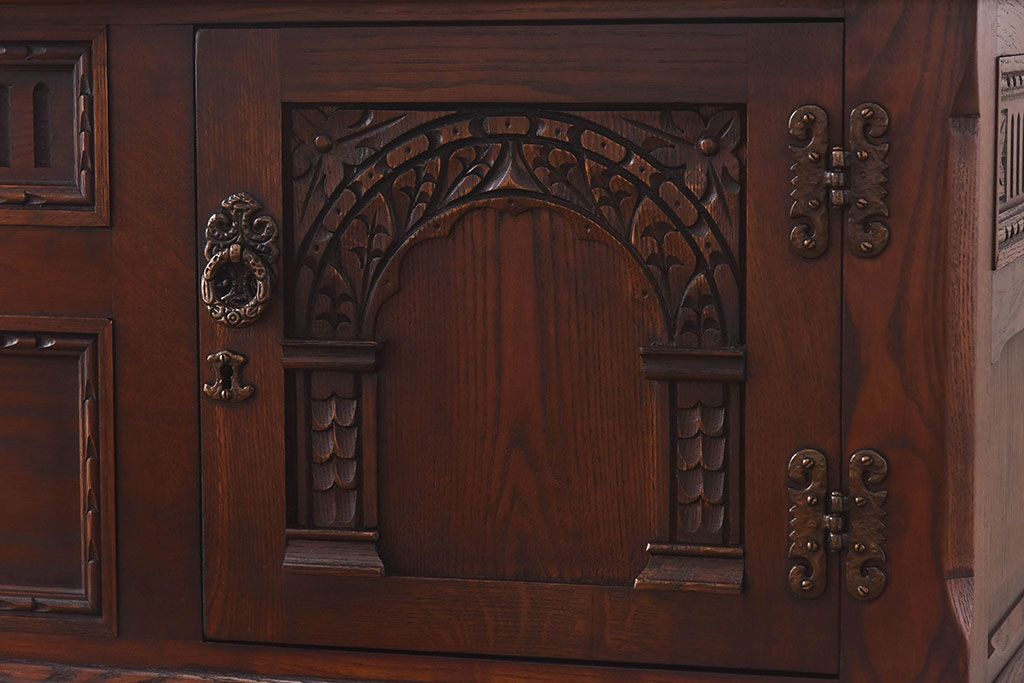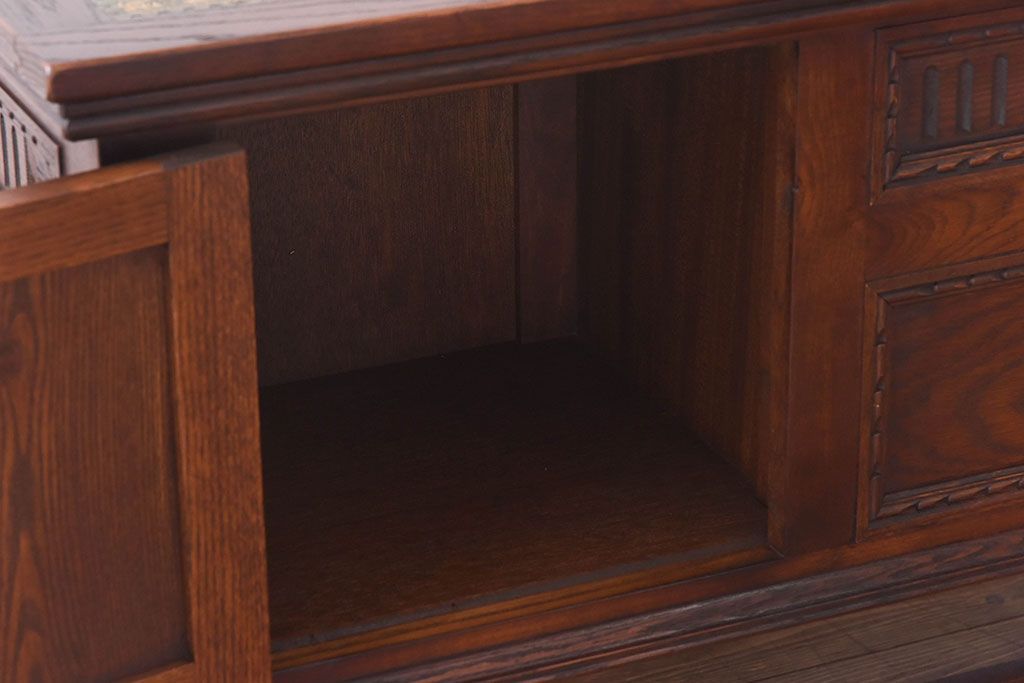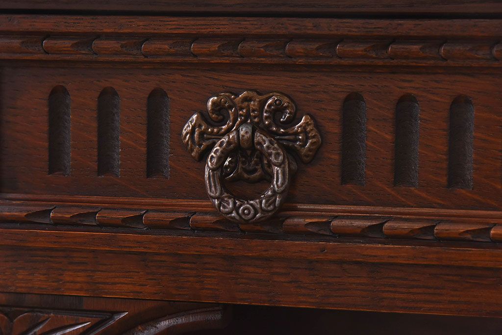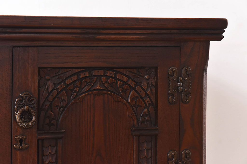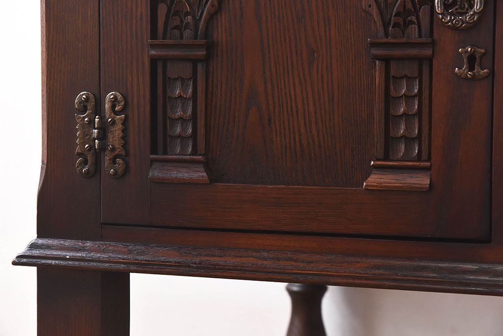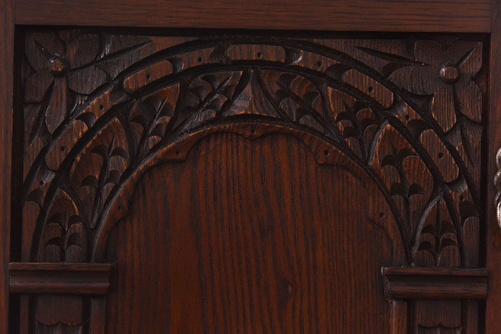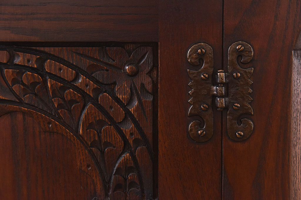 アンティークかと思わせるようなクオリティの高い手彫りの彫刻は、