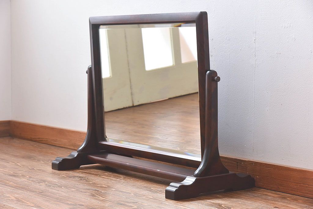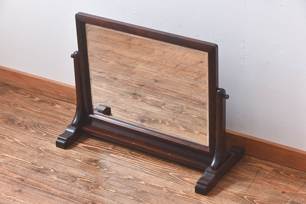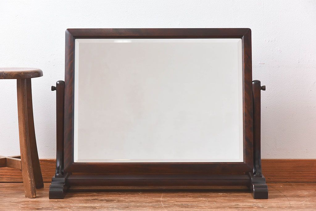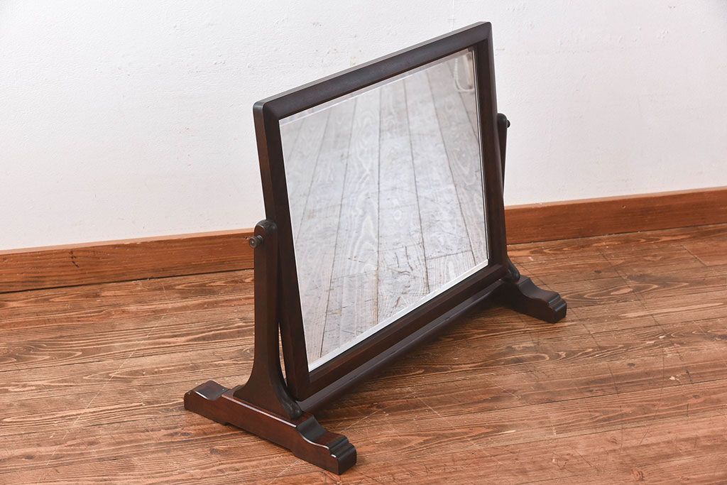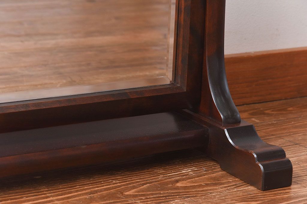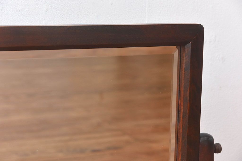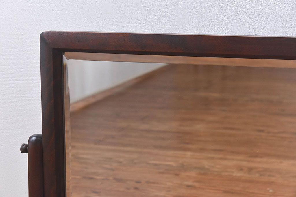 アンティーク雑貨 中古 北海道民芸家具 なめらかな木の風合いが魅力のミラー(スタンドミラー、鏡)