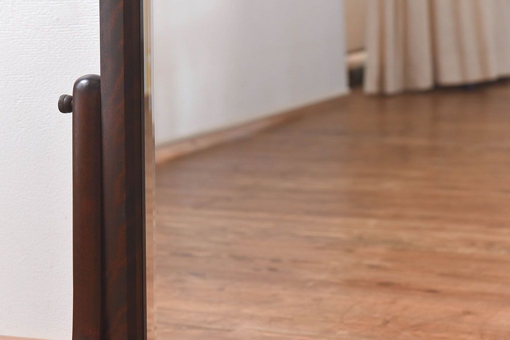 ラフジュ工房> 鏡 > アンティーク雑貨 中古 北海道民芸家具 なめらかな木の風合いが魅力のミラー(スタンドミラー、鏡)