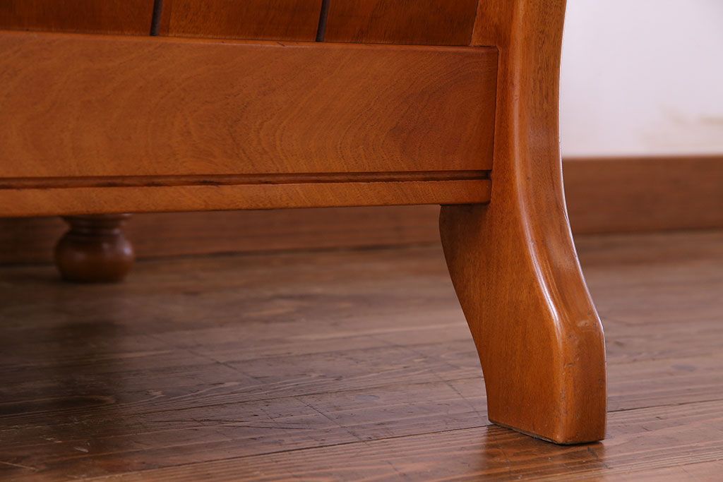 脚にも意匠が凝らされており、落ち着いた雰囲気の中にも華やかさが感じられるお品です。比較的脚が高く、床のお掃除もしやすいですよ。