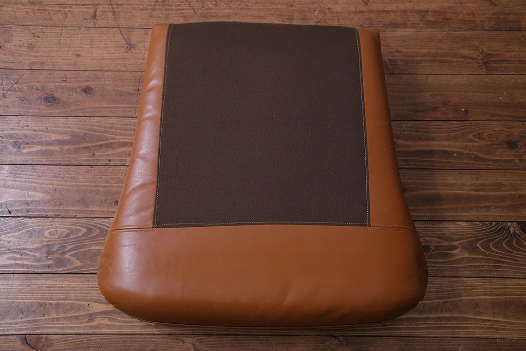個性的なデザインのフレームが目を惹きますね。傾斜がついた構造で、お尻が沈んで深く腰掛けられるので、とてもリラックスしてお座りいただけますよ。