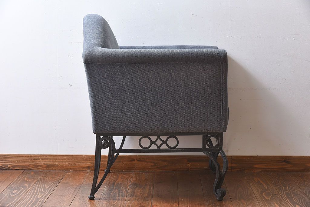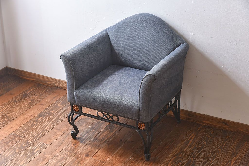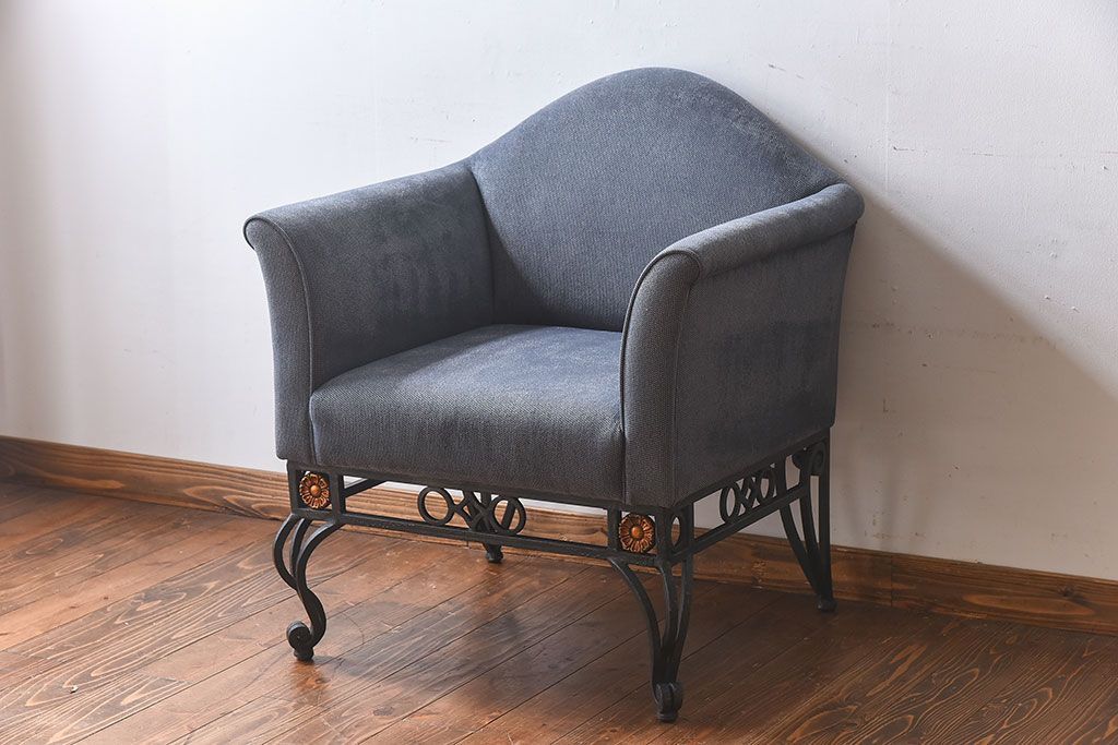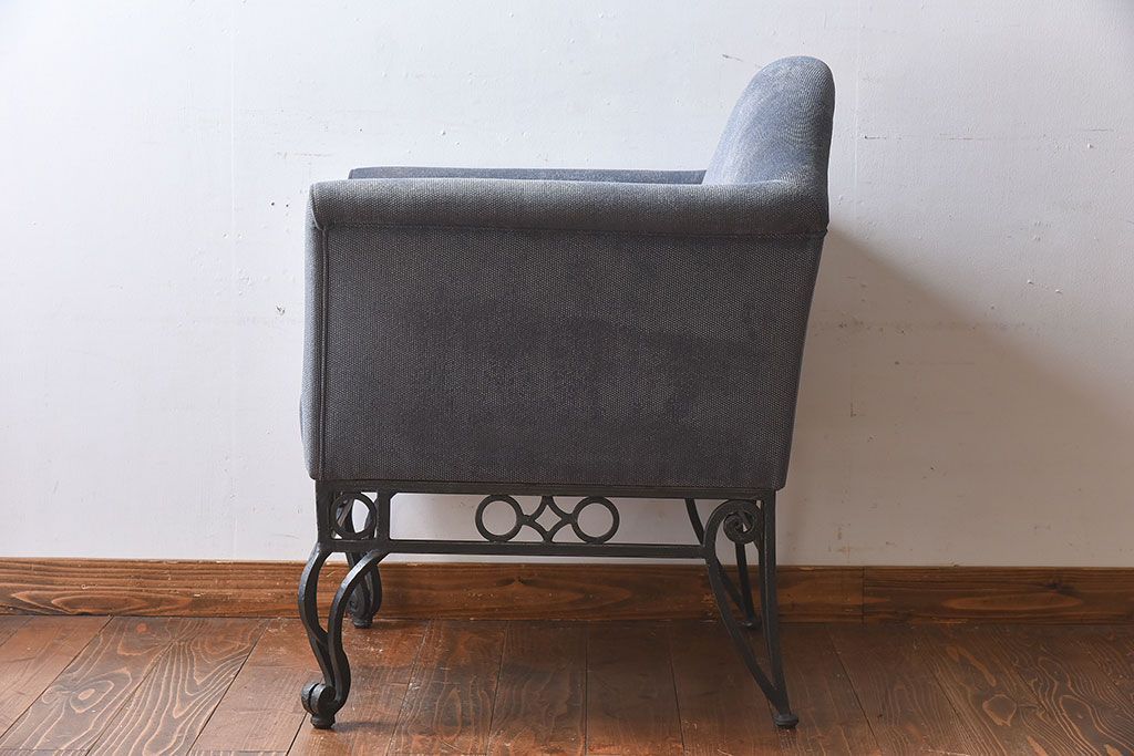 海外ビンテージ ガブリオールレッグ(猫脚) アイアンフレームがシャビーな1人掛けソファ(2)です。