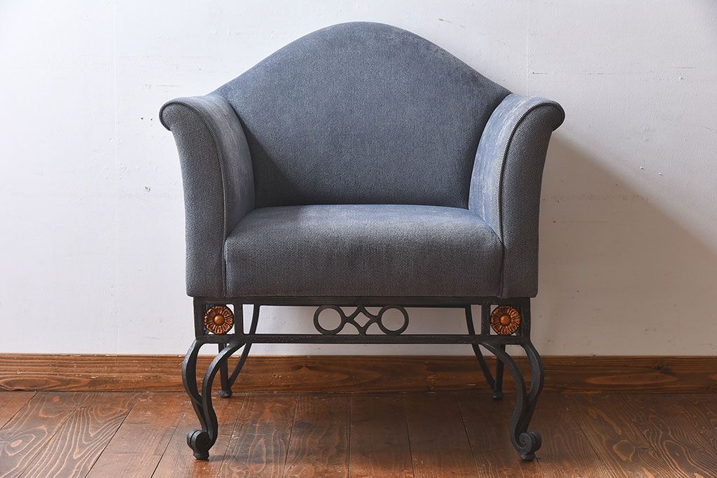 ヴィンテージ家具 海外ビンテージ ガブリオールレッグ(猫脚) アイアンフレームがシャビーな1人掛けソファ(2)
