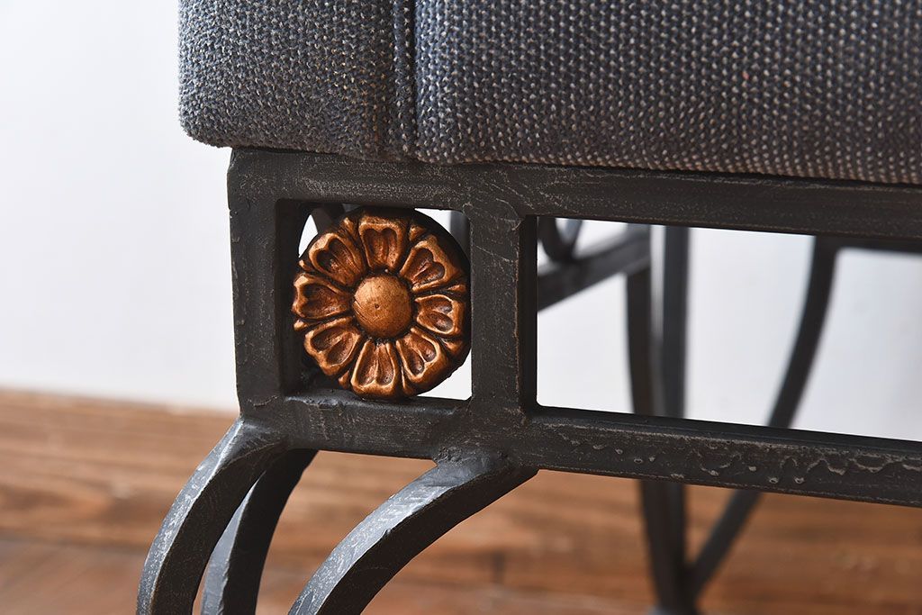 ソファ> ダイニングソファ > ヴィンテージ家具 海外ビンテージ ガブリオールレッグ(猫脚) アイアンフレームがシャビーな1人掛けソファ(2)