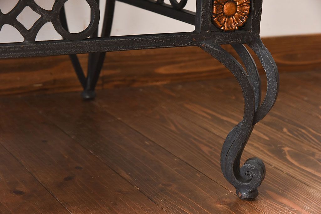 ソファ > ヴィンテージ家具 海外ビンテージ ガブリオールレッグ(猫脚) アイアンフレームがシャビーな1人掛けソファ(2)