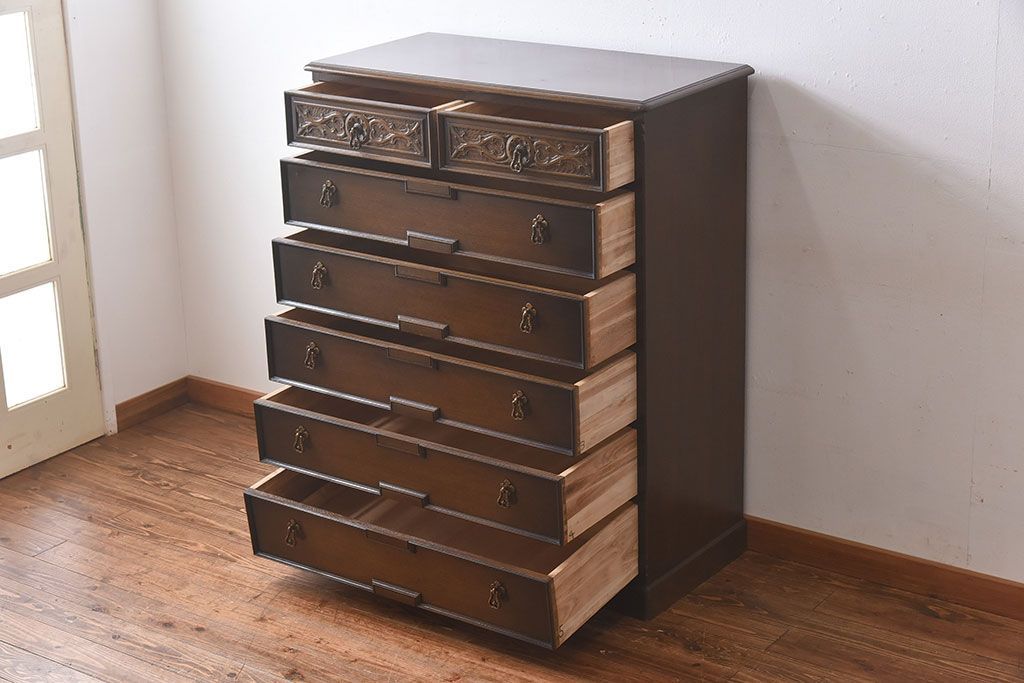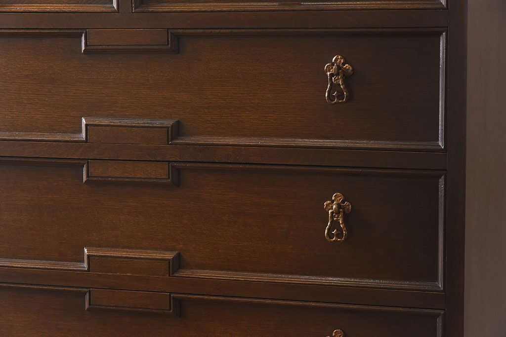 ビンテージ 神戸洋家具老舗たかねや製 オーク材使用の上品なチェスト(引き出し)(2)(永田良介)