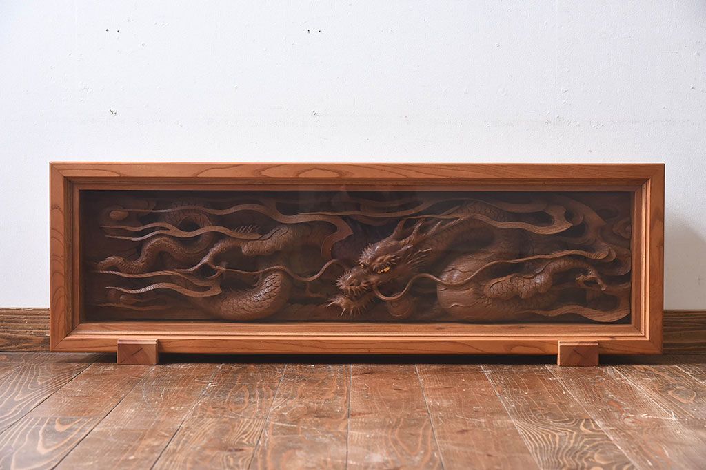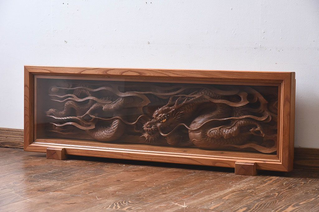 アンティーク雑貨 総ケヤキ材 飛龍 迫力のある存在感が魅力的な欄間