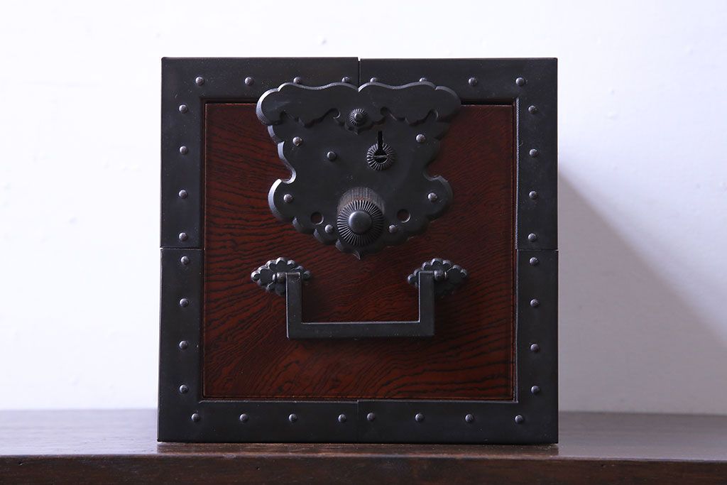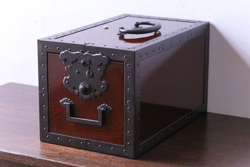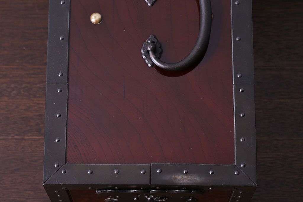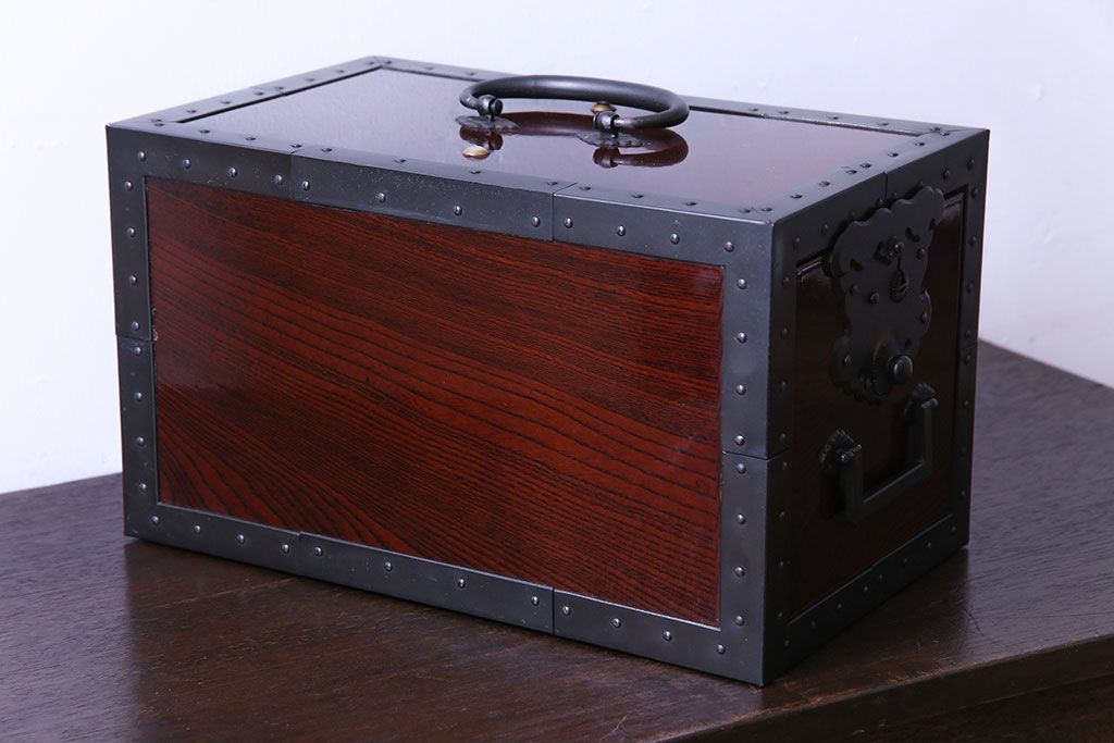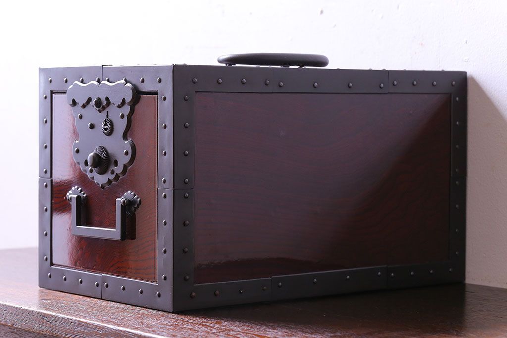 中古 匠工芸製 木地呂塗りのツヤが美しい金庫箪笥(帳箱、船箪笥、千両箱)