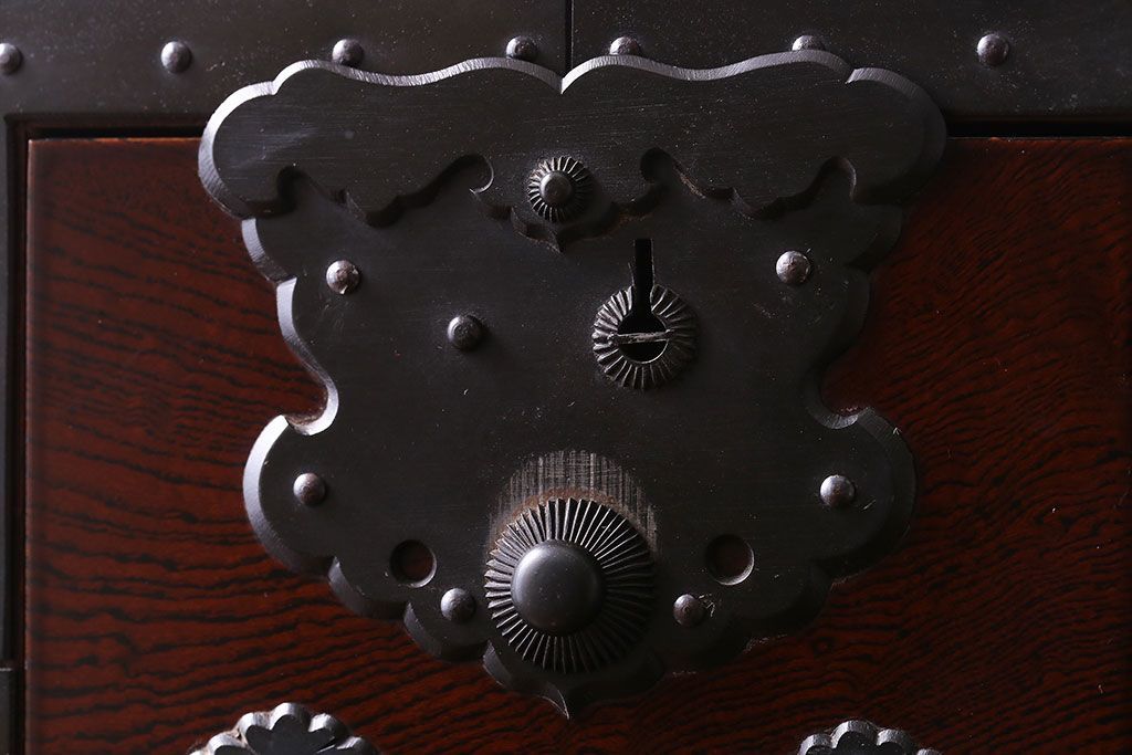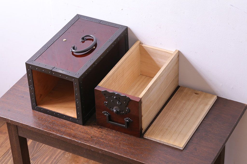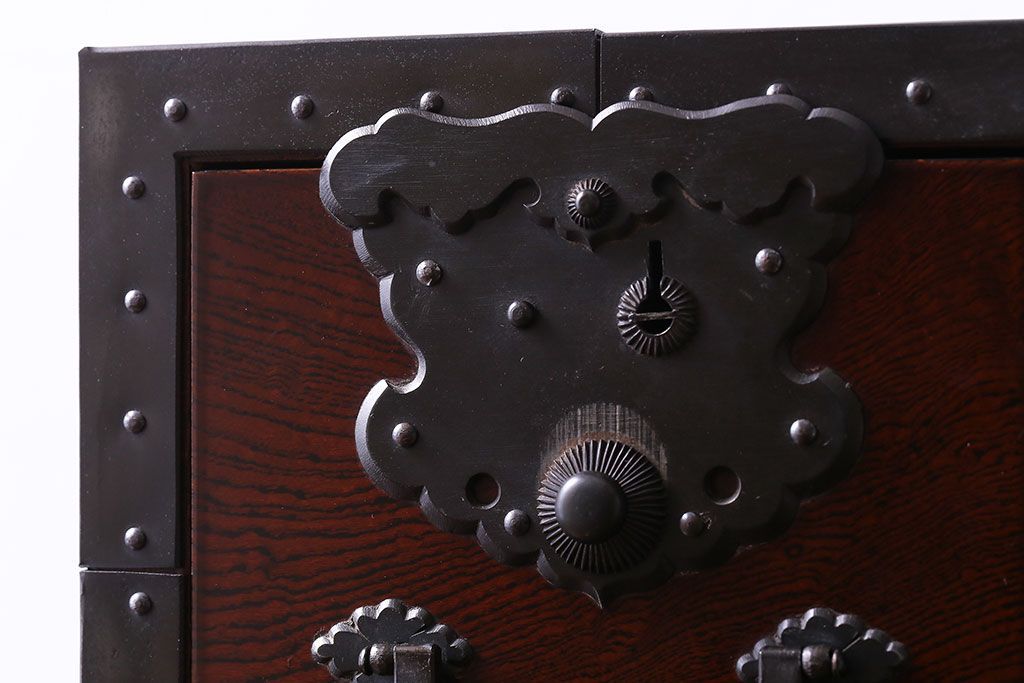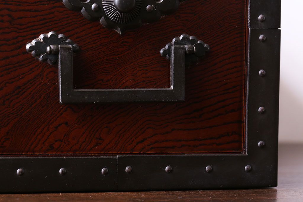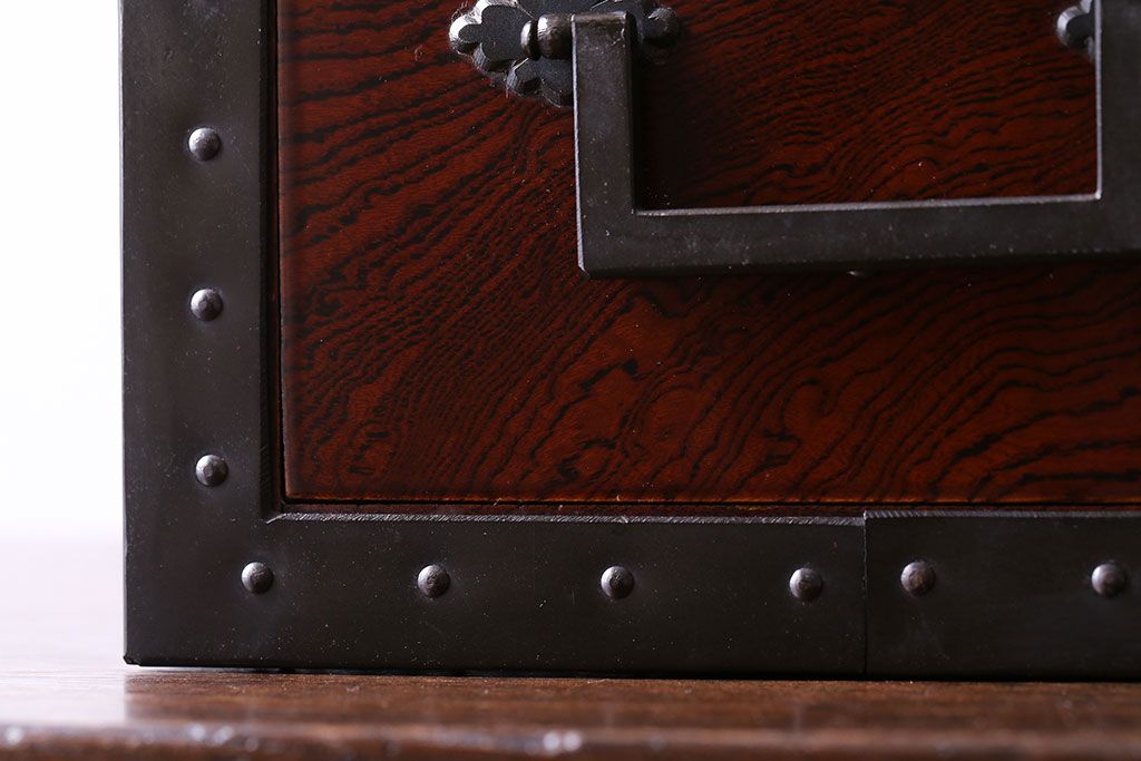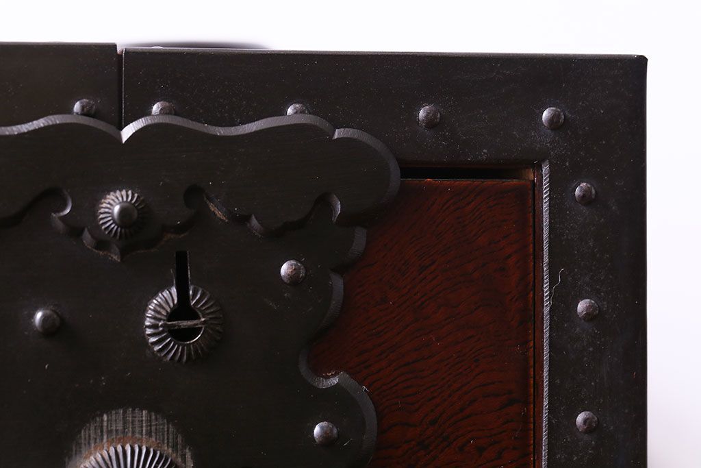中古 匠工芸製 木地呂塗りのツヤが美しい金庫箪笥(帳箱、船箪笥、千両箱)
