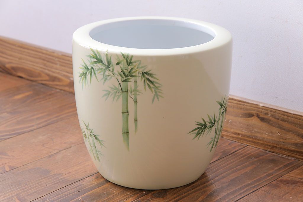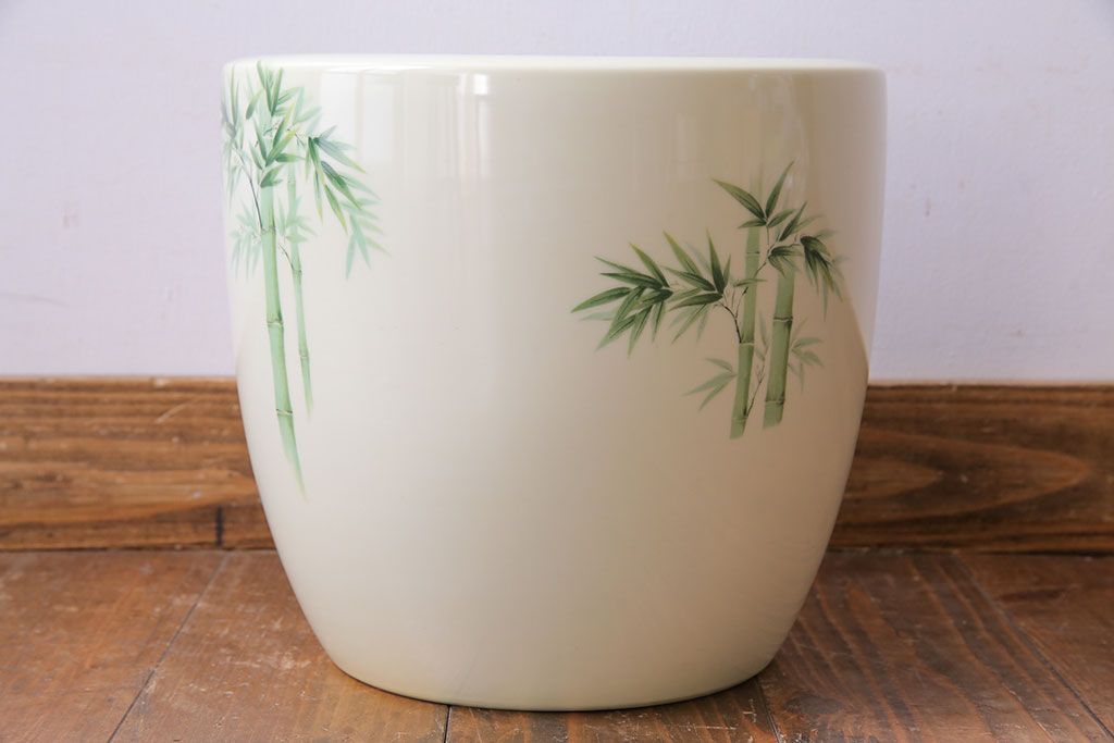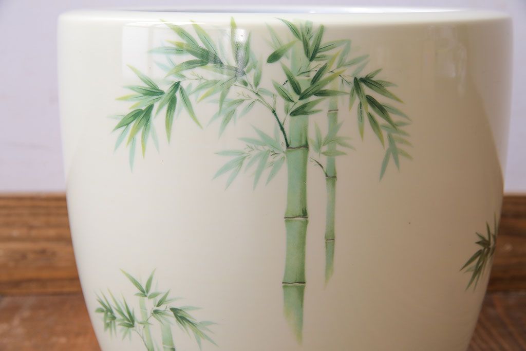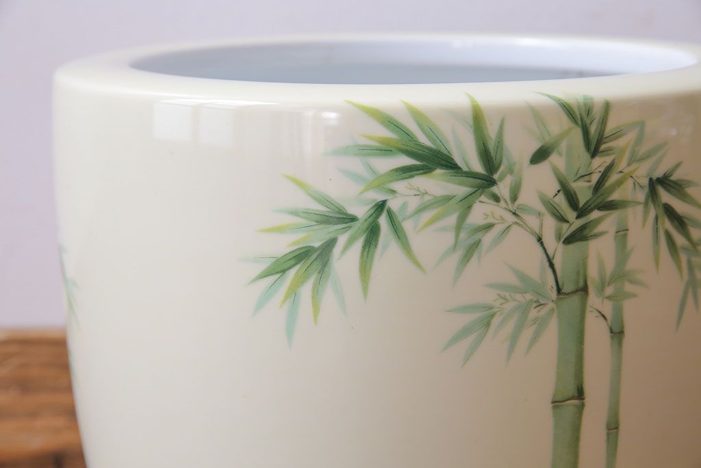 火鉢> 瀬戸火鉢 > アンティーク雑貨 ノリタケ・則武(日陶) 和の雰囲気漂う竹の図の火鉢(手あぶり、鉢カバー)