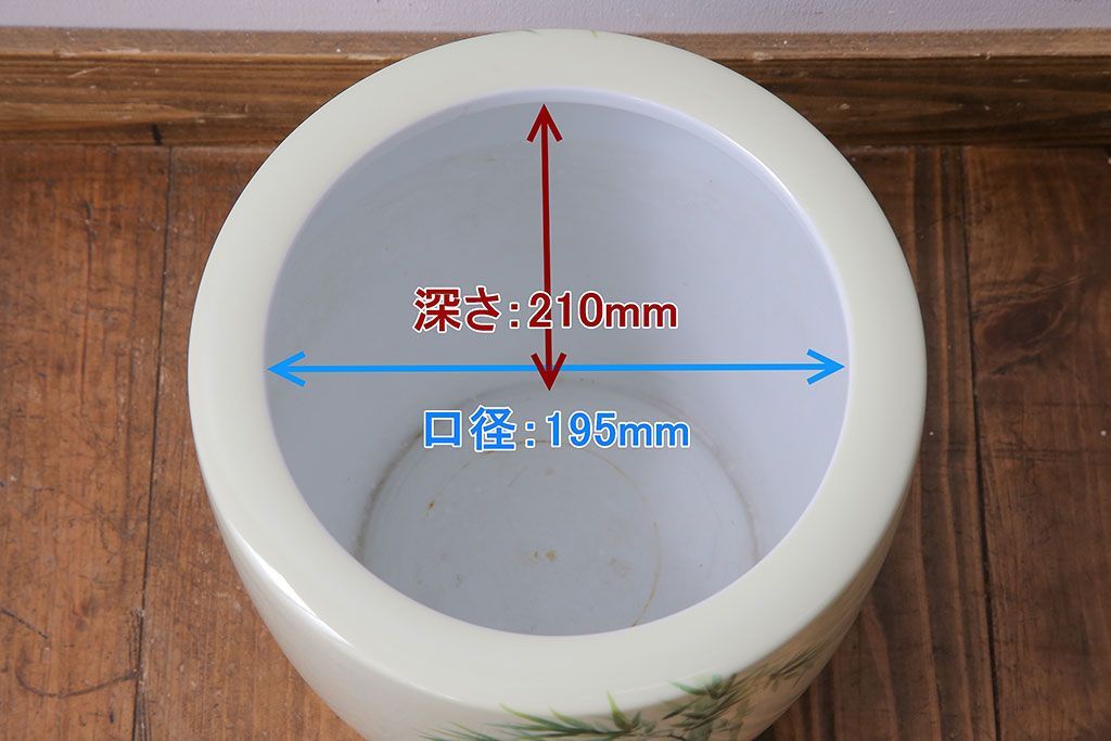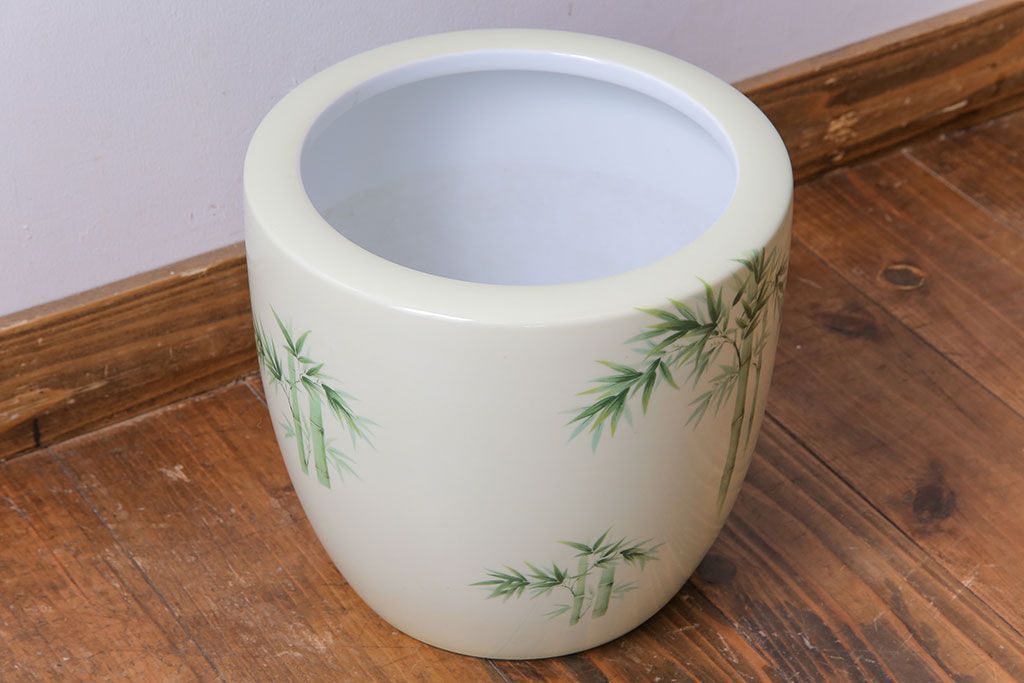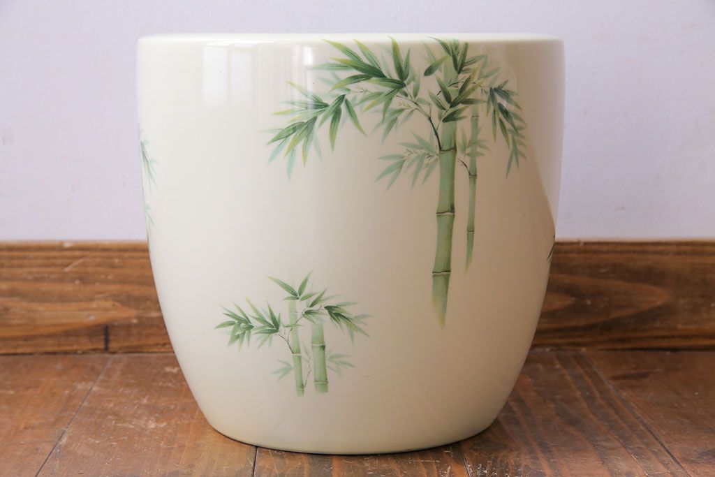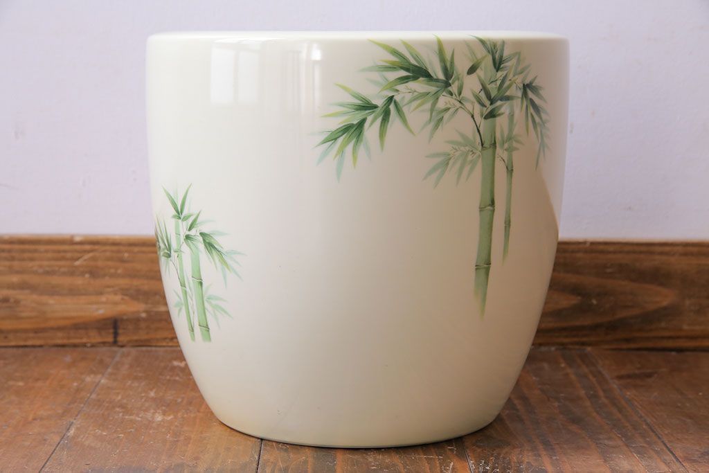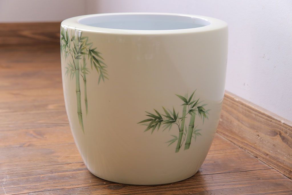 火鉢> 瀬戸火鉢 > アンティーク雑貨 ノリタケ・則武(日陶) 和の雰囲気漂う竹の図の火鉢(手あぶり、鉢カバー)