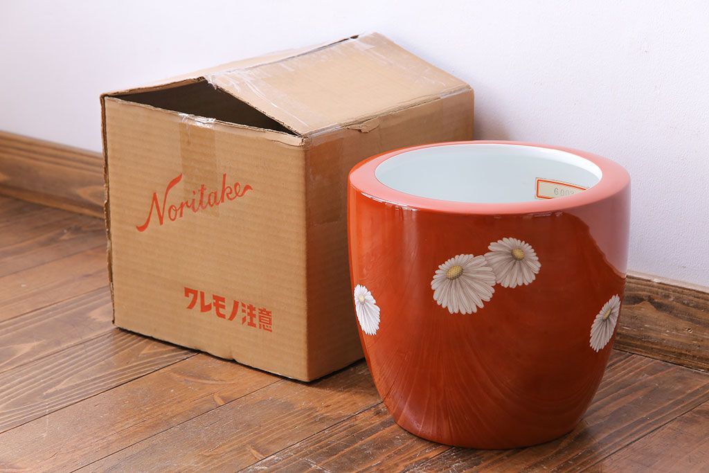 未使用 ノリタケ・則武(日陶) 箱付 朱色地白菊文様 レトロな火鉢(手あぶり、鉢カバー)(2)です。