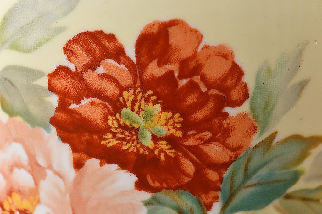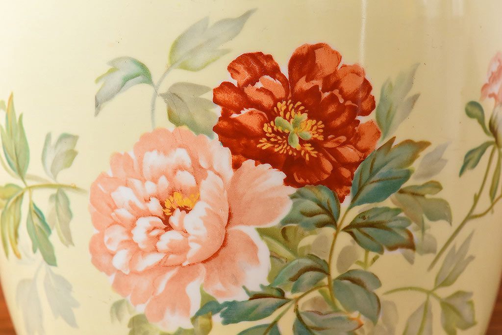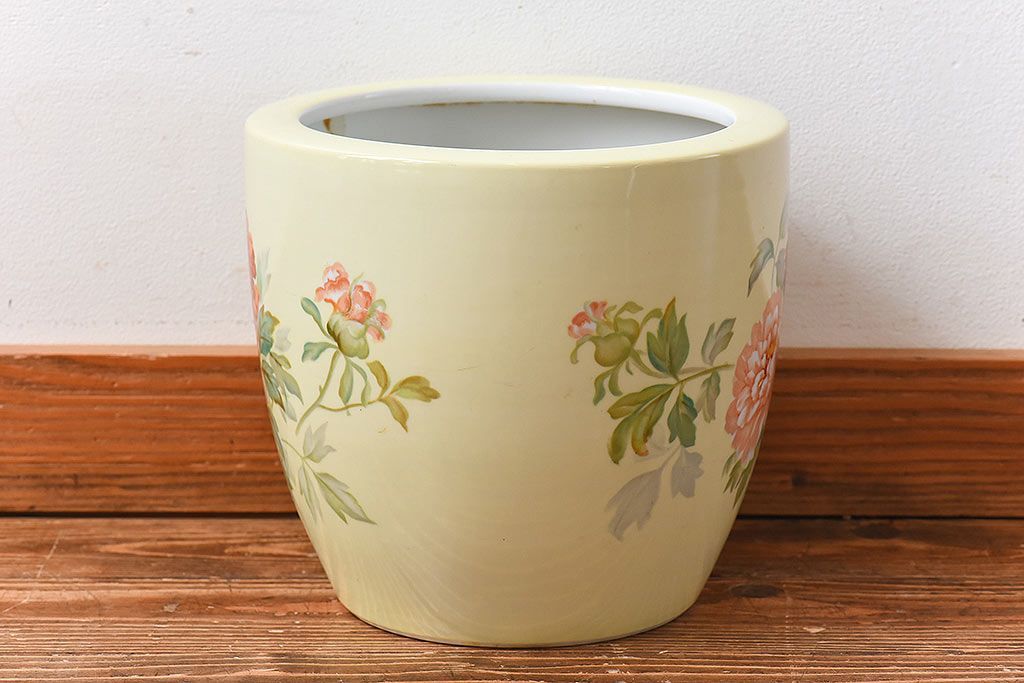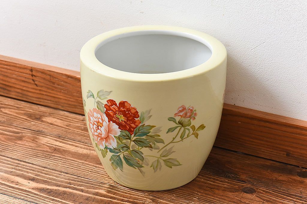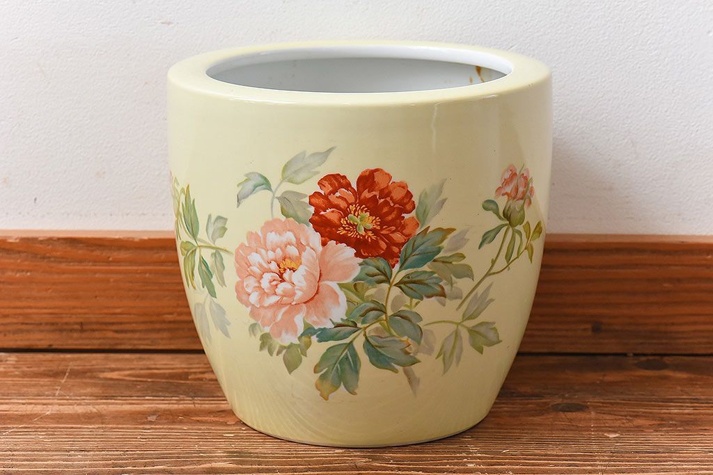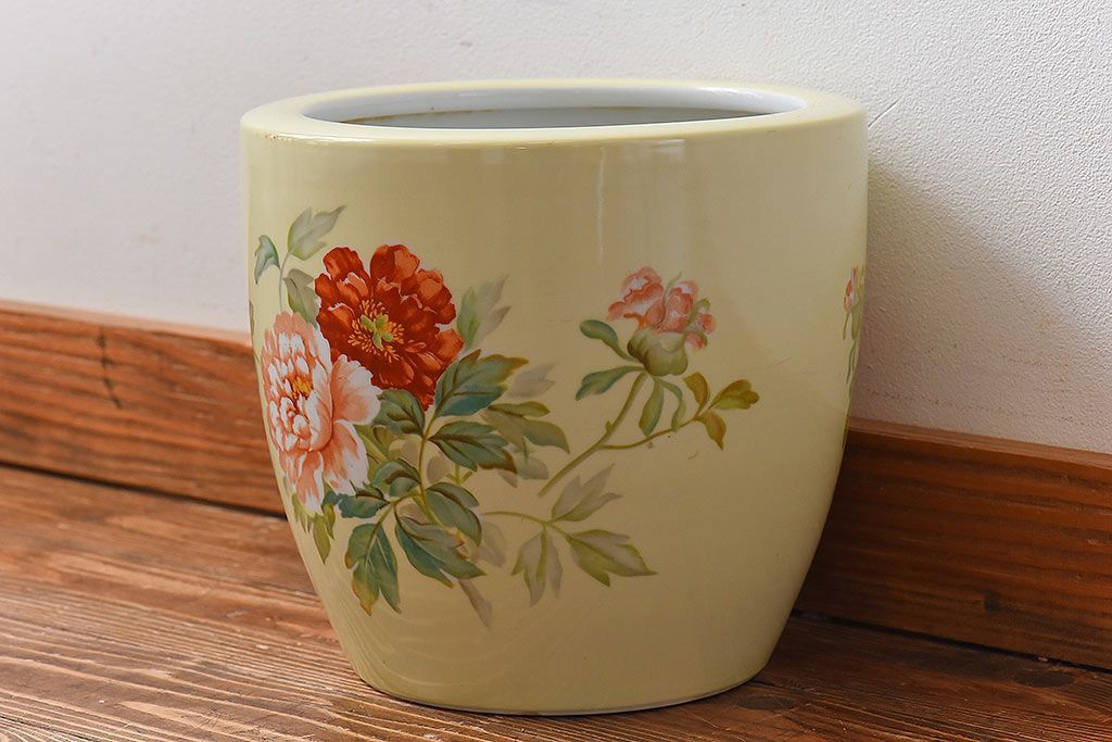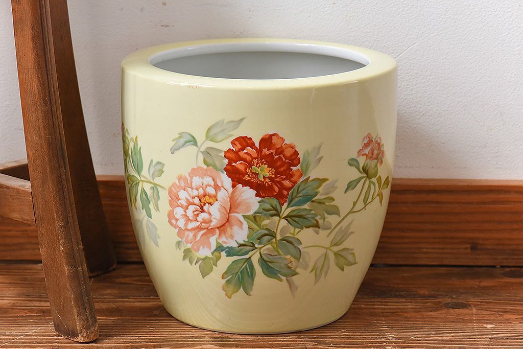 アンティーク雑貨 ノリタケ・則武(日陶) 昭和初期 鮮やかな牡丹が美しい火鉢(鉢カバー)(1)
