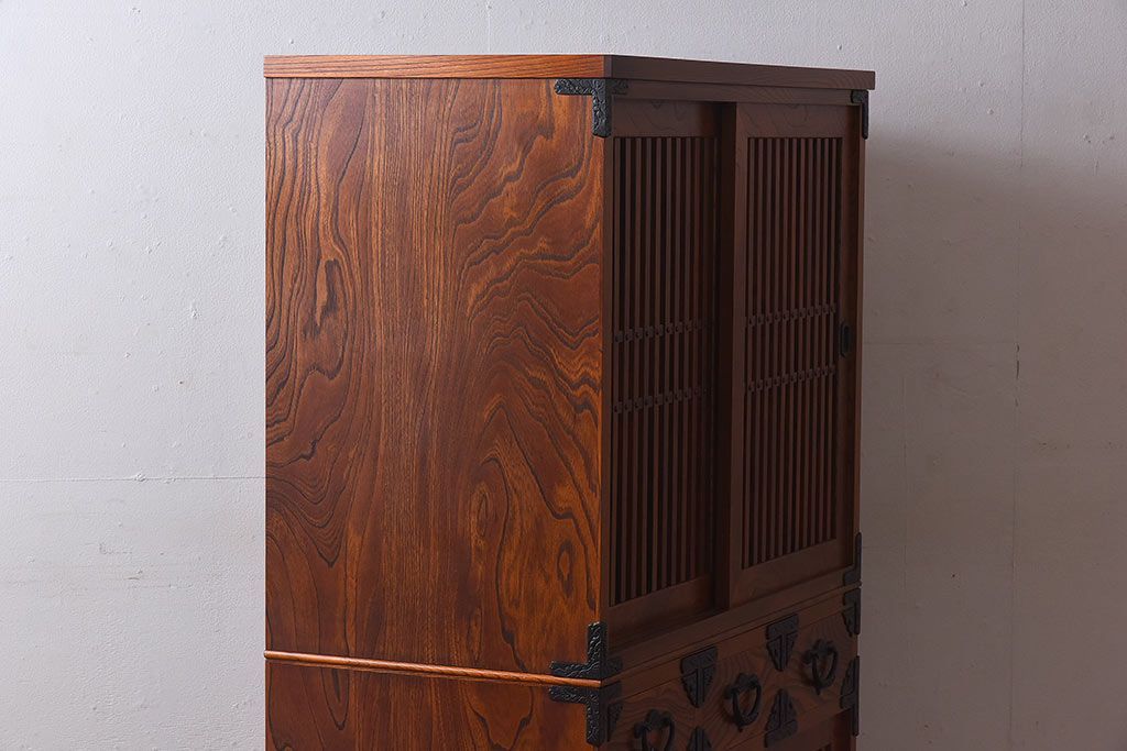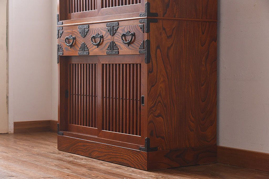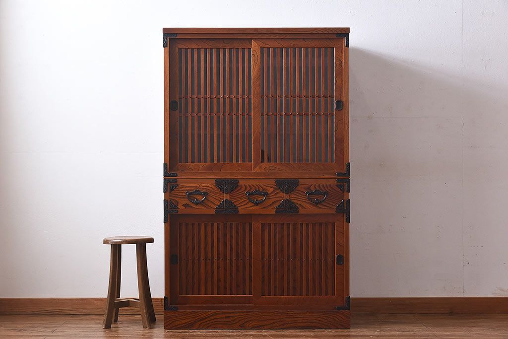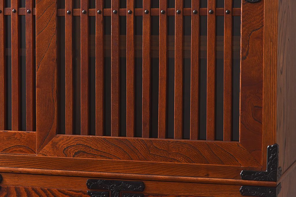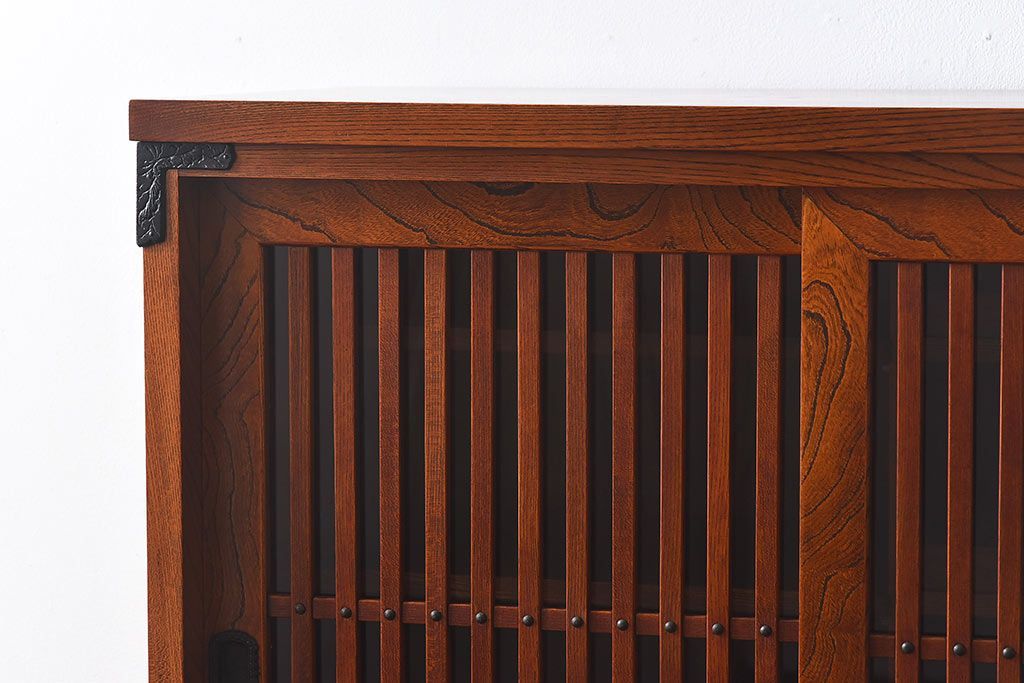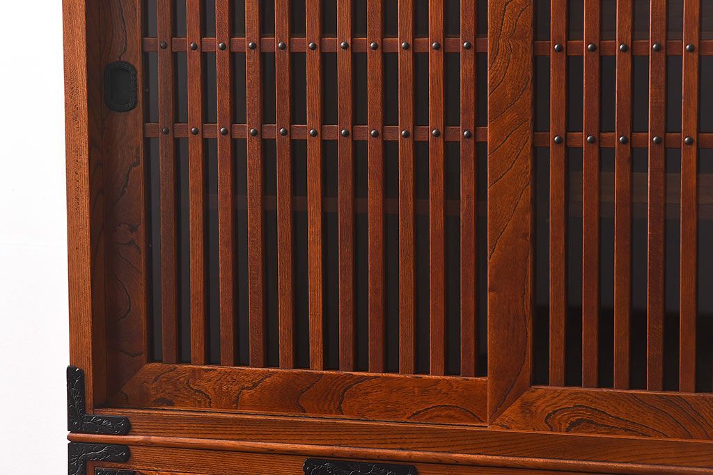 中古 岩谷堂箪笥 No.96 雪国 格子戸が魅力的な茶棚(食器棚、収納棚)(定価約62万円)