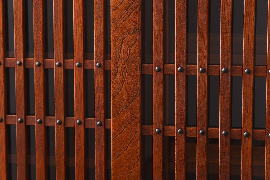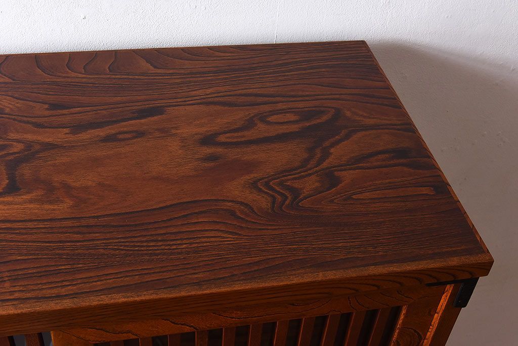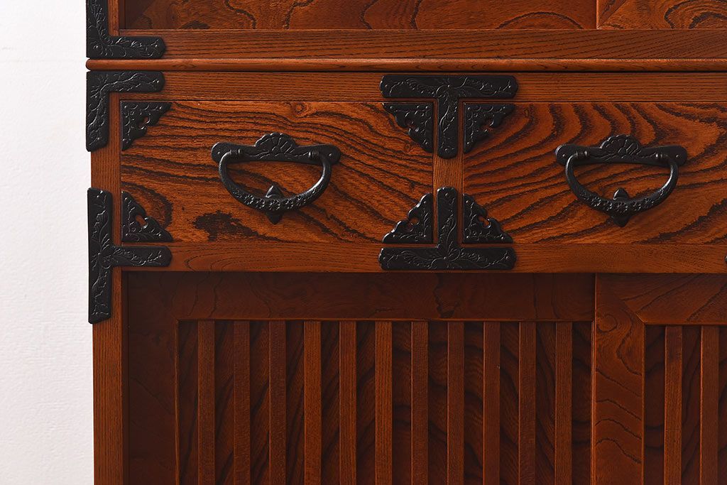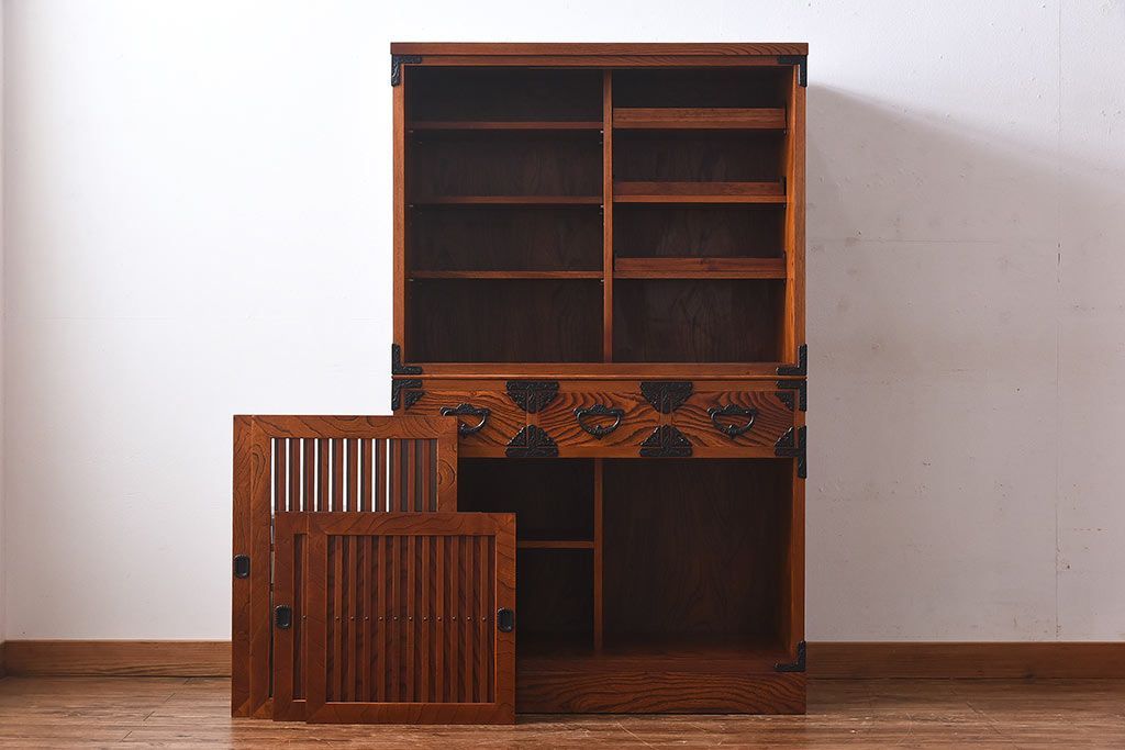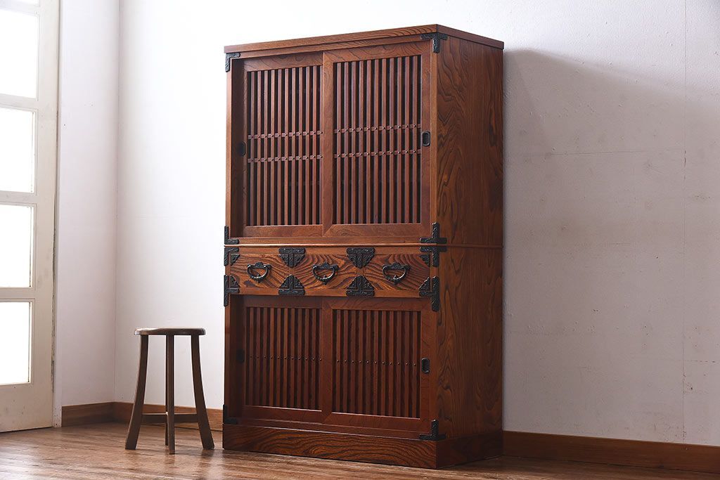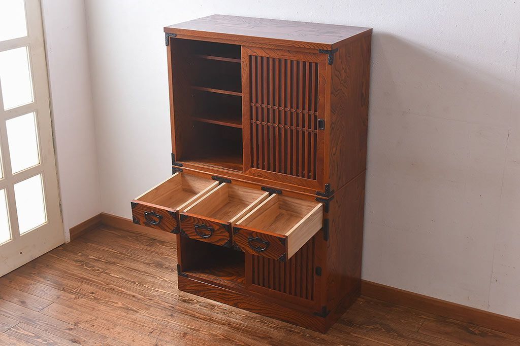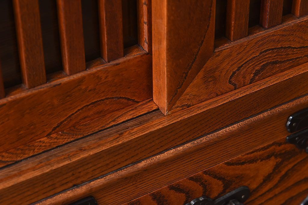 中古 岩谷堂箪笥 No.96 雪国 格子戸が魅力的な茶棚(食器棚、収納棚)(定価約62万円)