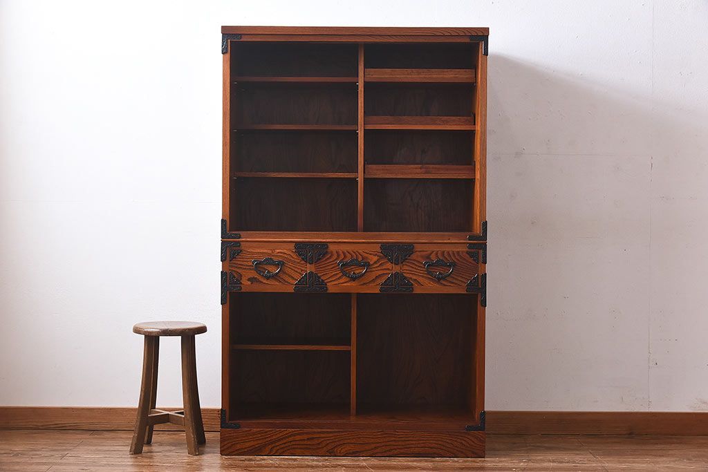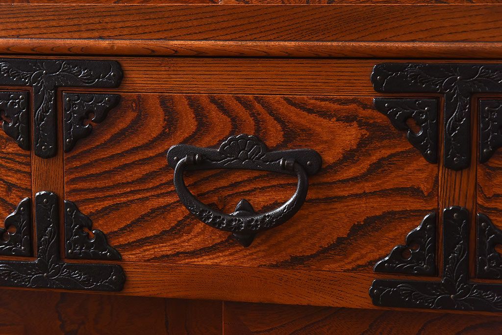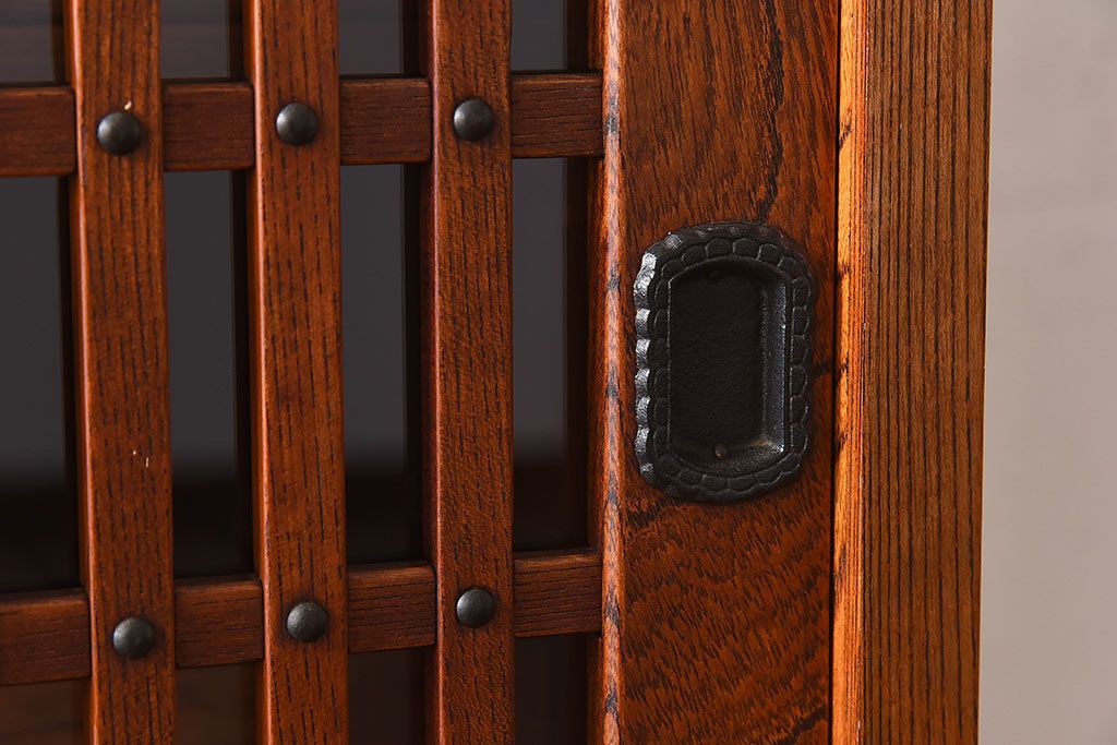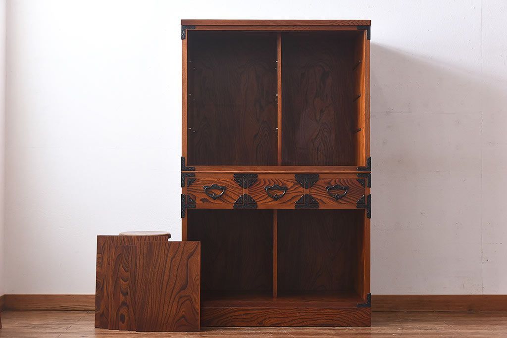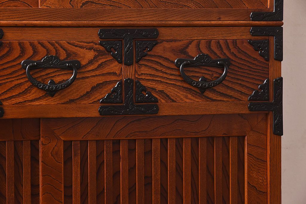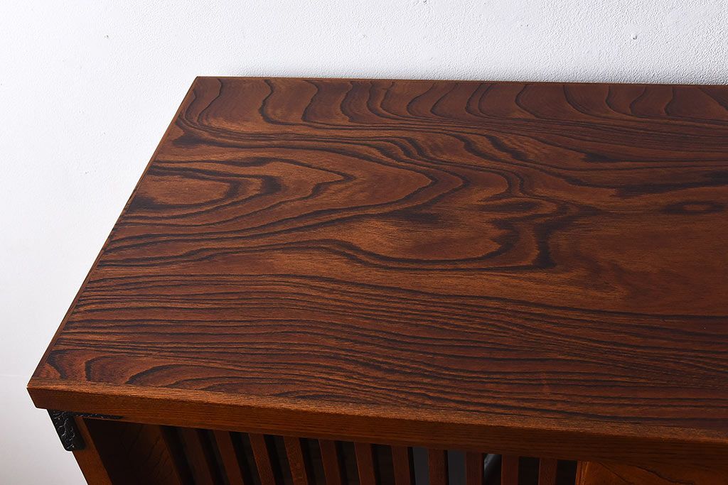中古 岩谷堂箪笥 No.96 雪国 格子戸が魅力的な茶棚(食器棚、収納棚)(定価約62万円)