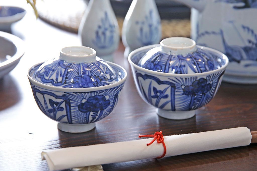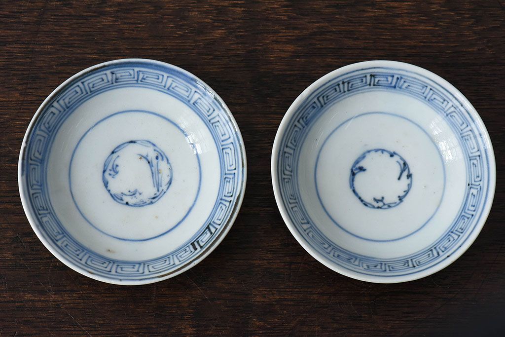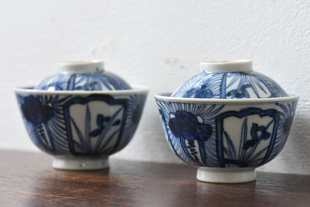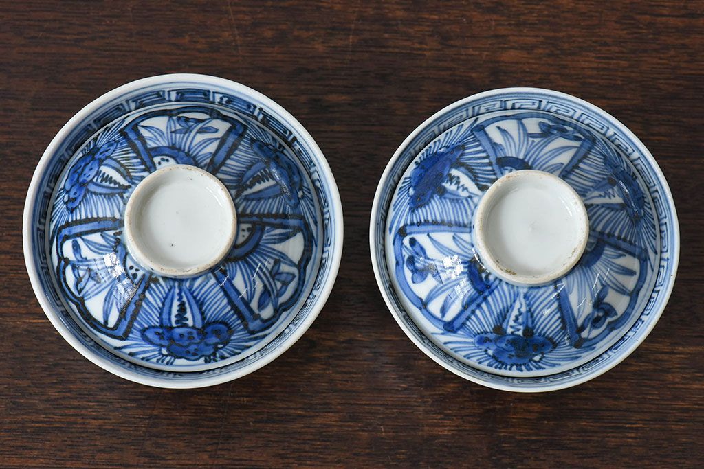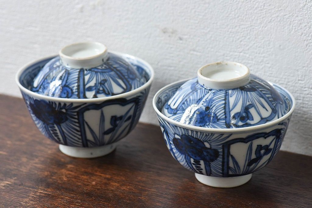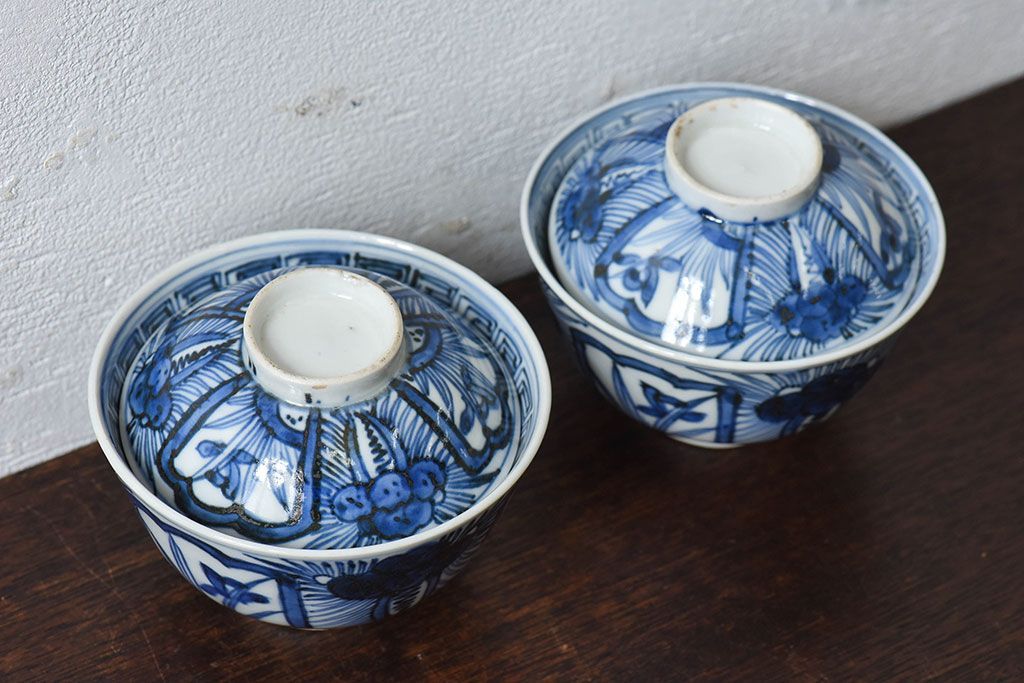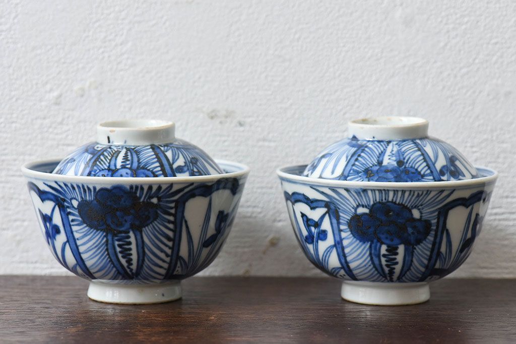 江戸時代後期 伊万里焼 染付 蓋茶碗2客セット(1)