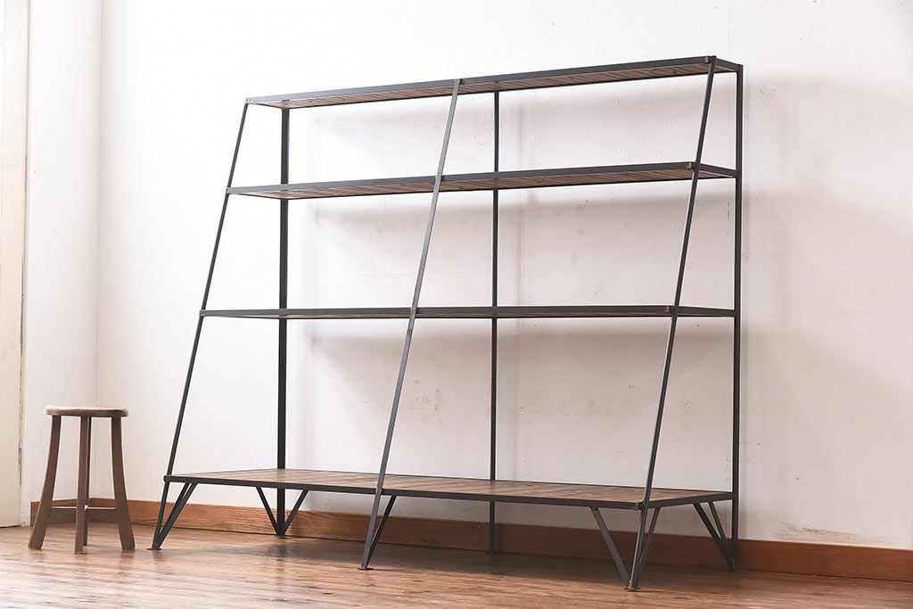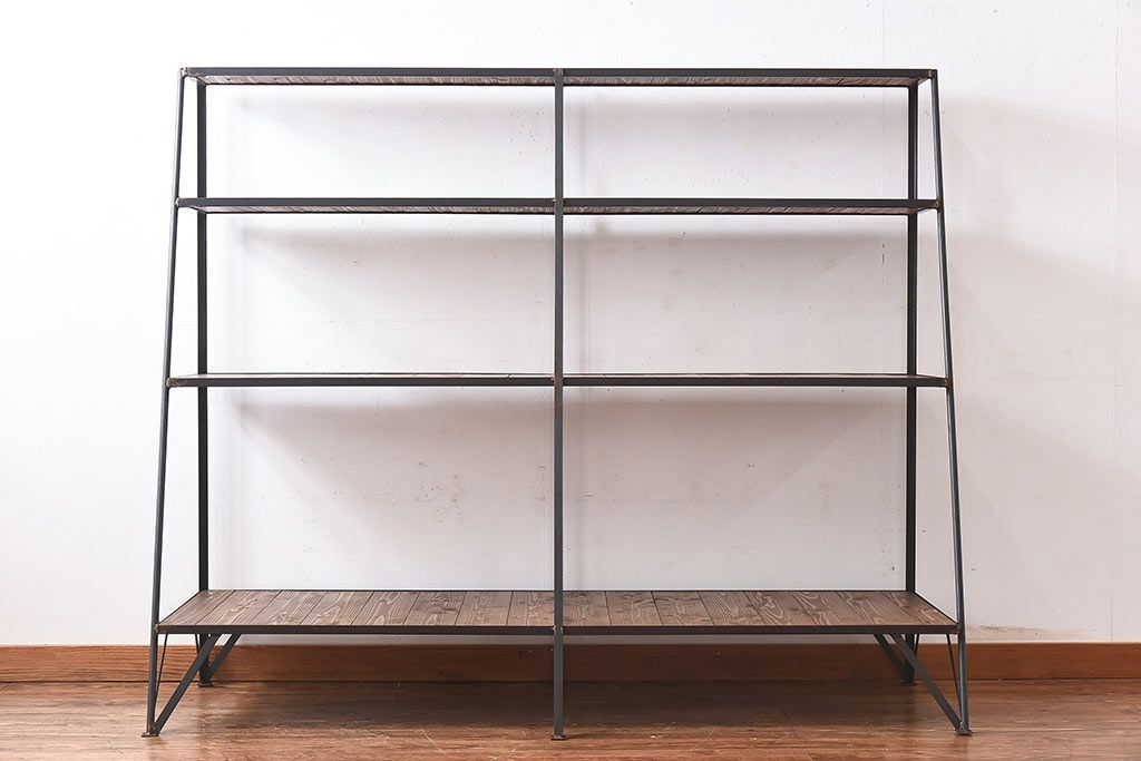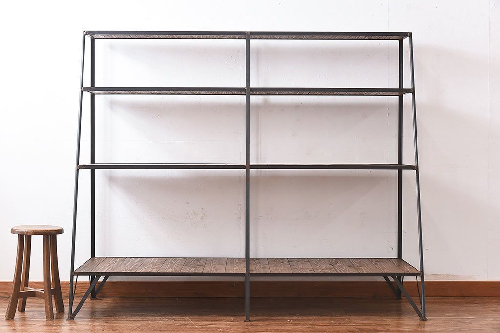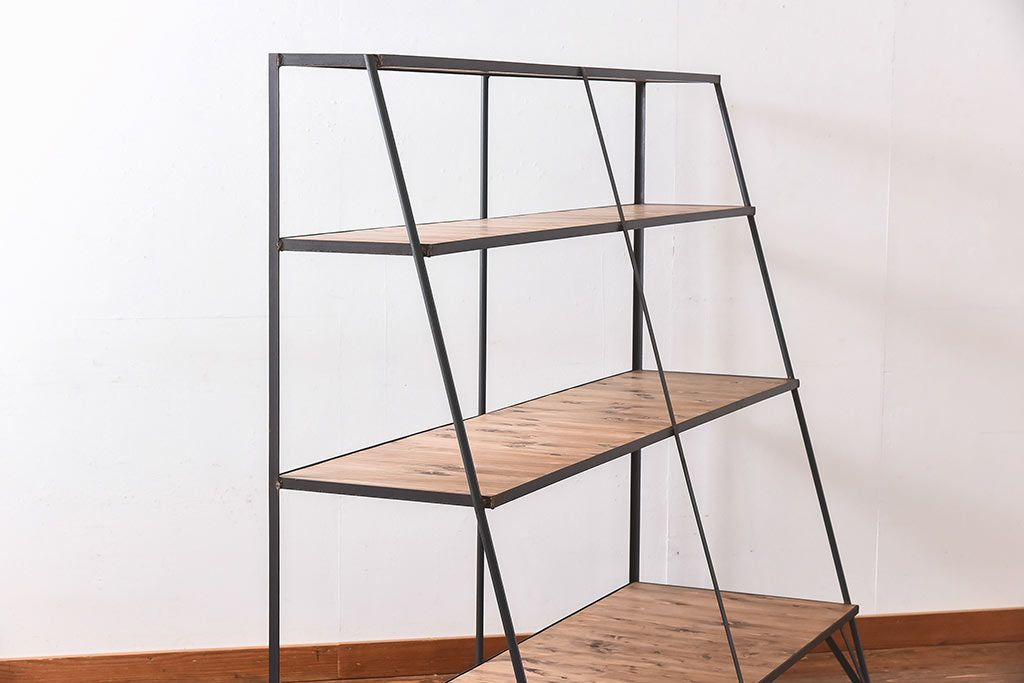 ラフジュ工房> 店舗什器 > ラフジュオリジナル シンプルな台形アイアンラック(飾り棚、陳列棚)(2)