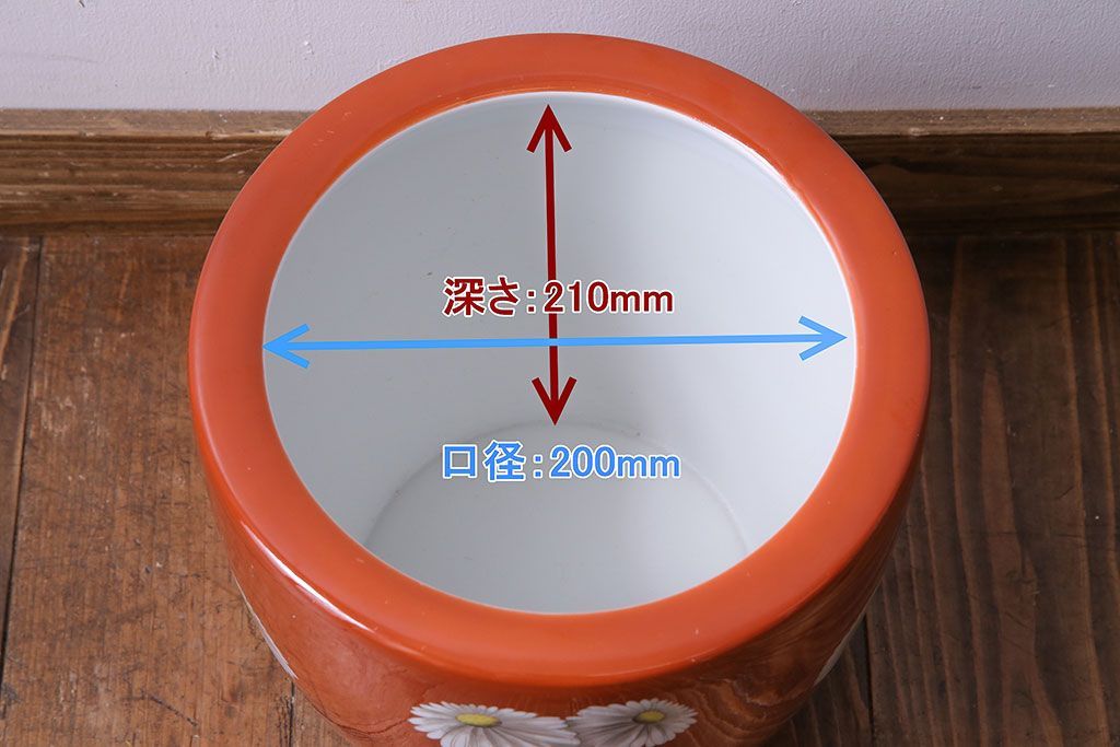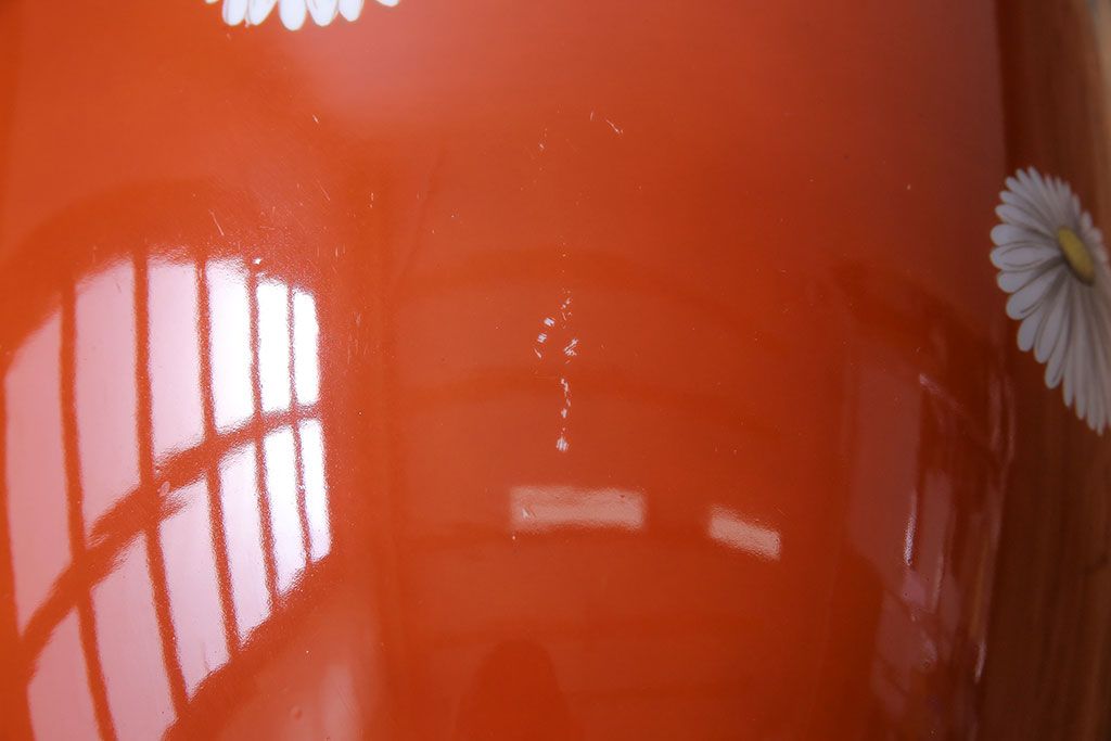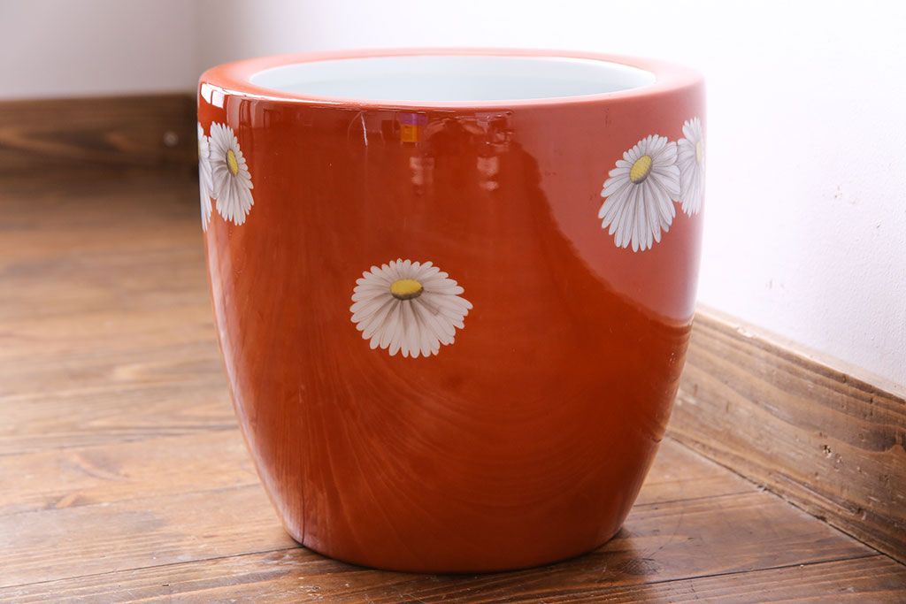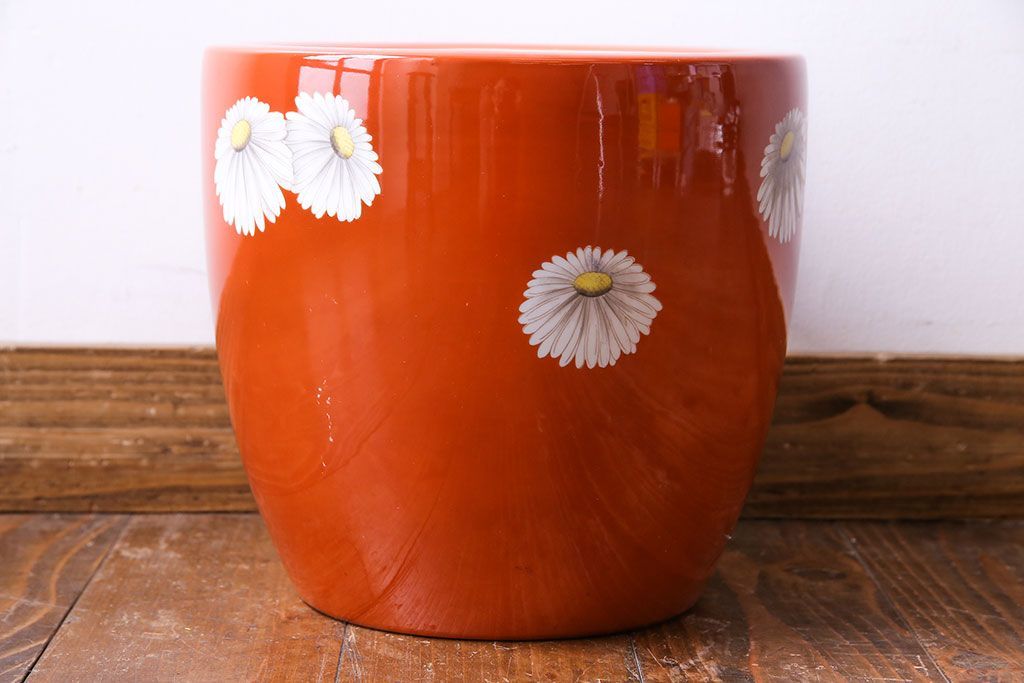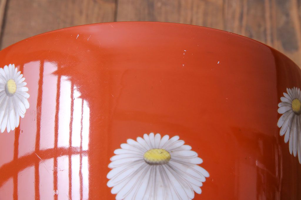 火鉢> 瀬戸火鉢 > アンティーク雑貨 オールドノリタケ(日陶) 朱色地白菊文様 レトロな火鉢(手あぶり、鉢カバー)(3)