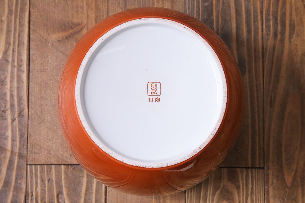 アンティーク雑貨 オールドノリタケ(日陶) 朱色地白菊文様 レトロな火鉢(手あぶり、鉢カバー)(3)