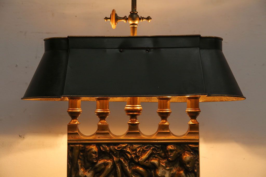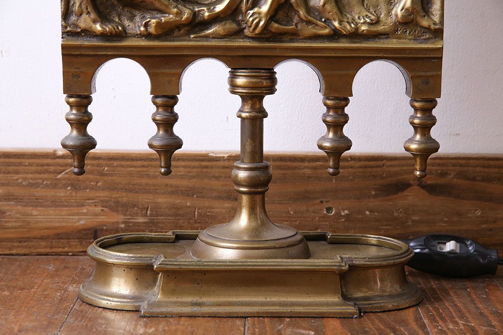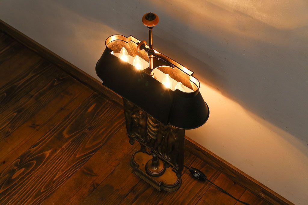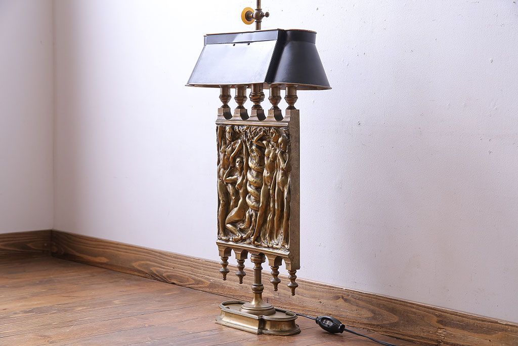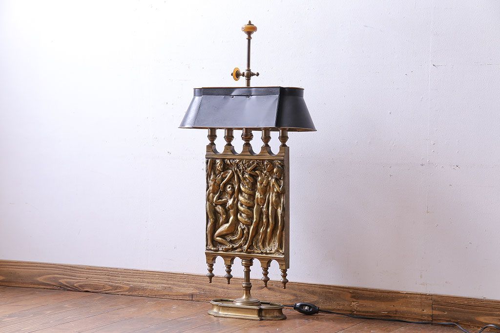 ビンテージ 西洋 真鍮製 彫刻が印象的なスタンドライト(照明)
