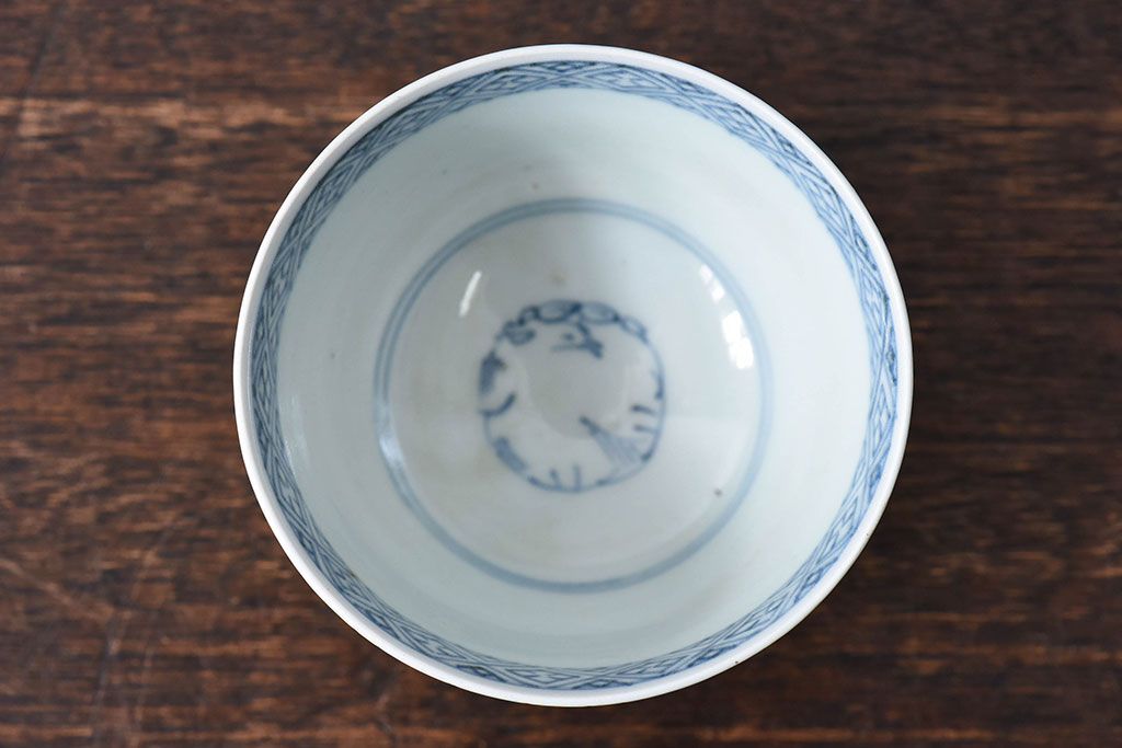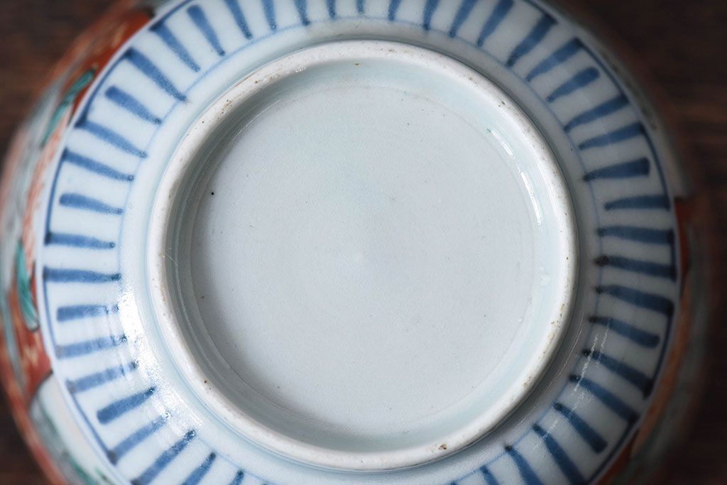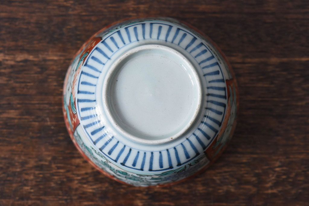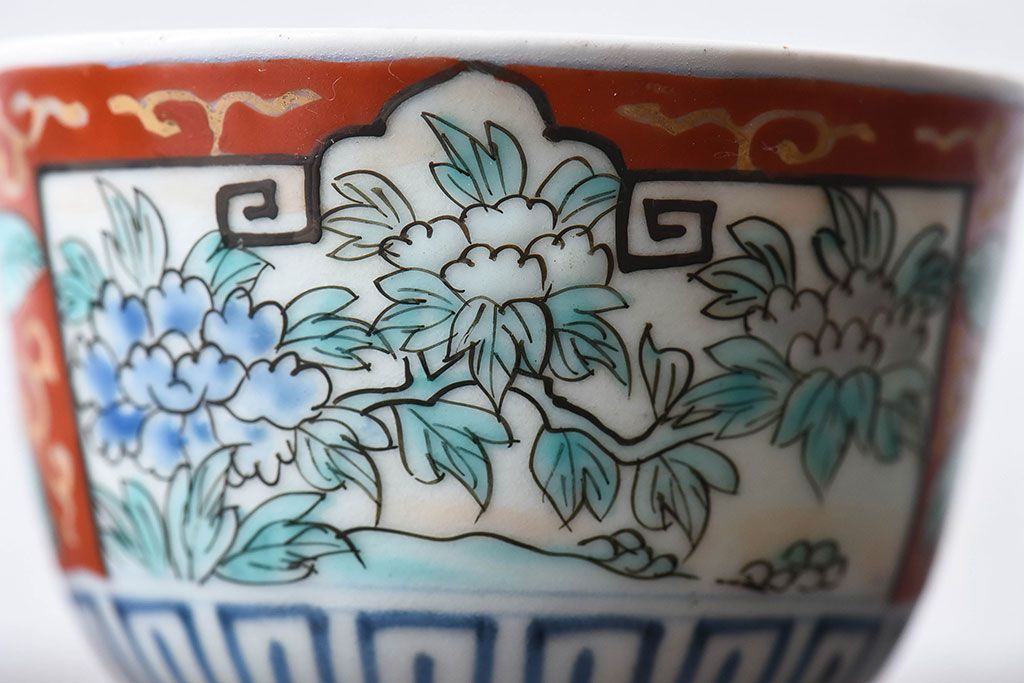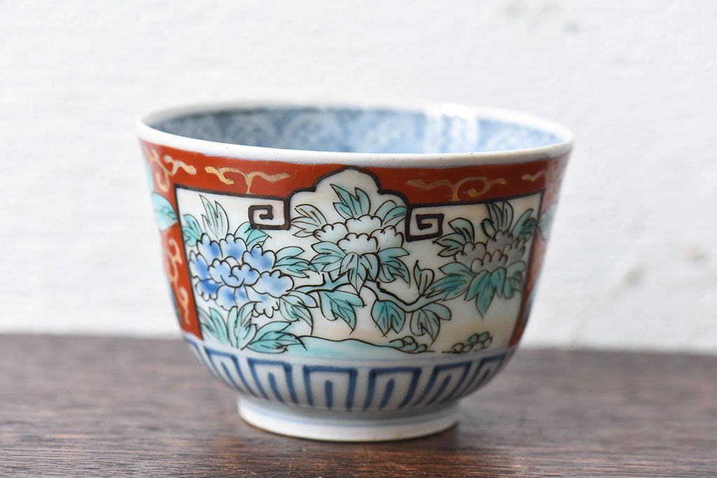 古民具・骨董 江戸期 華やかな古伊万里色絵染付 蕎麦猪口(湯呑、向付)(1)