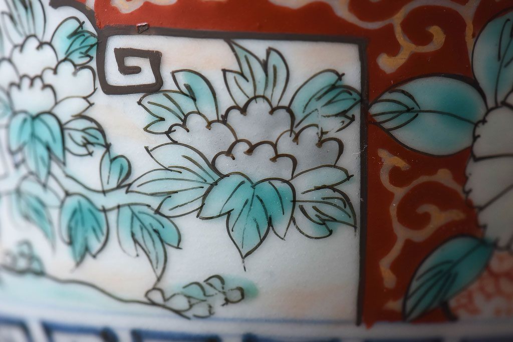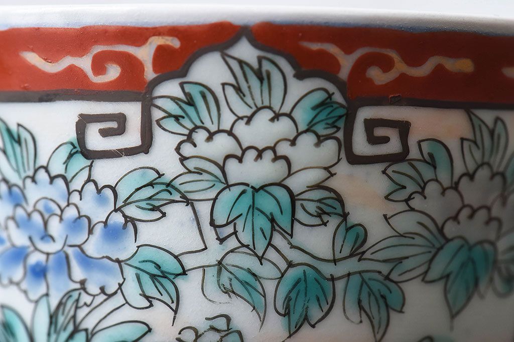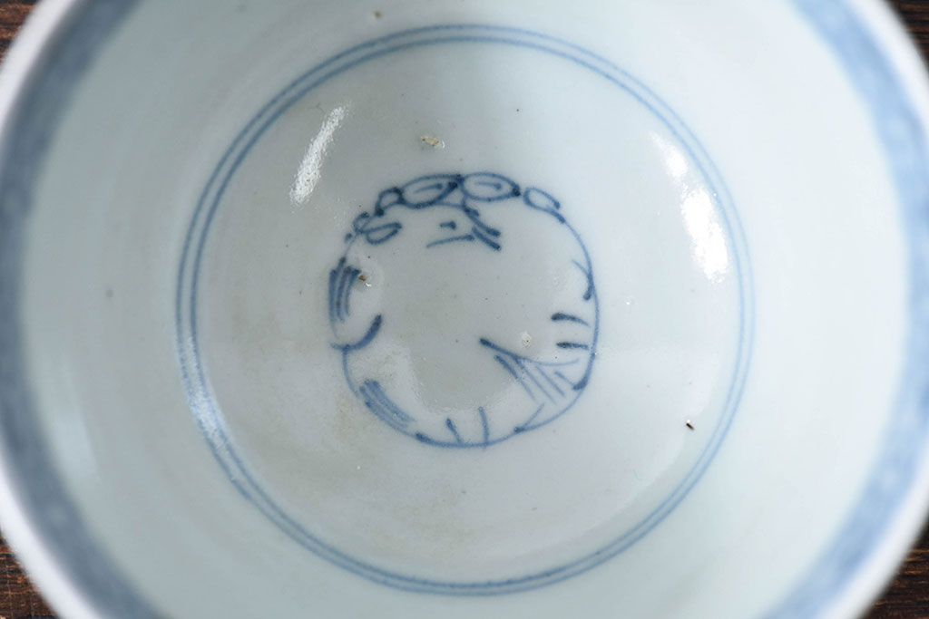 ラフジュ工房> 骨董・美術品 > 古民具・骨董 江戸期 華やかな古伊万里色絵染付 蕎麦猪口(湯呑、向付)(1)