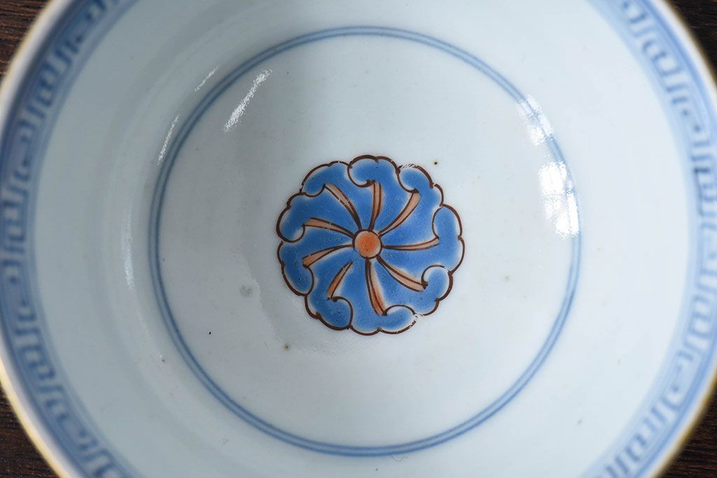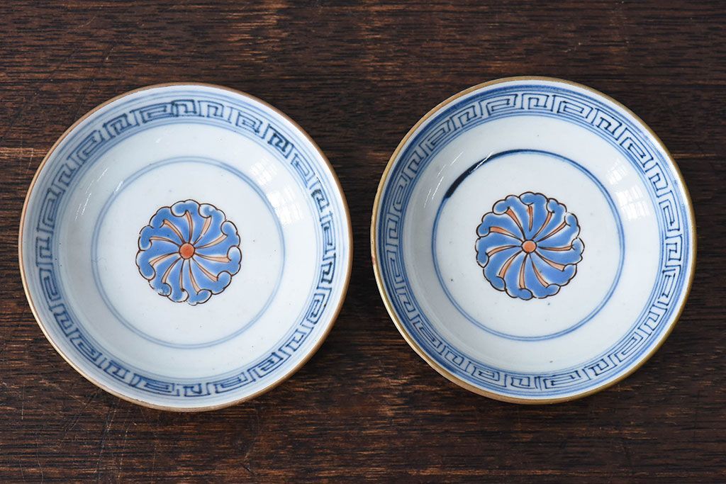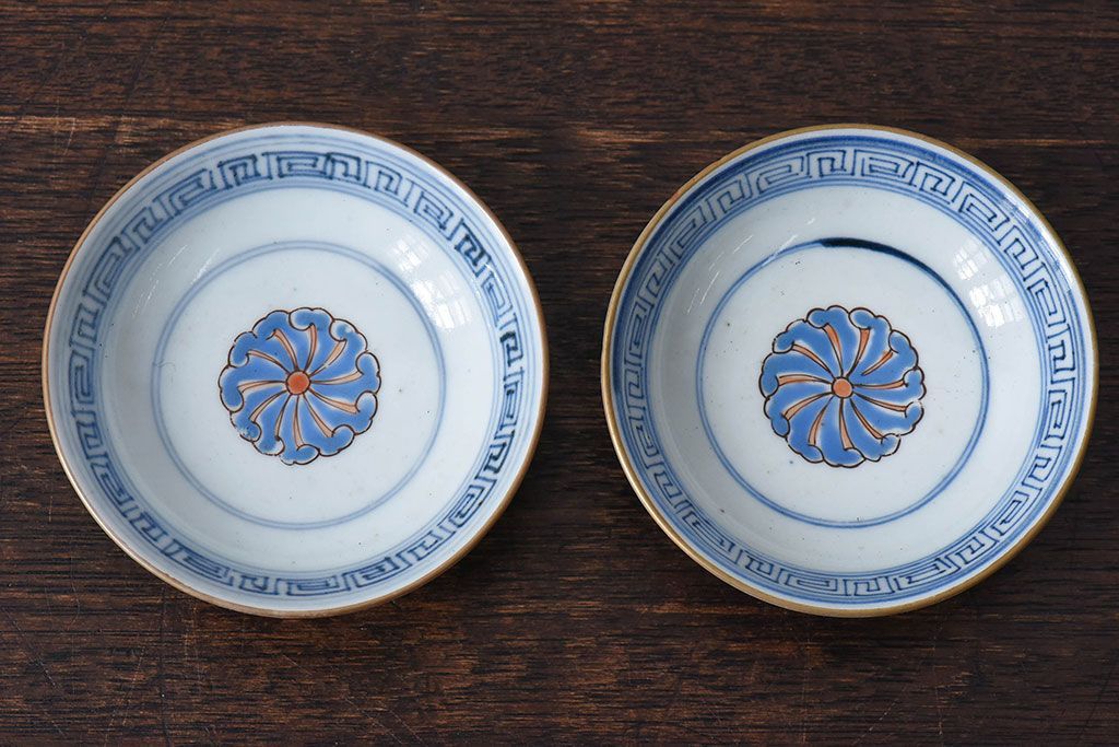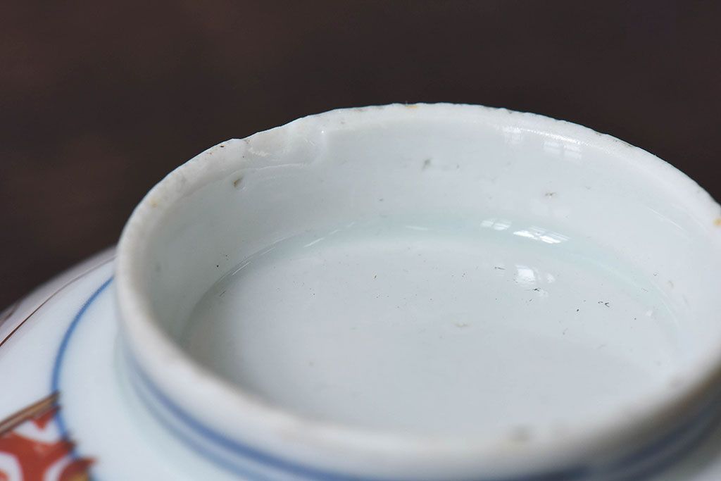 ラフジュ工房> 骨董・美術品 > 古民具・骨董 江戸期 華やかな古伊万里色絵染付 蓋つき茶碗(2客セット)