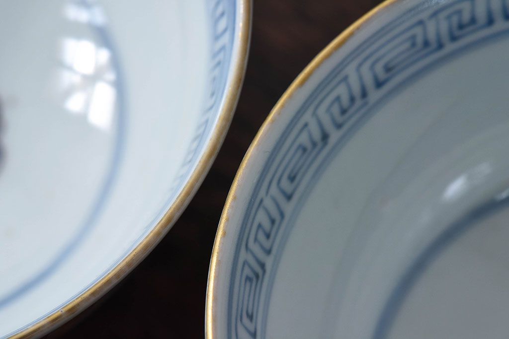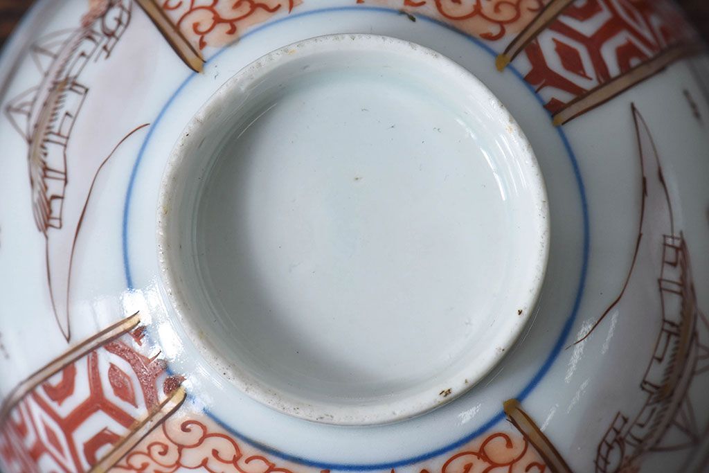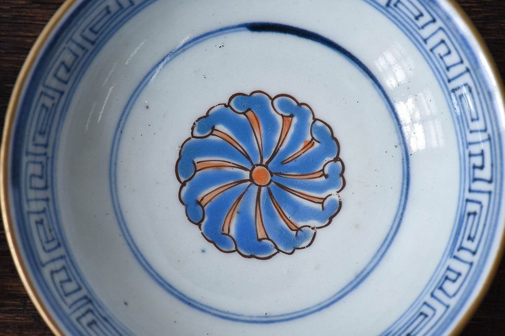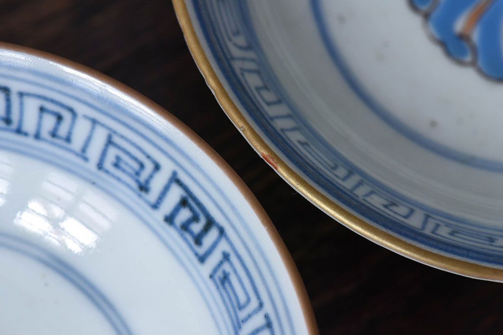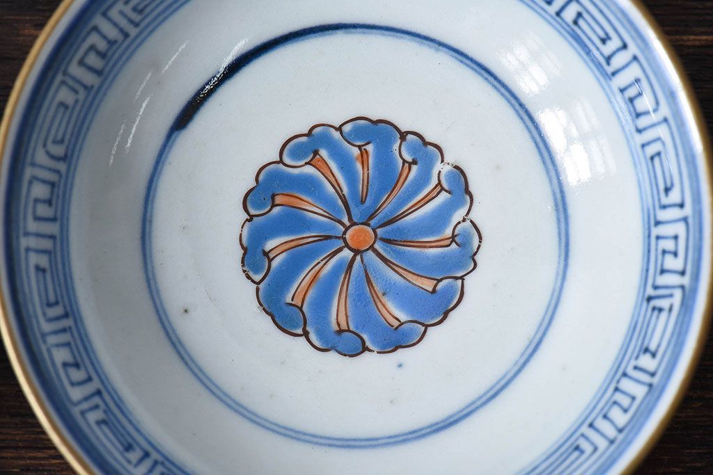 ラフジュ工房> 骨董・美術品 > 古民具・骨董 江戸期 華やかな古伊万里色絵染付 蓋つき茶碗(2客セット)