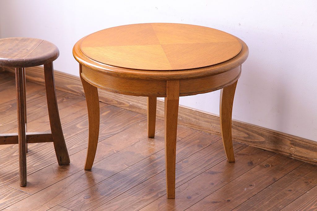 ラフジュ工房> テーブル> サイドテーブル > アンティーク雑貨 中古 天童木工 ナチュラルな木の風合いのサイドテーブル(ラウンドテーブル、コーヒーテーブル、花台)(3)