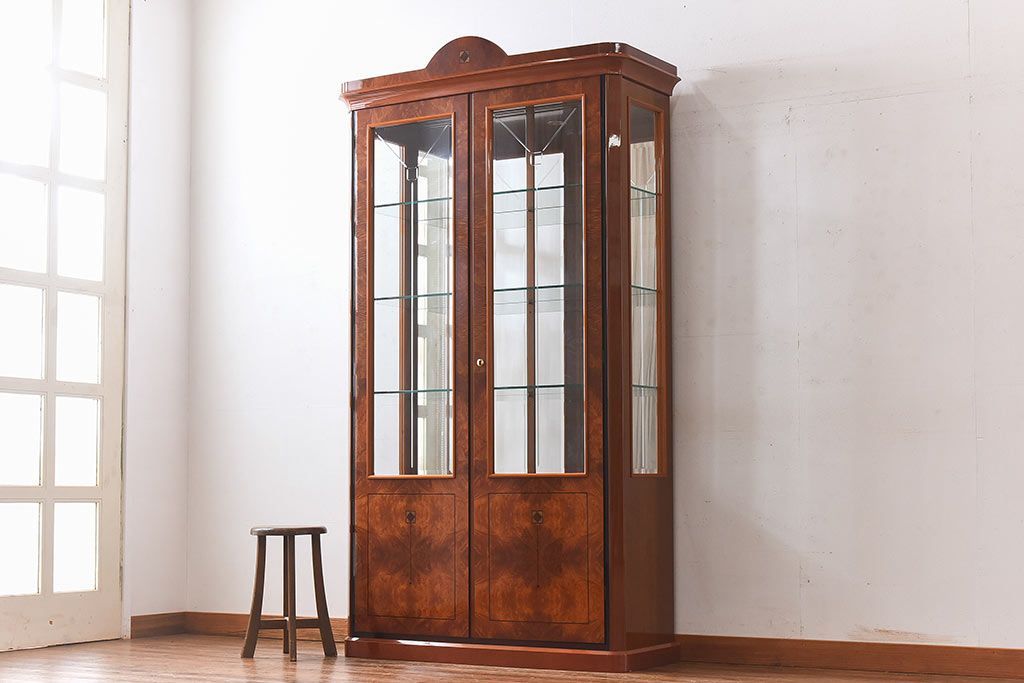 ラフジュ工房> 店舗什器 > アンティーク家具 イタリア製 両開き扉 高級感漂うキュリオケース(ガラスキャビネット、飾り棚)