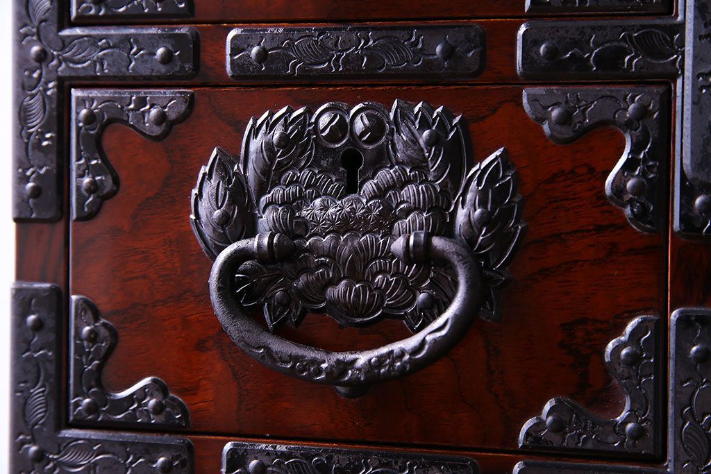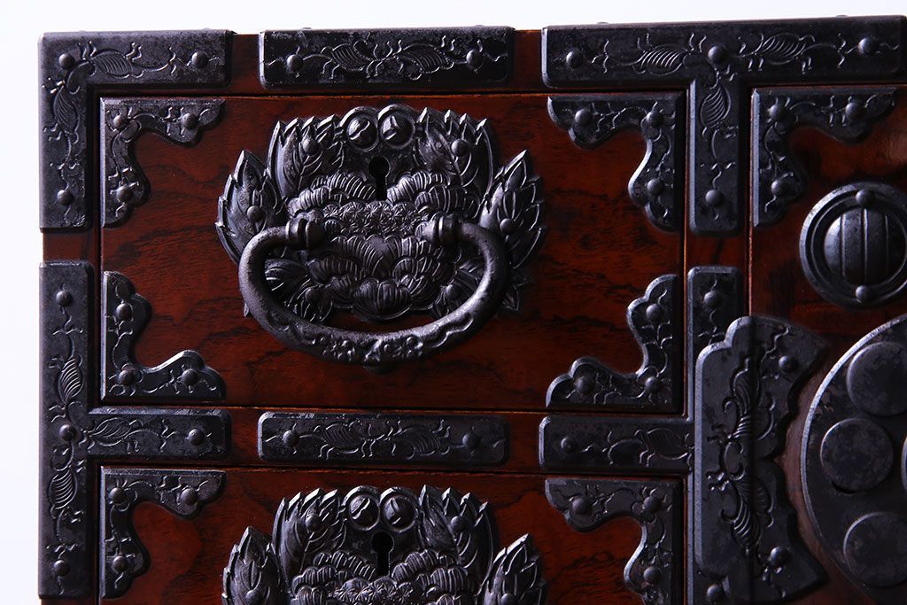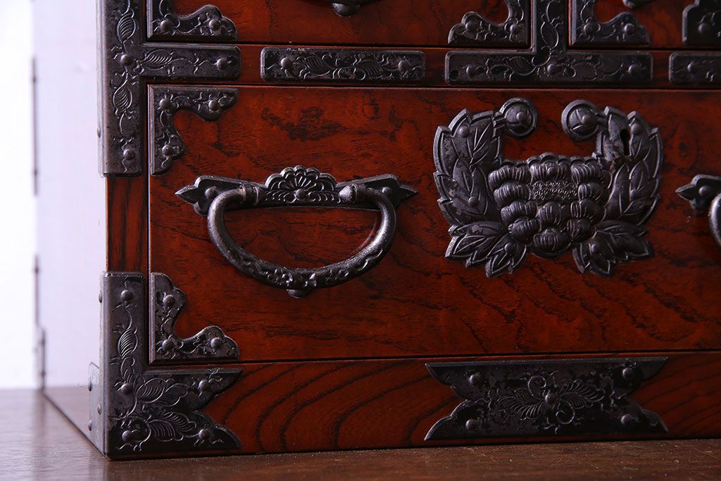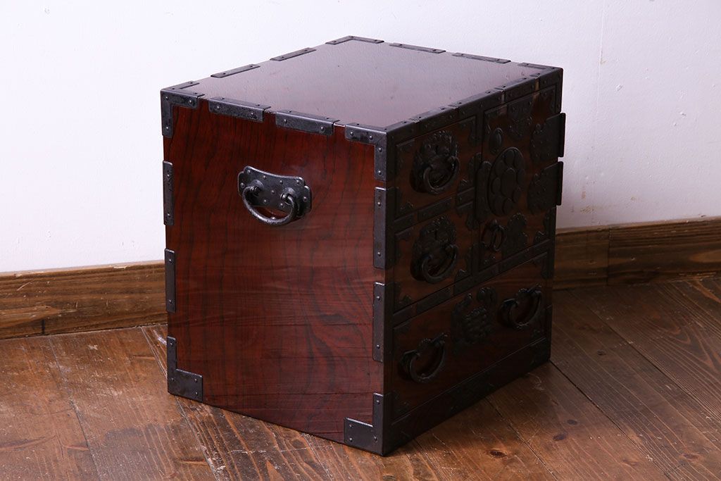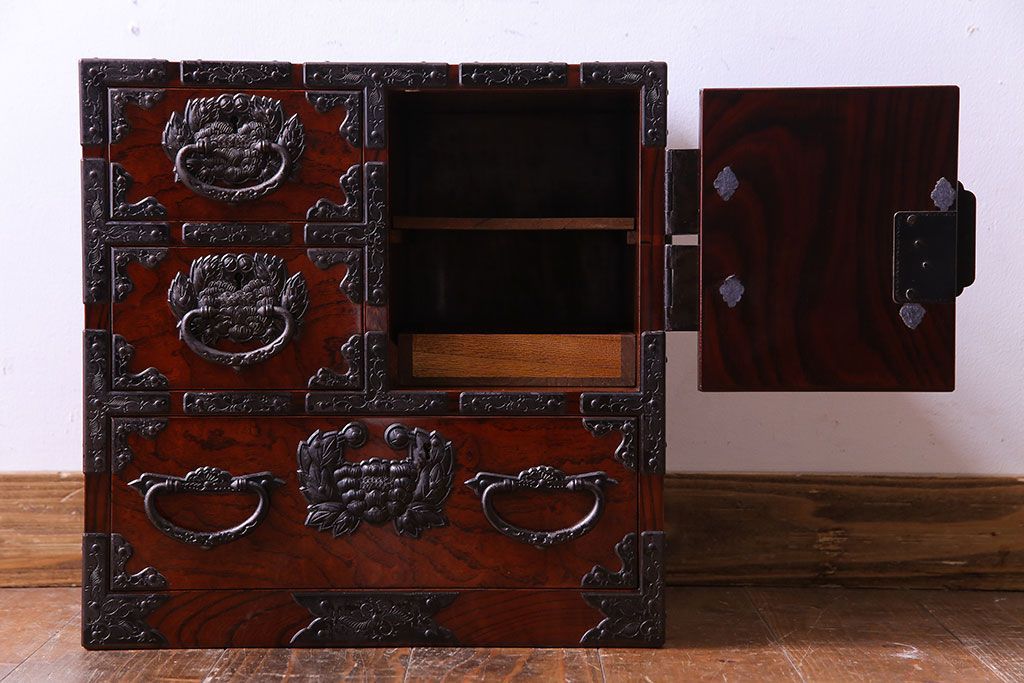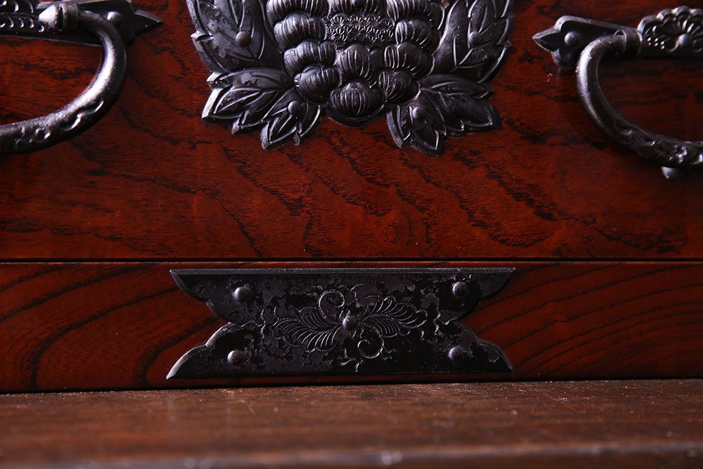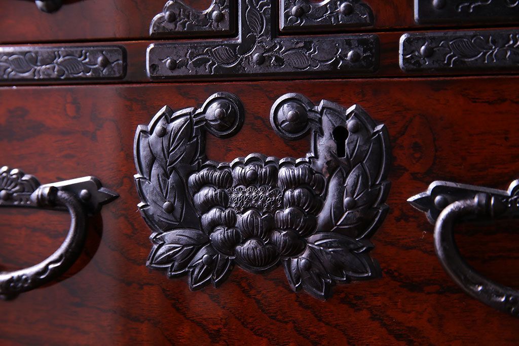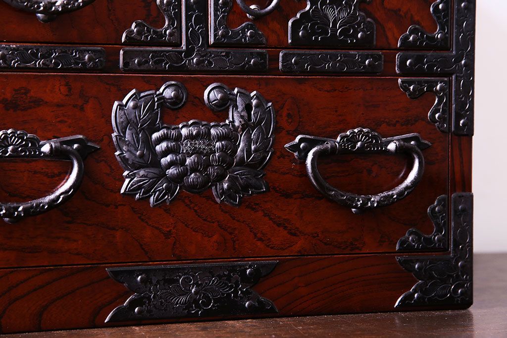 中古 熊野洞 木地蝋塗が美しい伊達家紋づくし小箪笥(仙台箪笥)(定価約30万円)