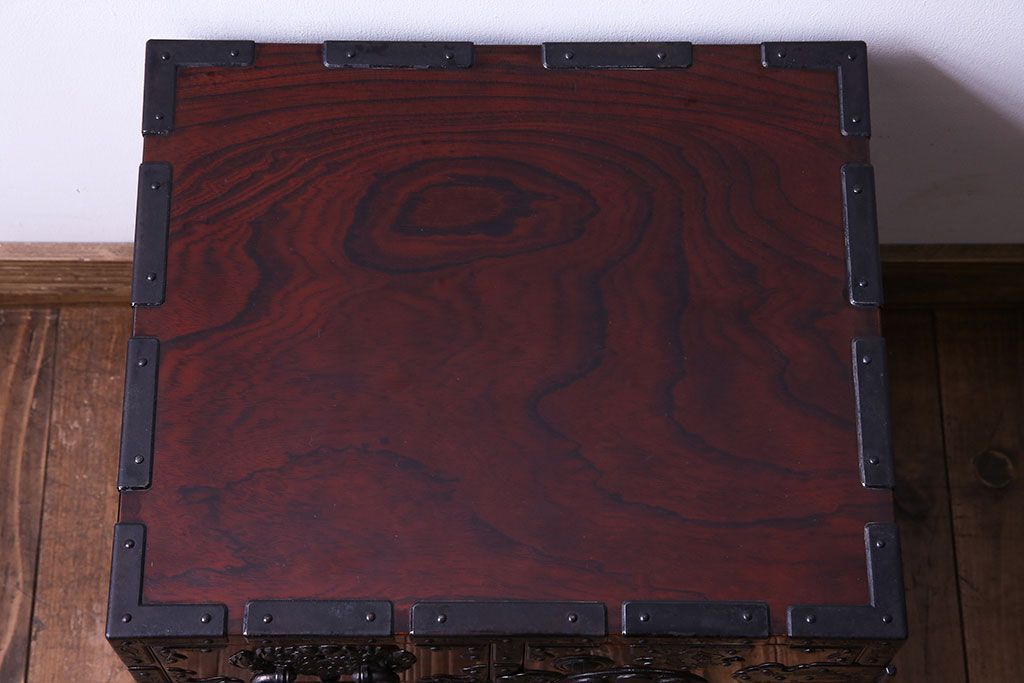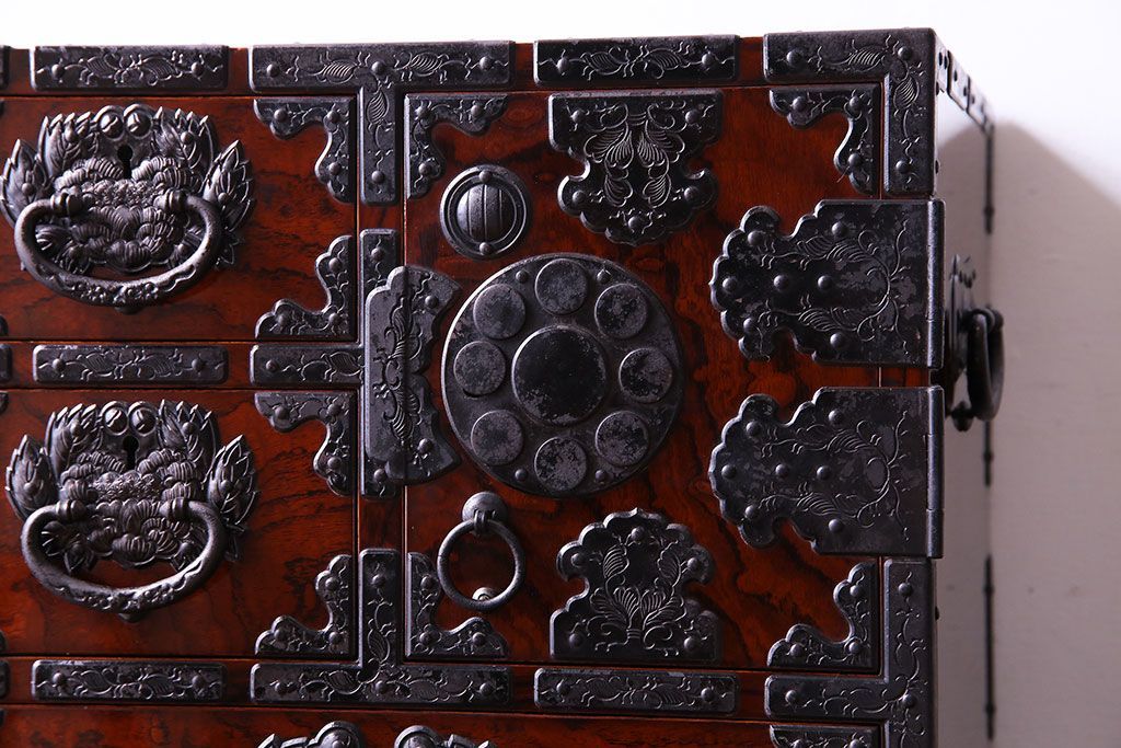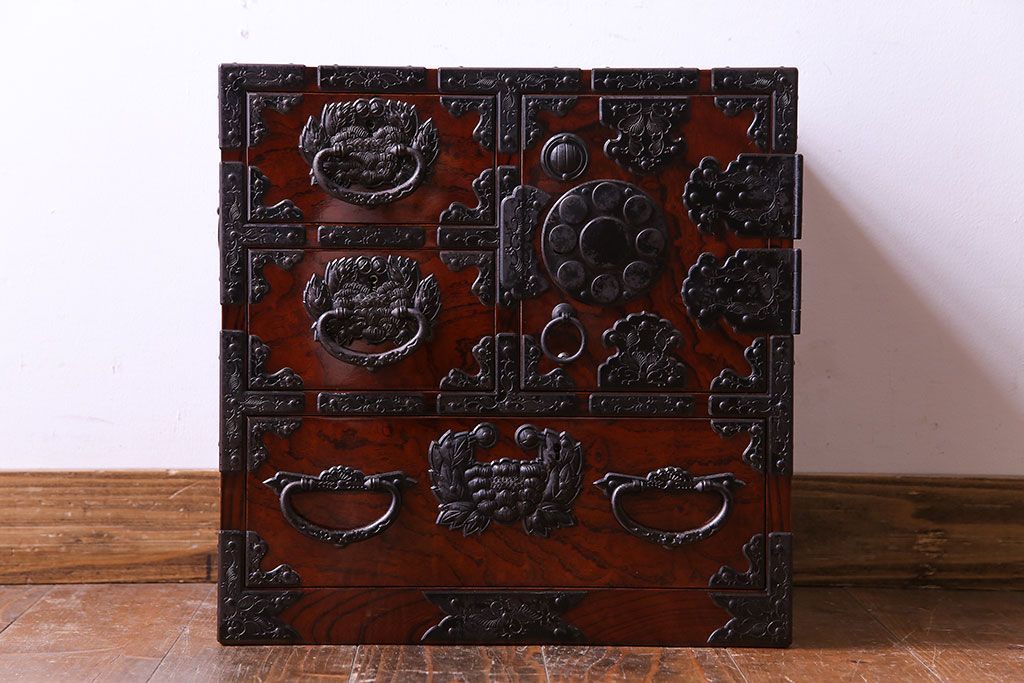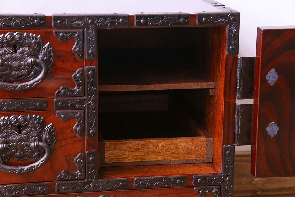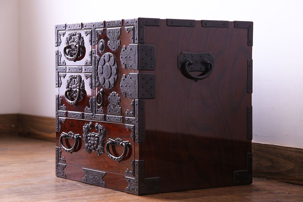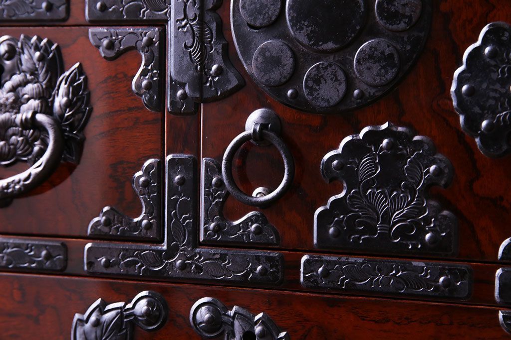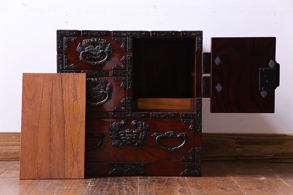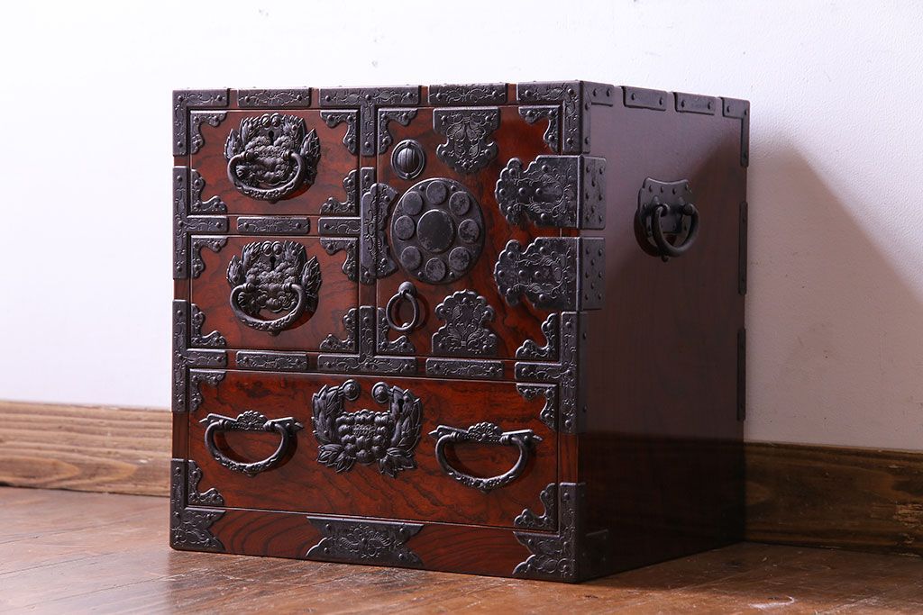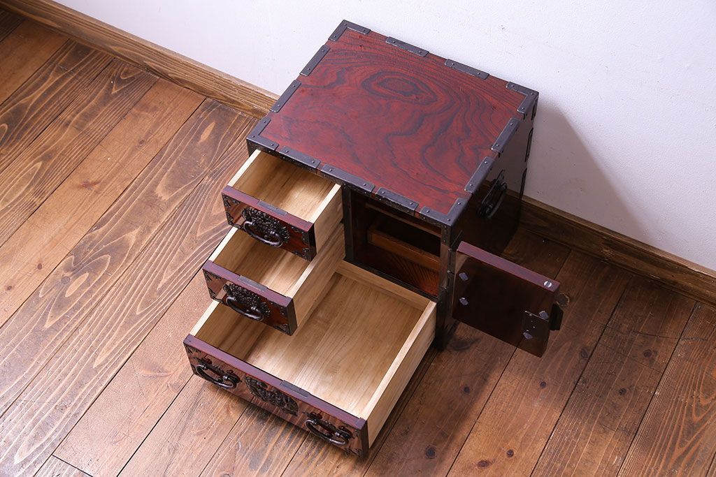 中古 熊野洞 木地蝋塗が美しい伊達家紋づくし小箪笥(仙台箪笥)(定価約30万円)
