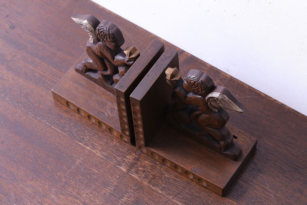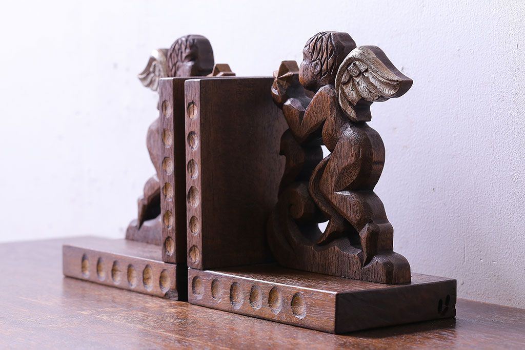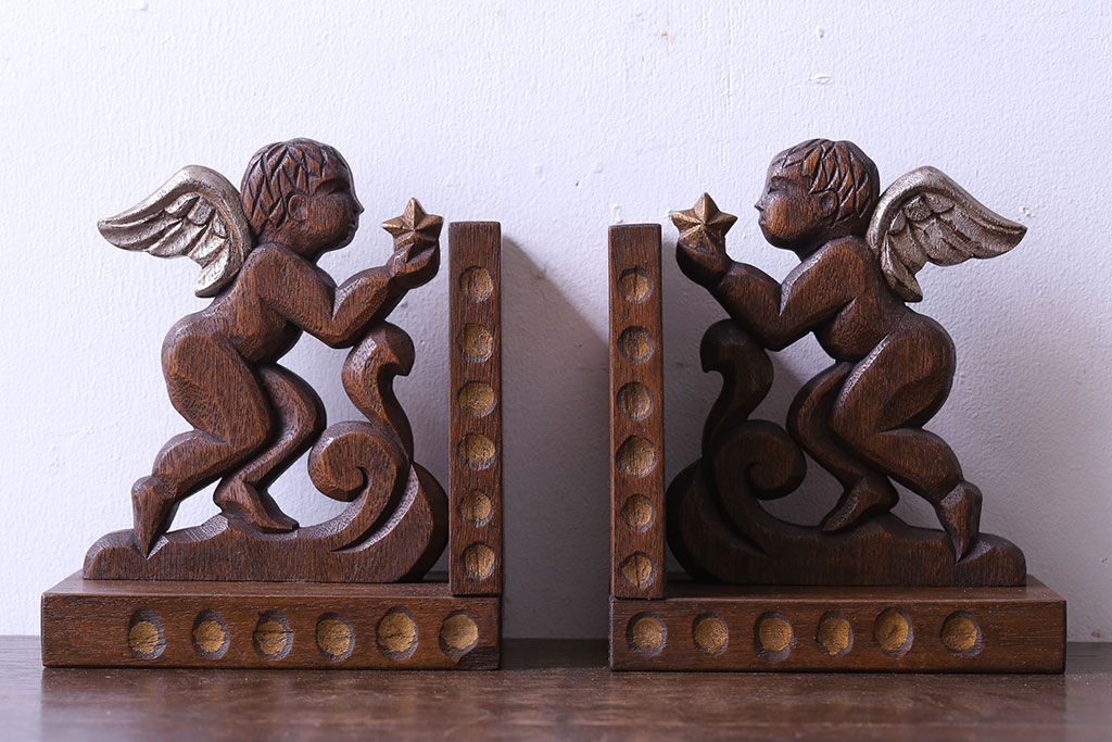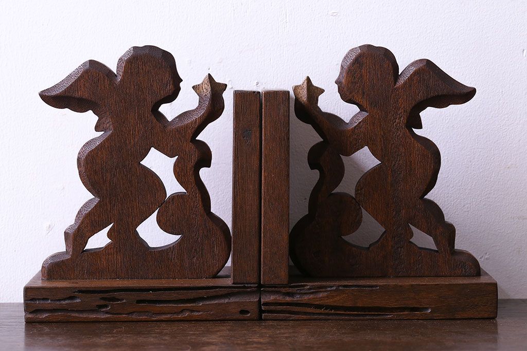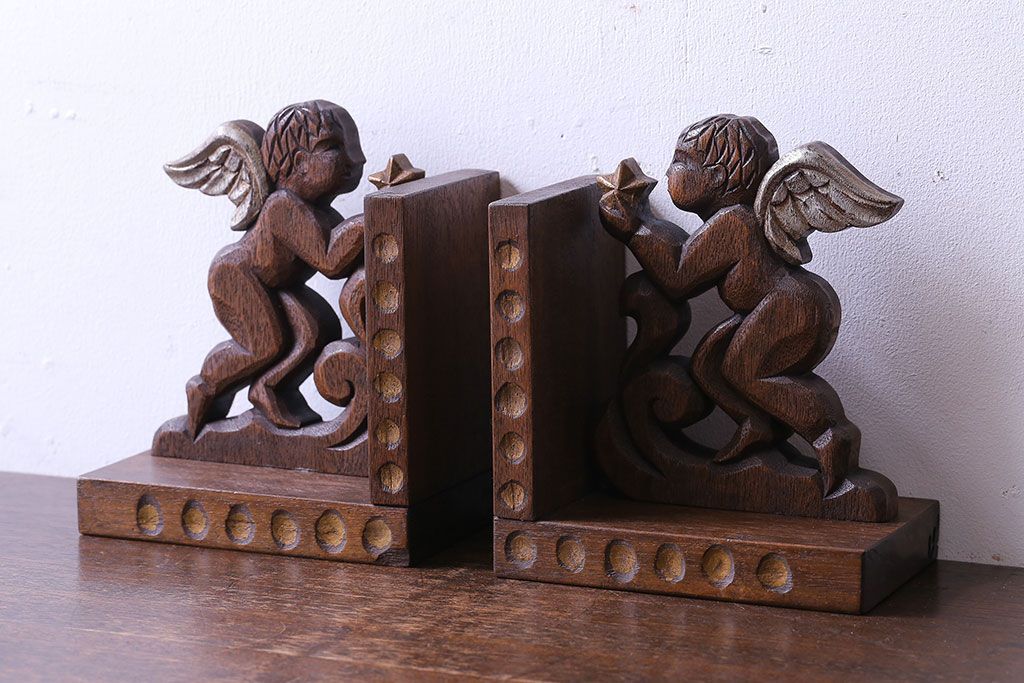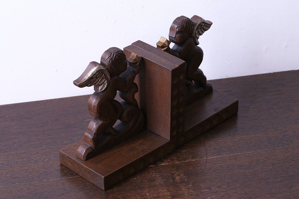 アンティーク雑貨 イギリスビンテージ 木製 かわいらしい天使のブックエンド(本立て)