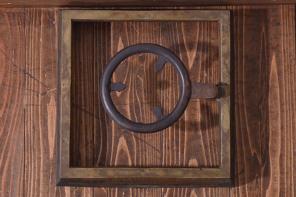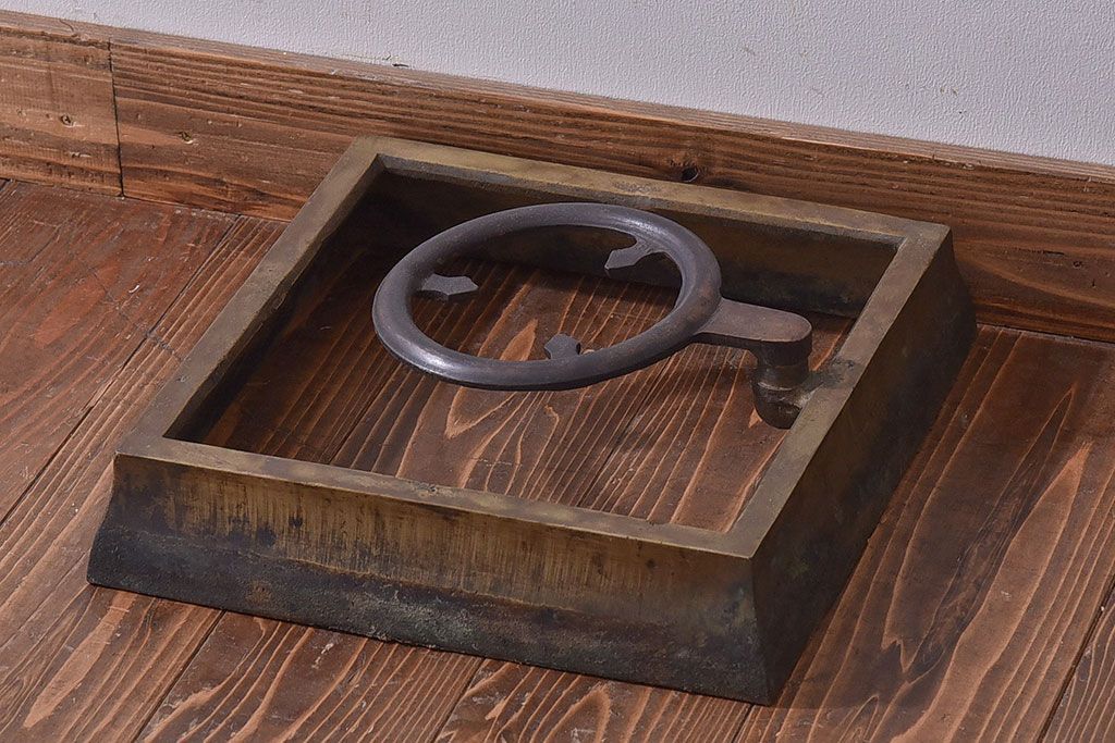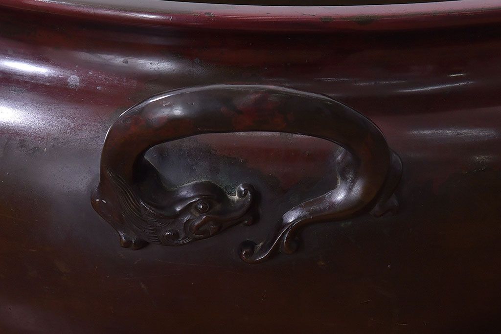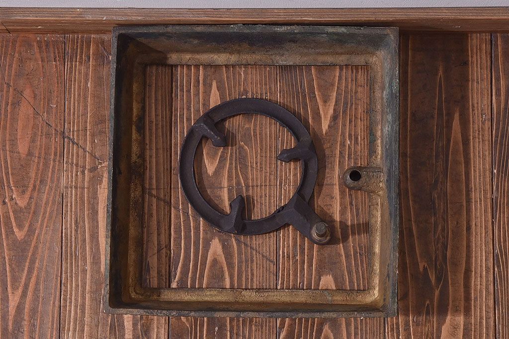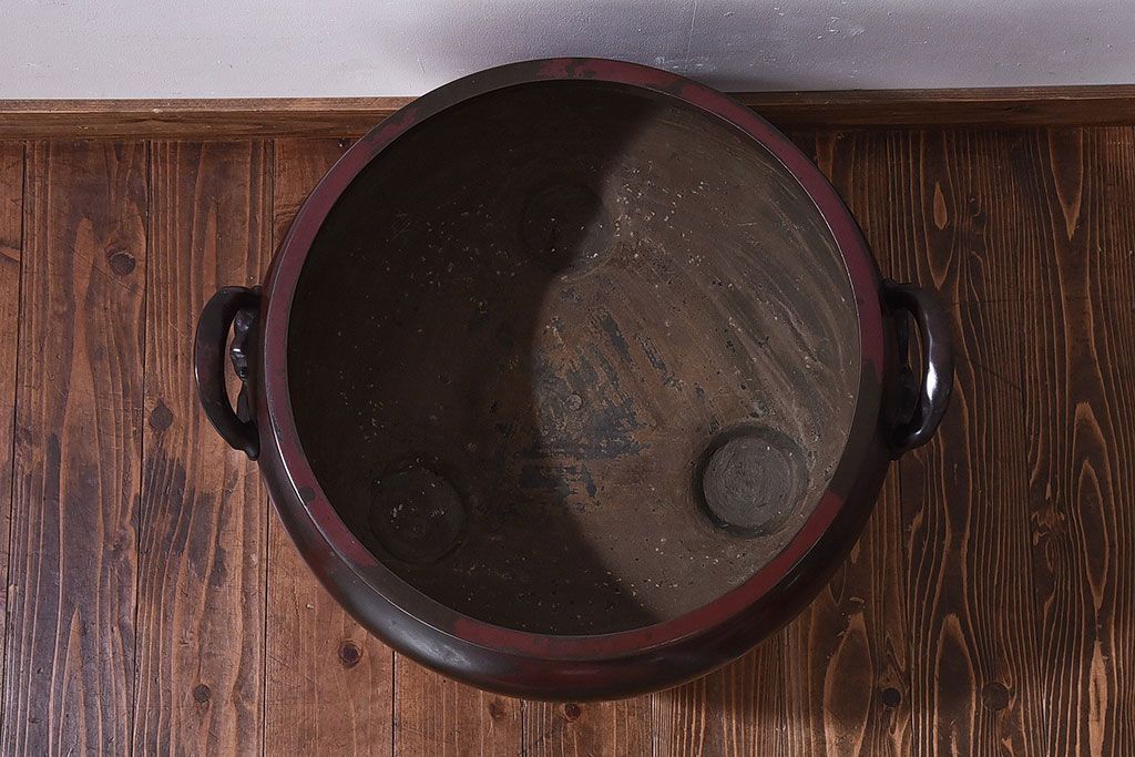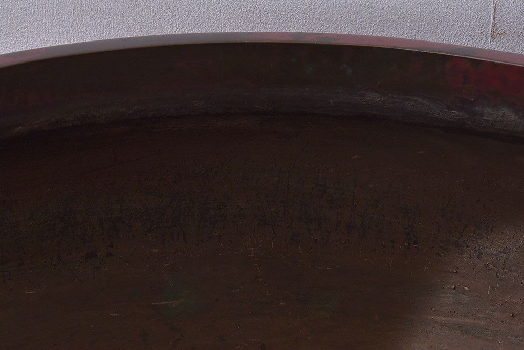 火鉢> 金属火鉢 > アンティーク雑貨 和製アンティーク 明治〜大正期 木製台座付き斑紫銅火鉢セット(五徳、火箸、灰ならし)