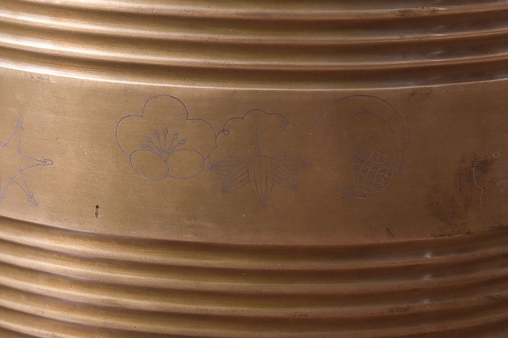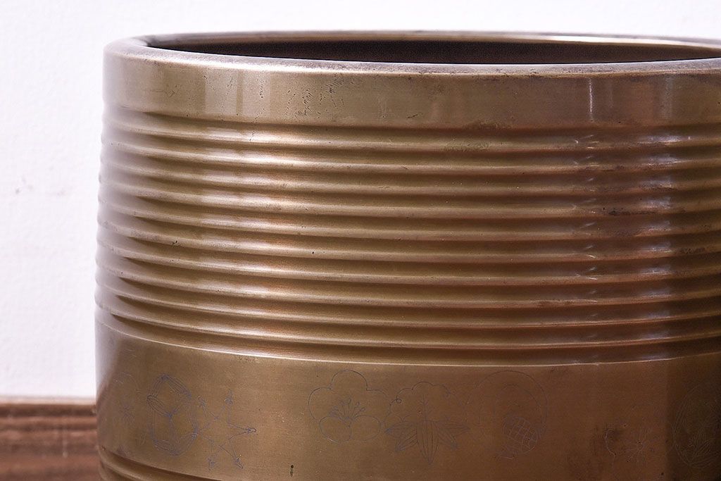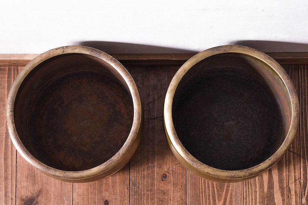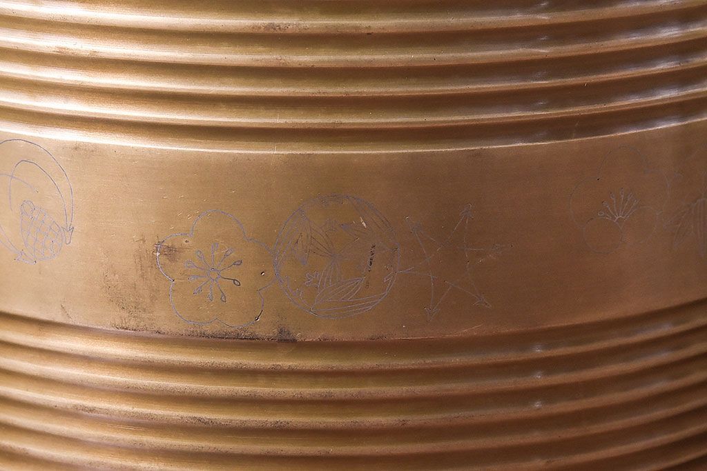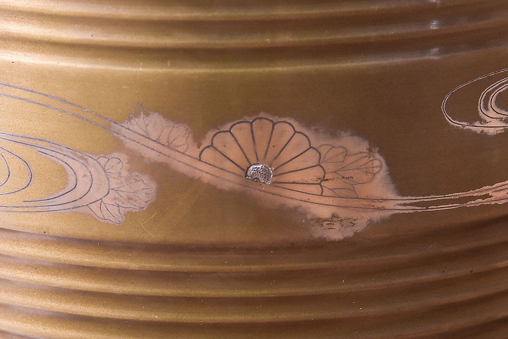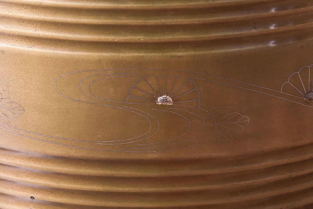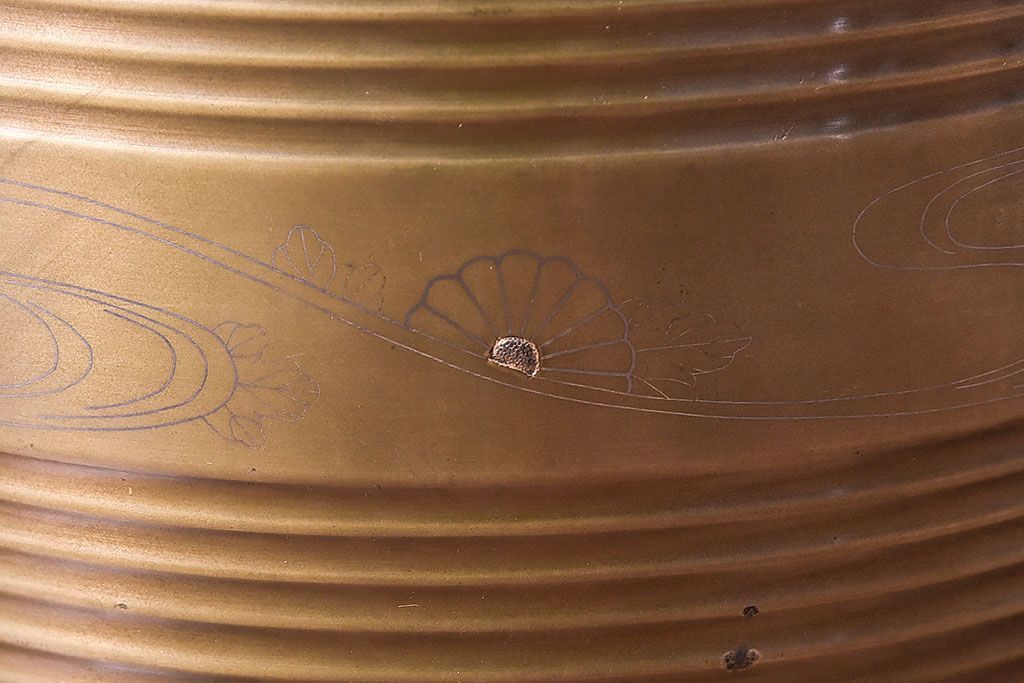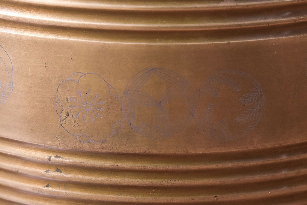アンティーク雑貨 大正〜昭和初期 菊水象嵌宣徳真鍮火鉢一対