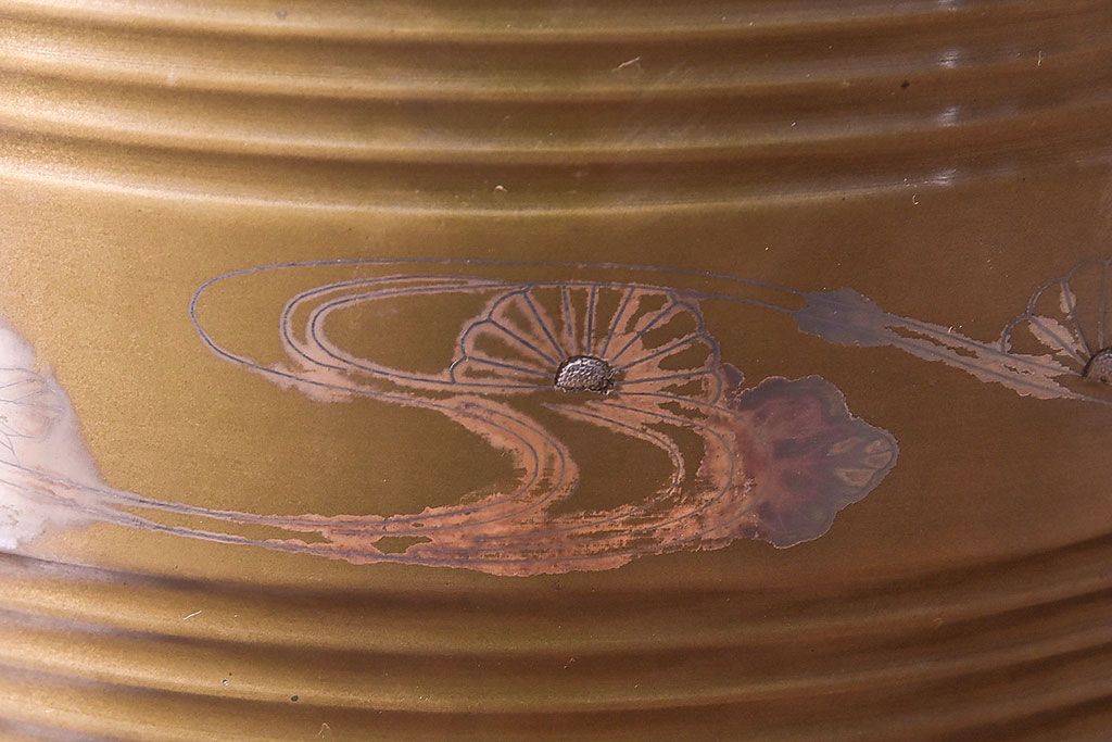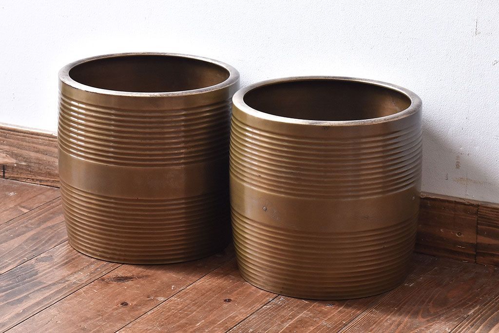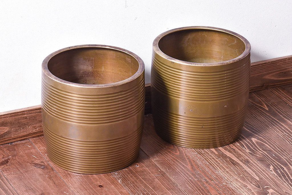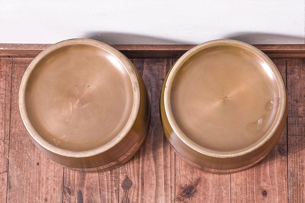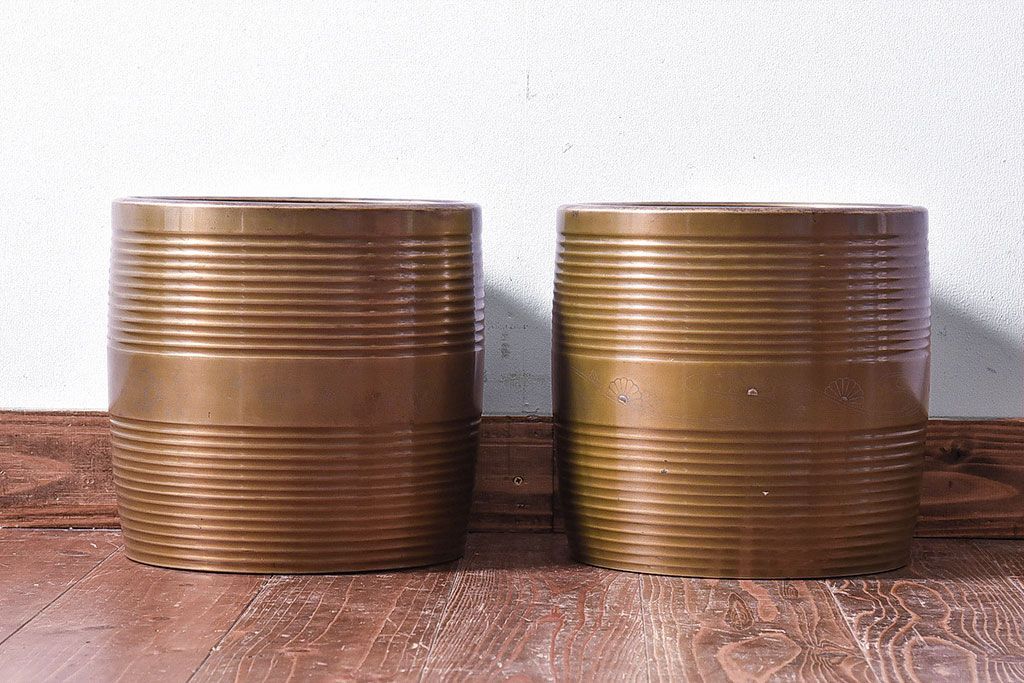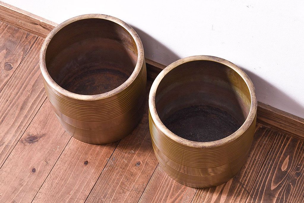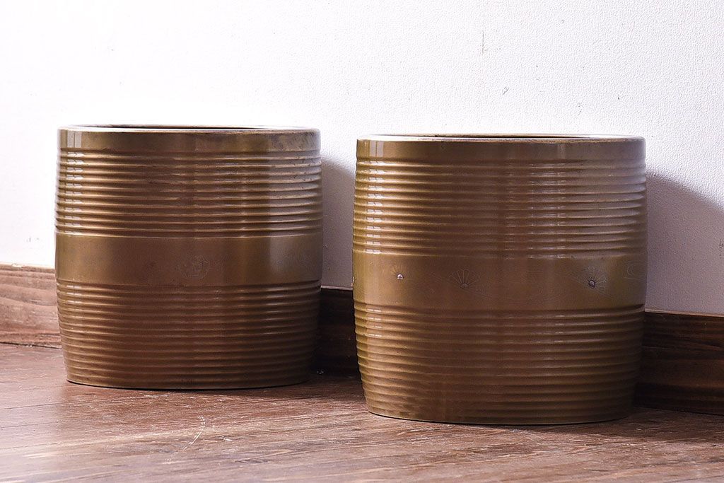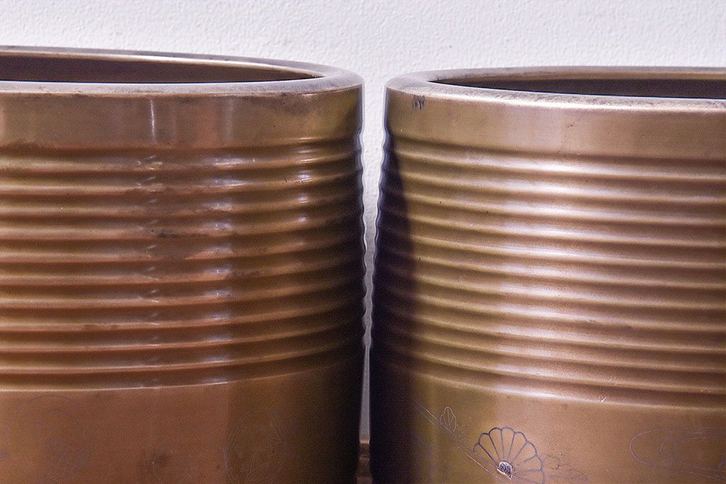 アンティーク雑貨 大正〜昭和初期 菊水象嵌宣徳真鍮火鉢一対